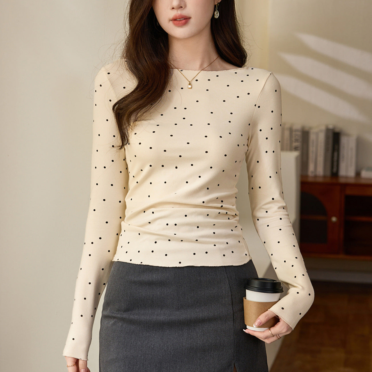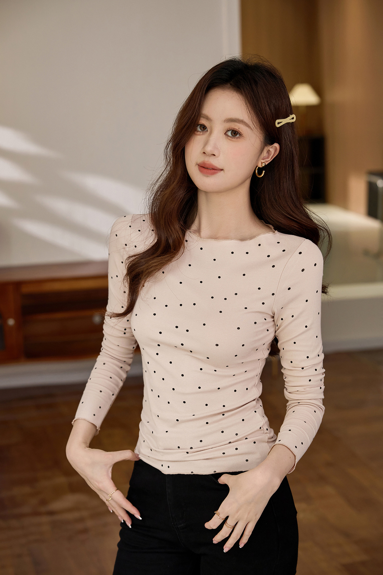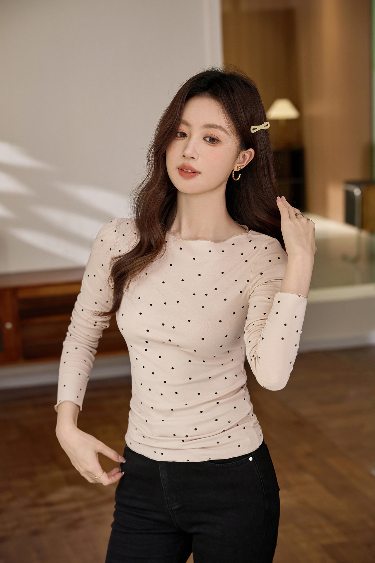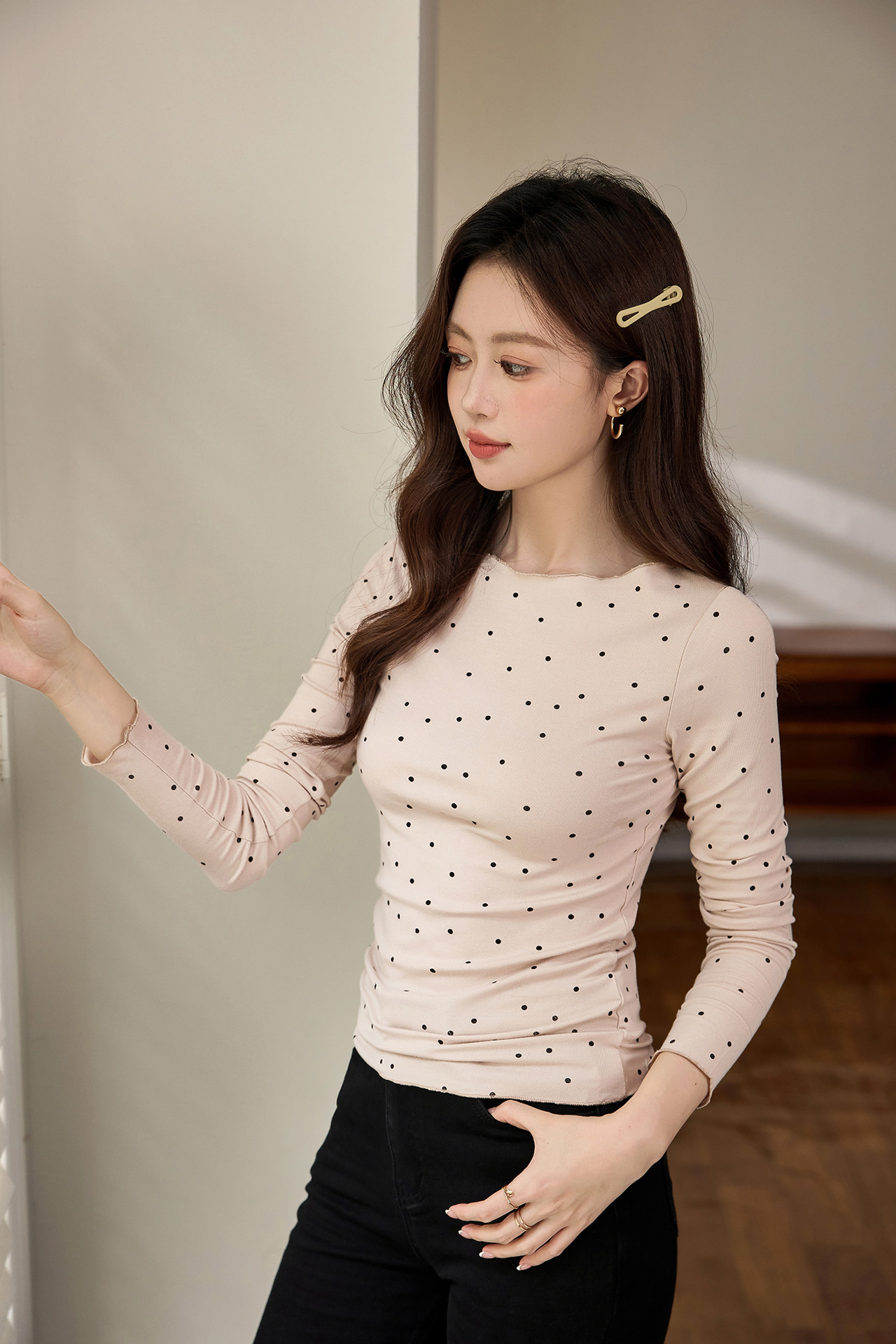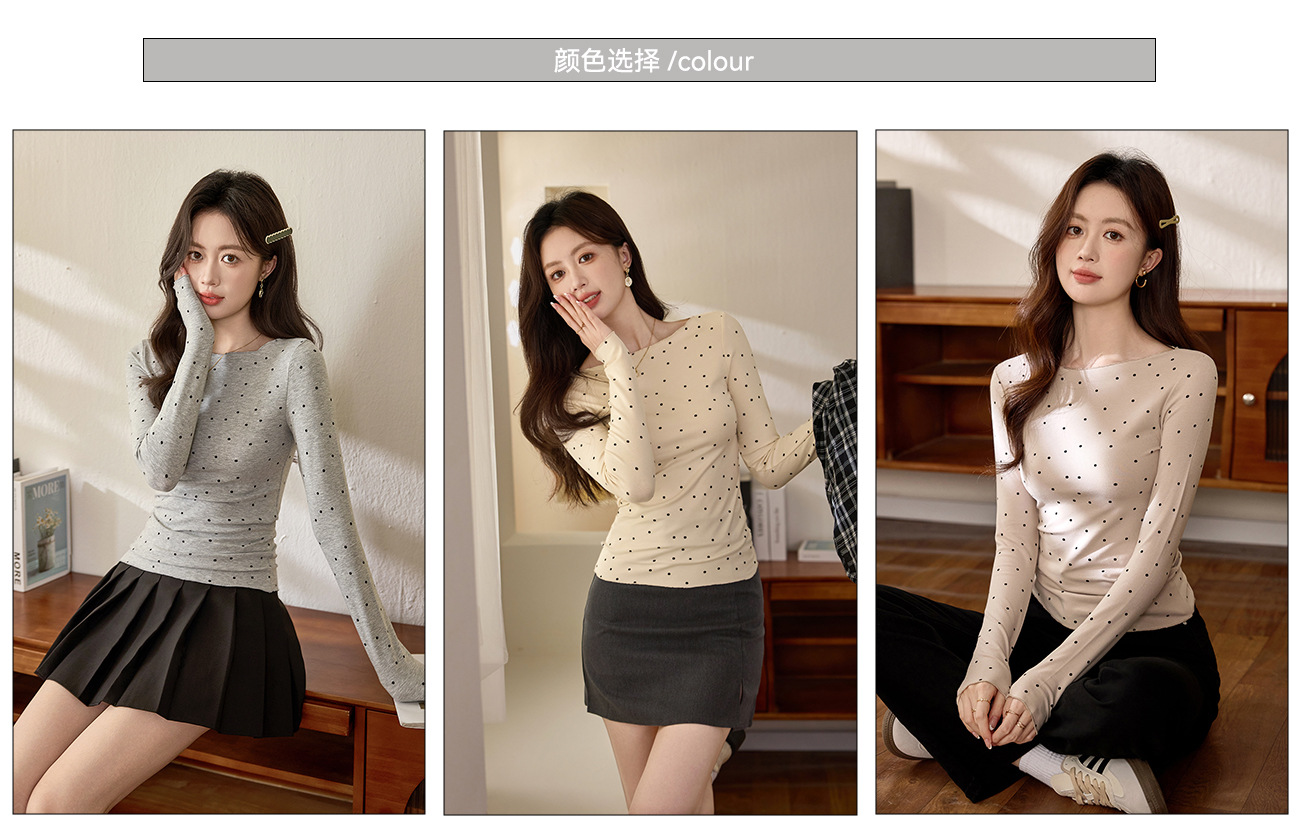 #Selection of high-quality products #Micro-curl edge age-reducing polka dot T-shirt women's long-sleeved 2026 autumn new retro bottoming shirt top