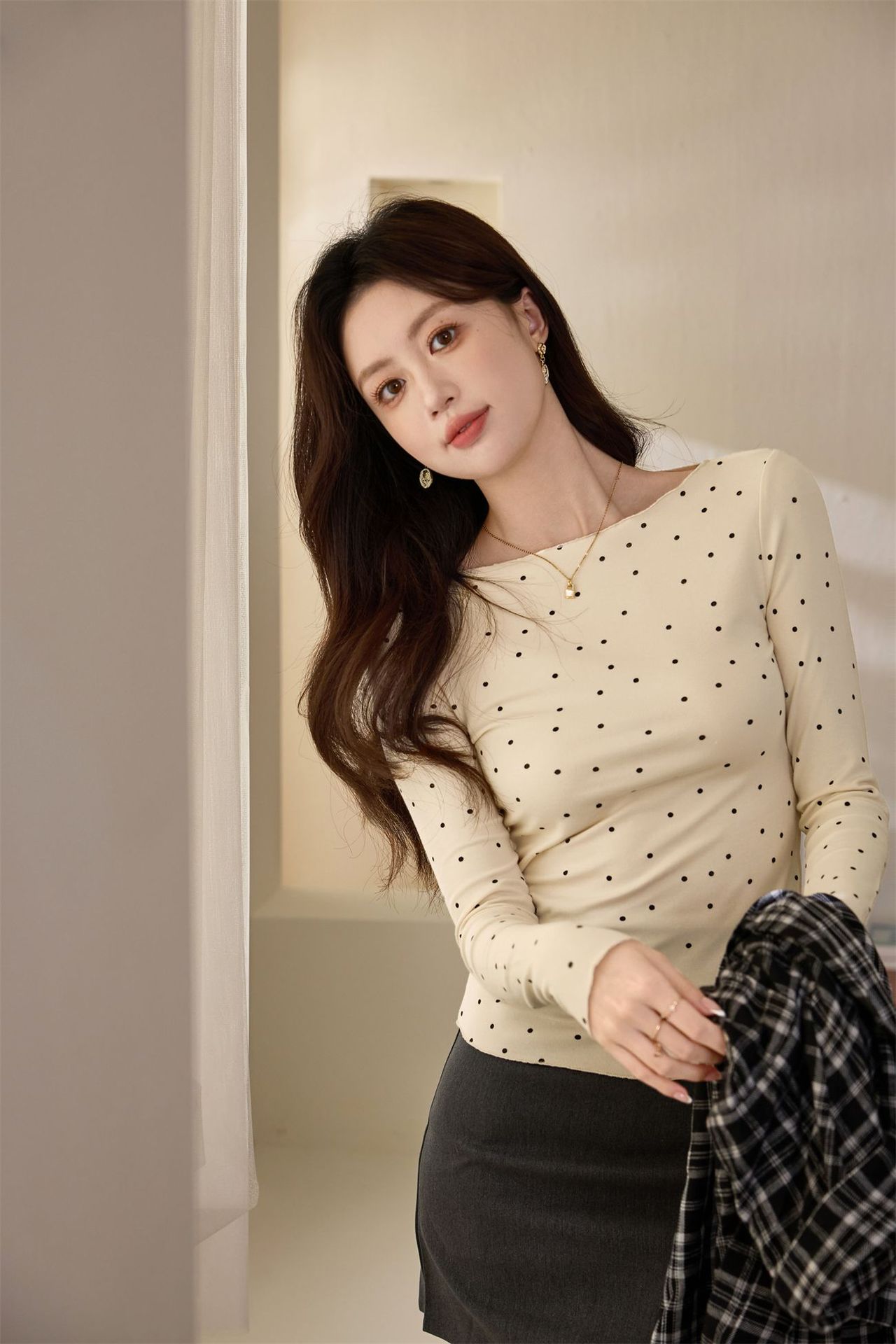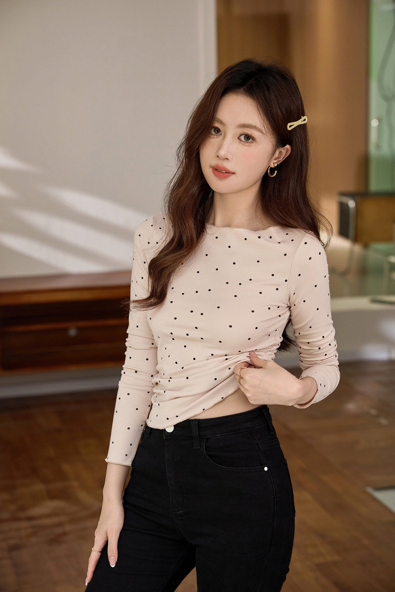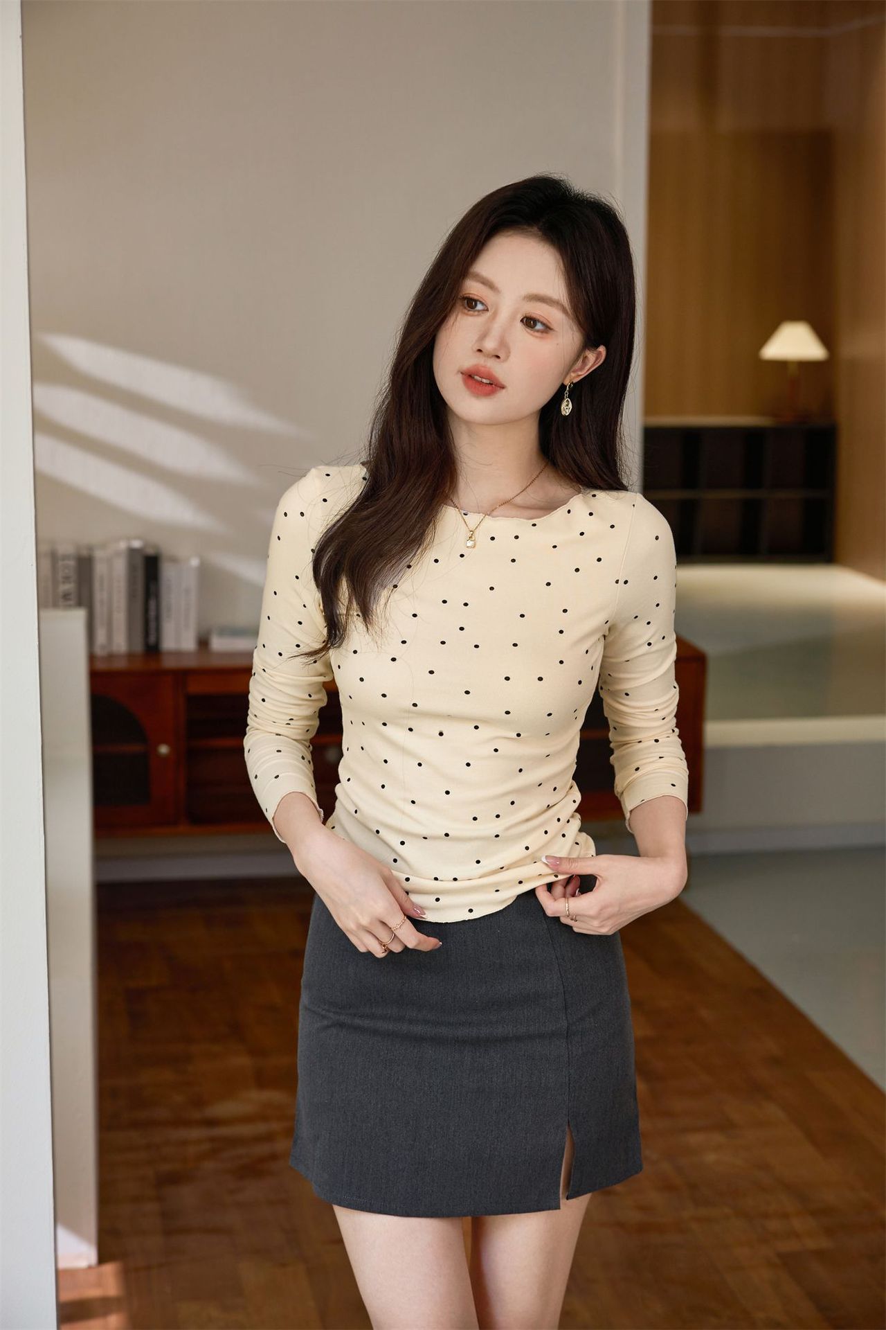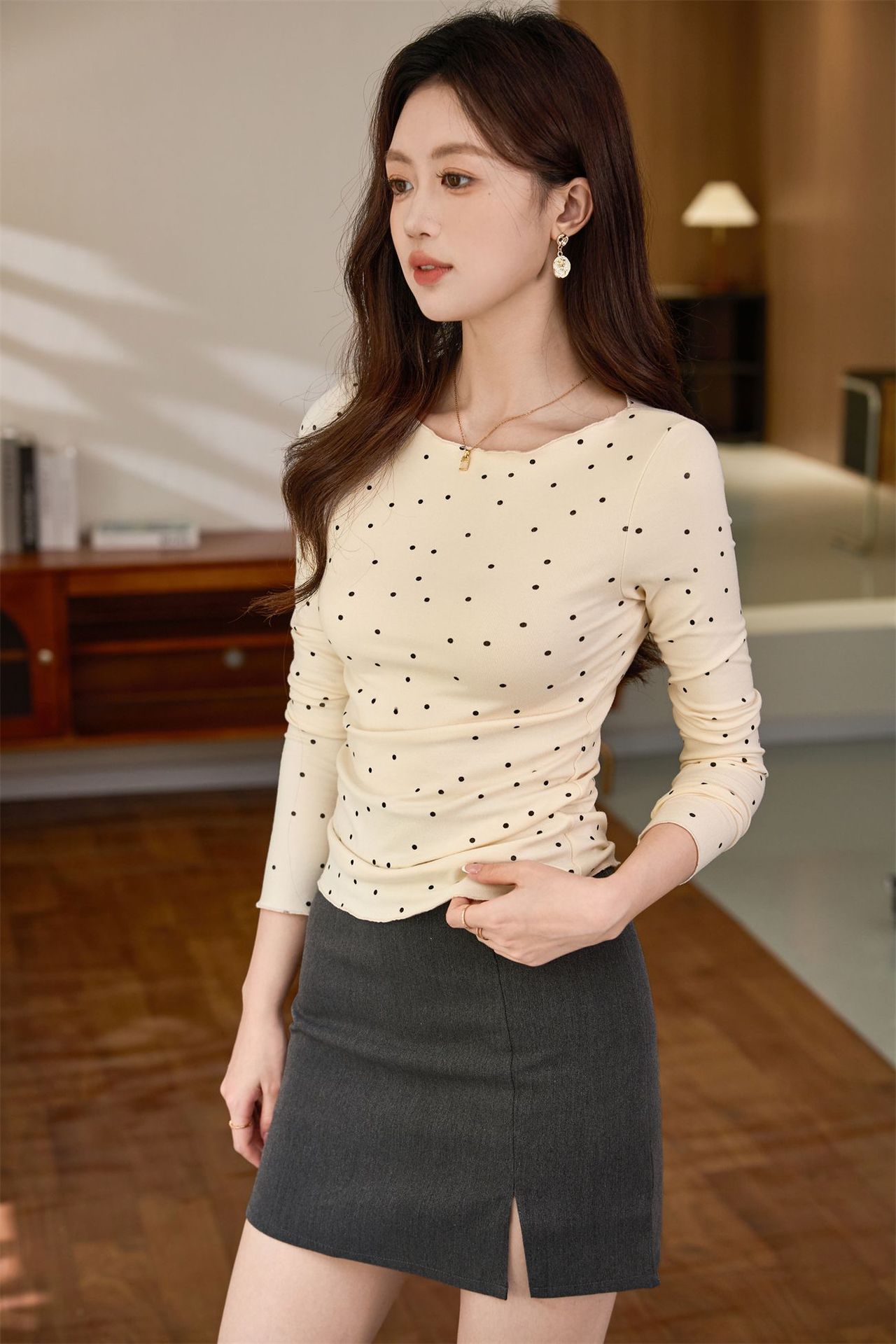 #Selection of high-quality products #Micro-curl edge age-reducing polka dot T-shirt women's long-sleeved 2026 autumn new retro bottoming shirt top