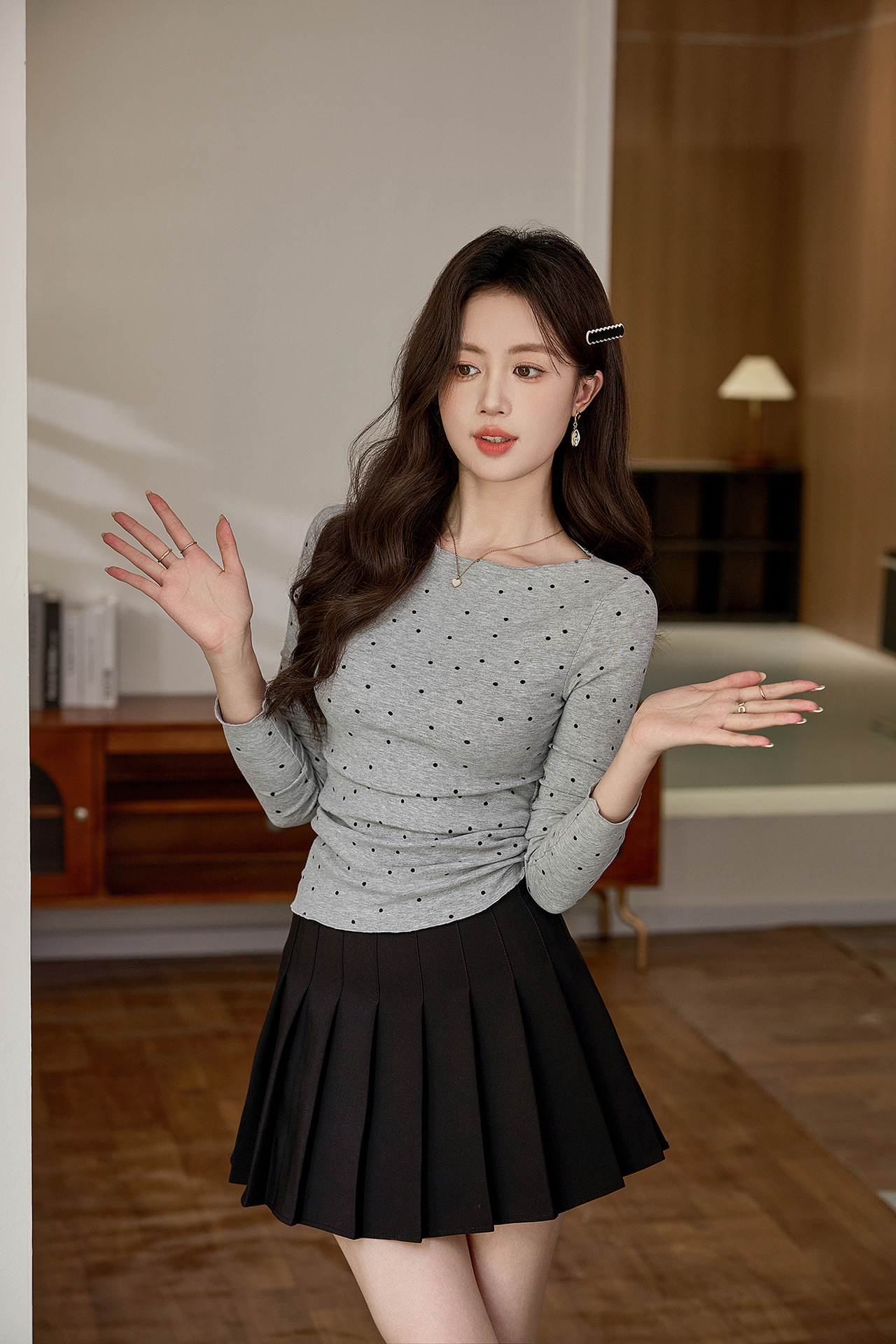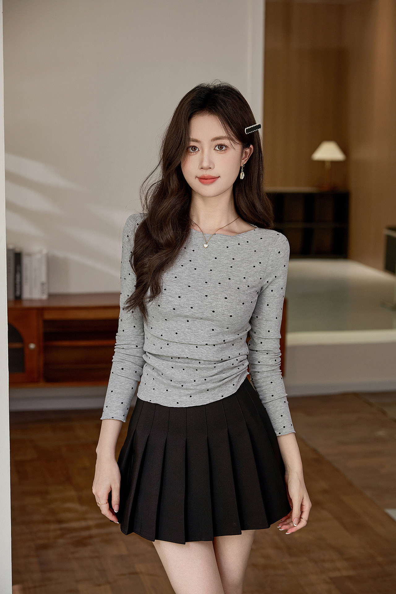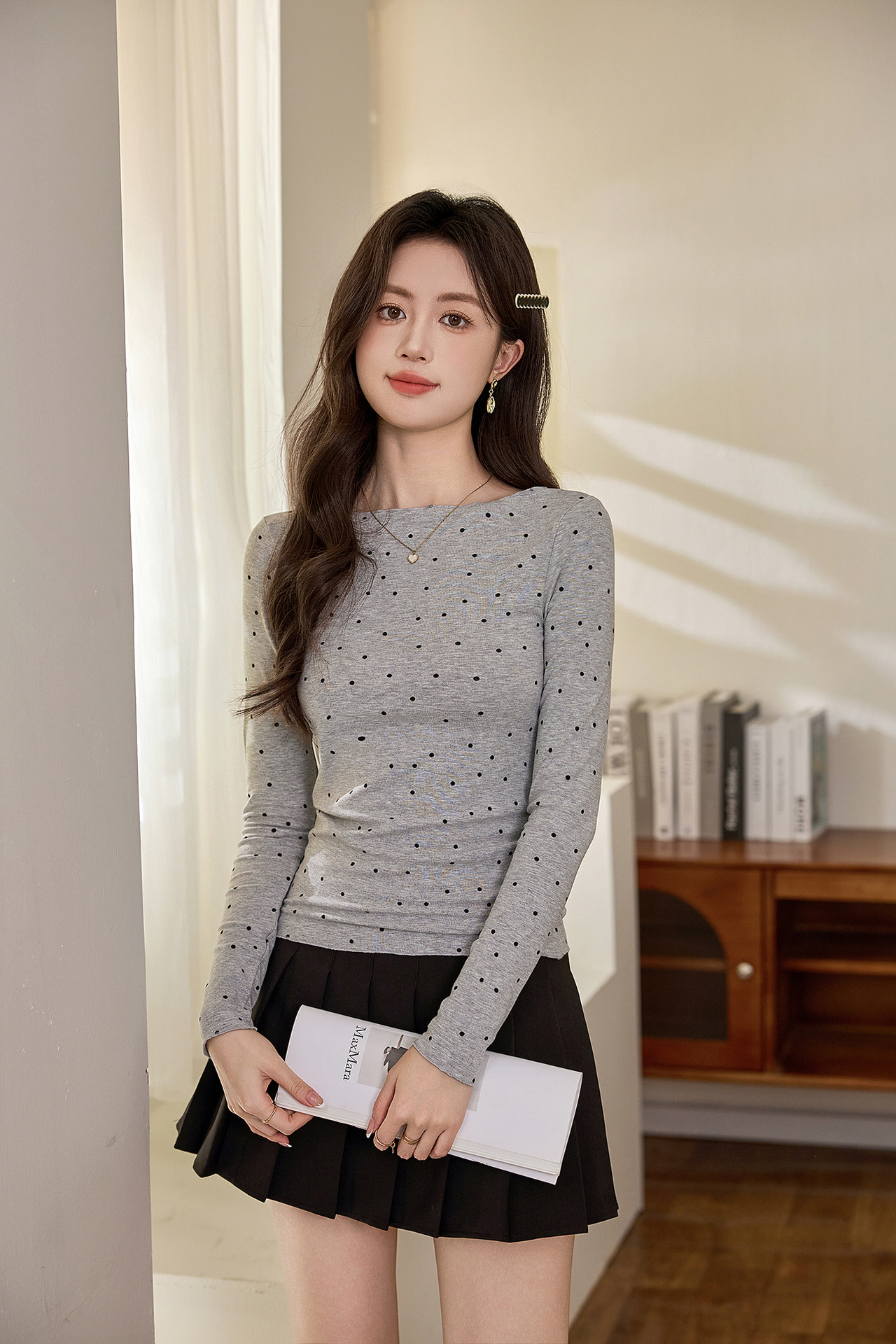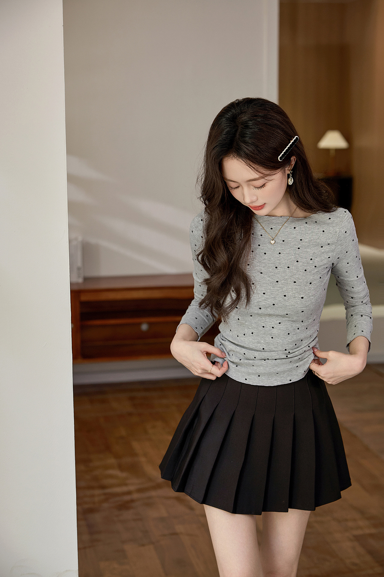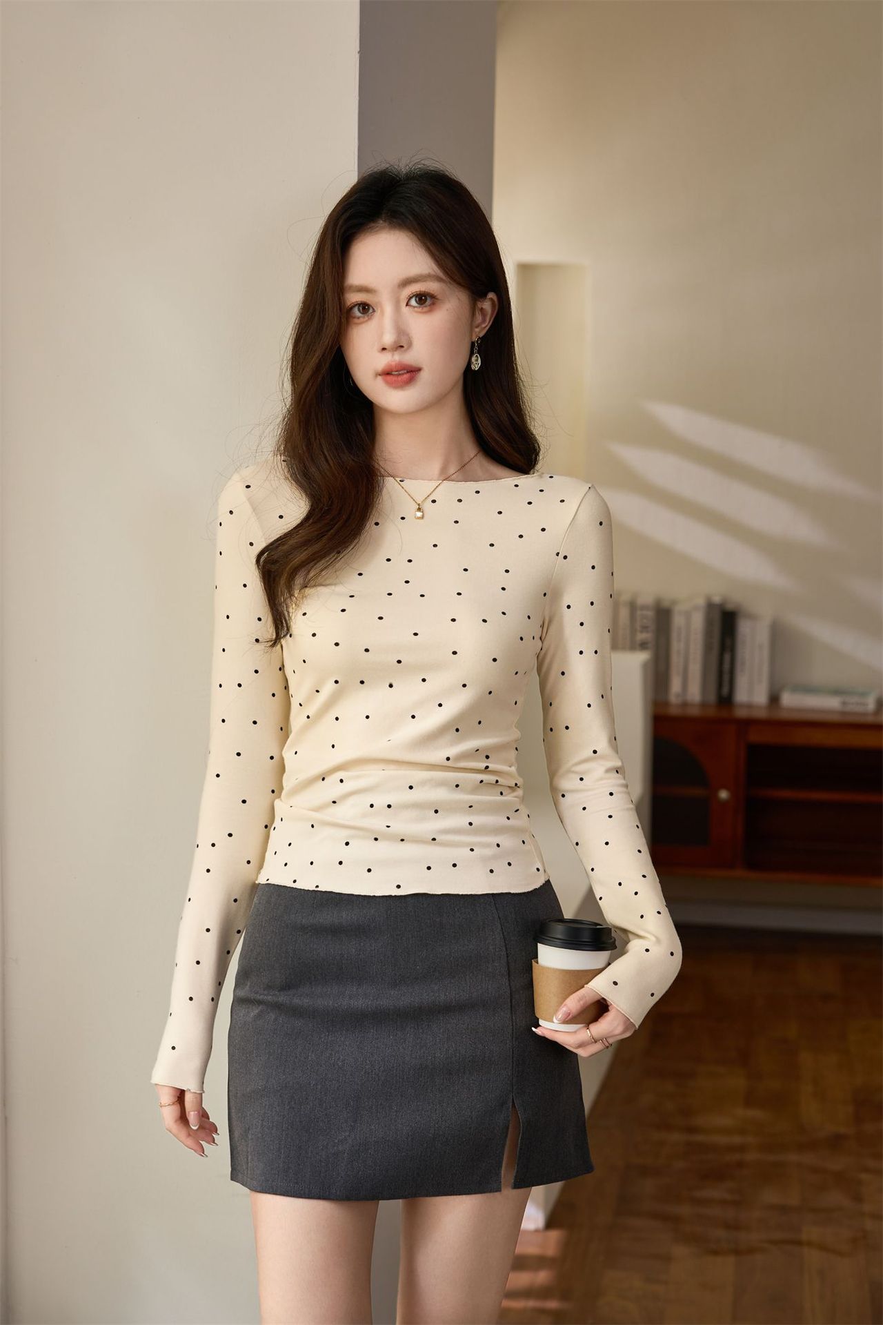 #Selection of high-quality products #Micro-curl edge age-reducing polka dot T-shirt women's long-sleeved 2026 autumn new retro bottoming shirt top