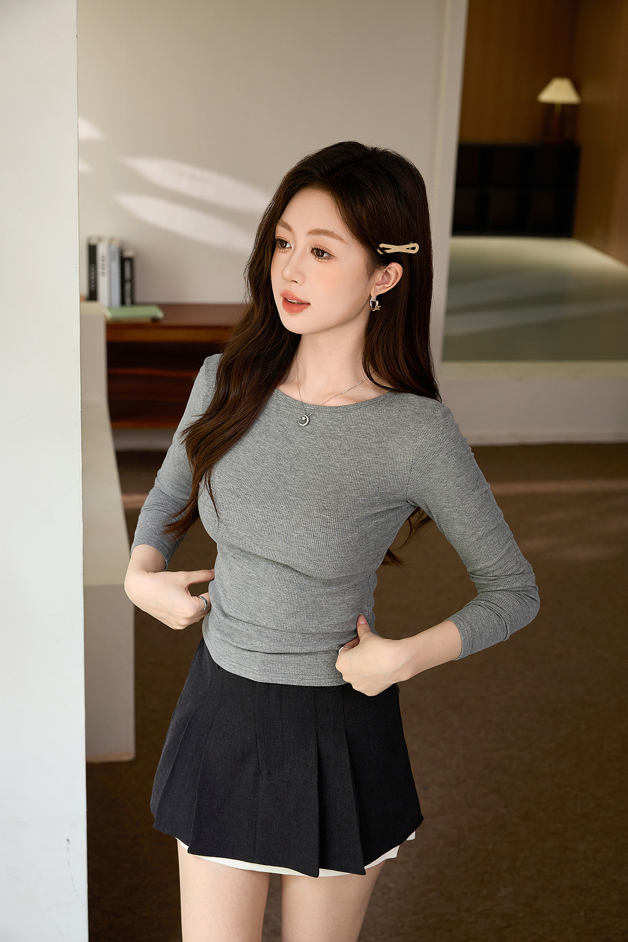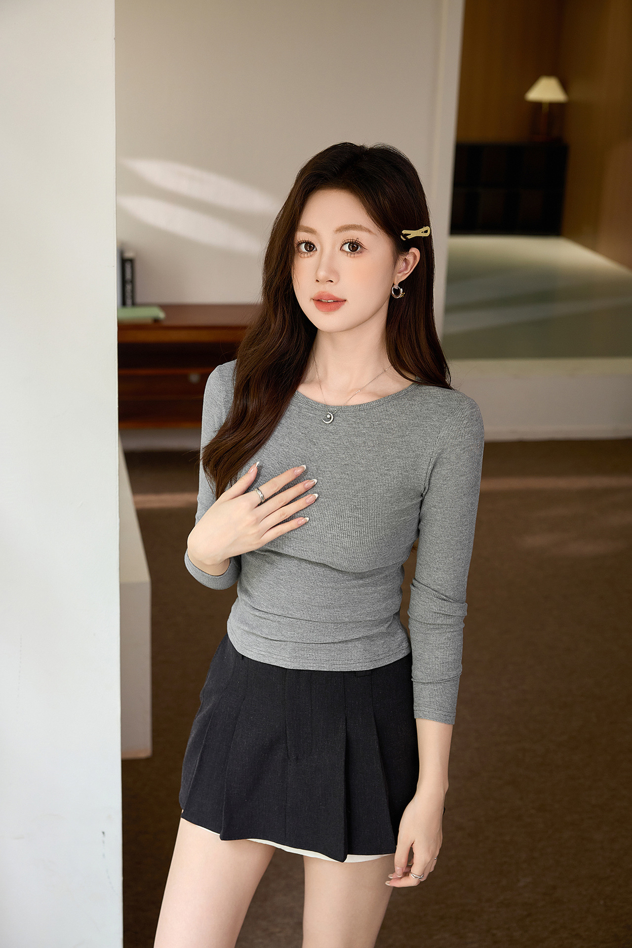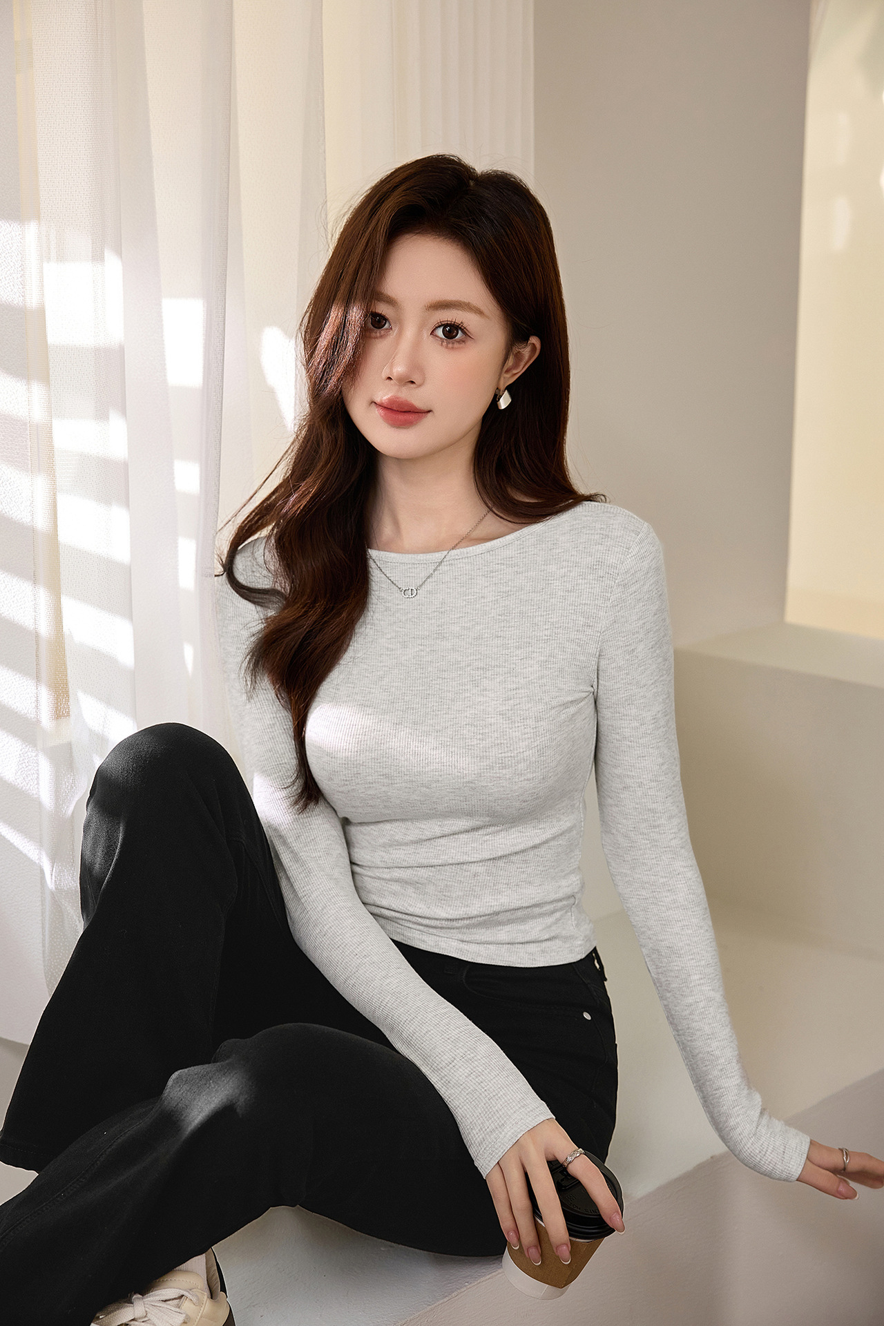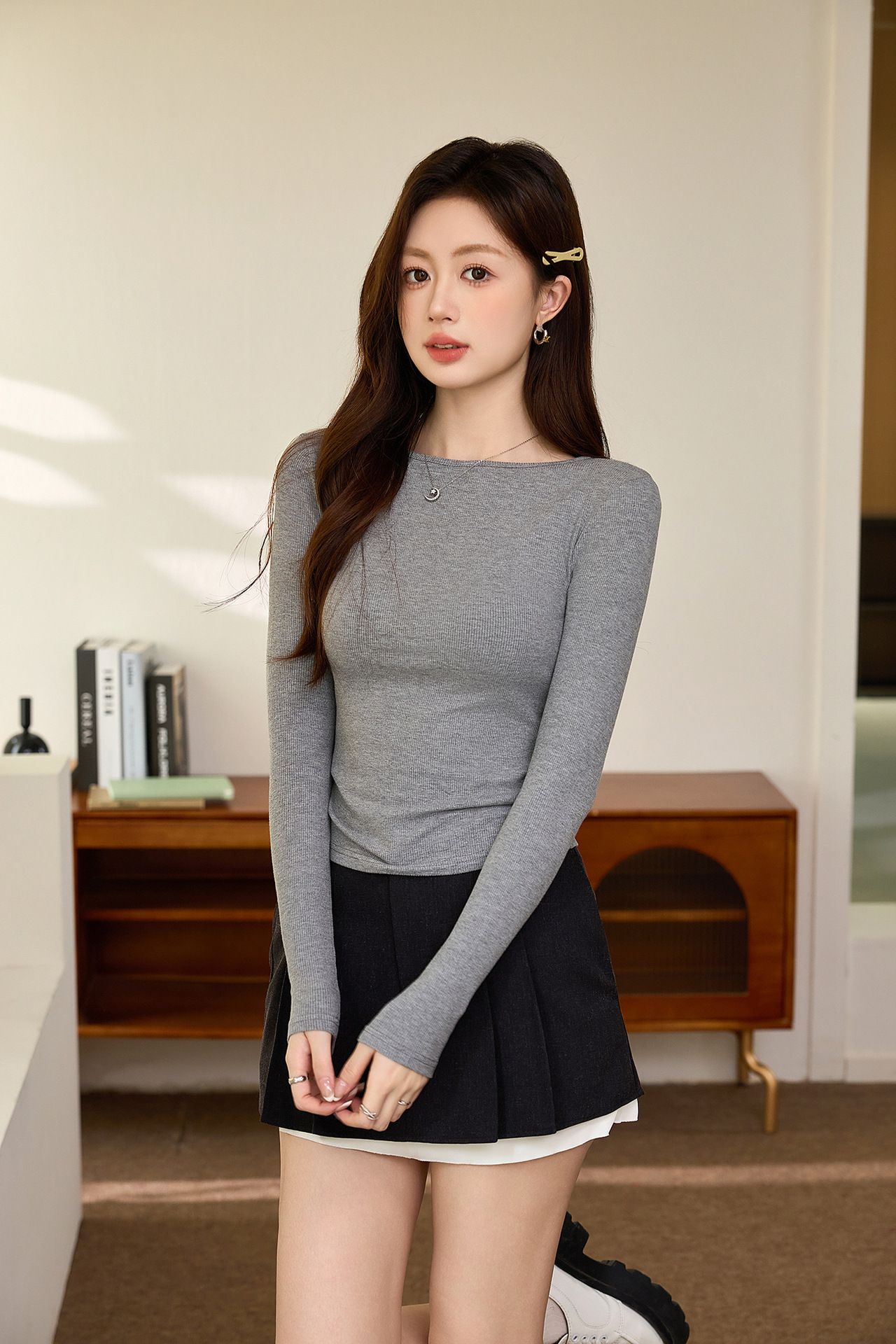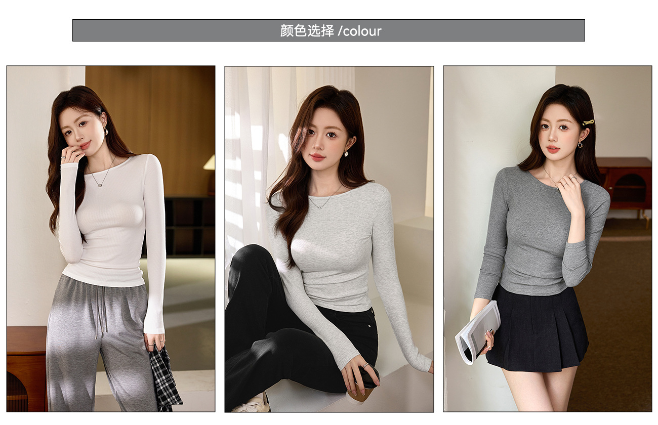 #Selection of high-quality products #One-word small round neck slim-fitting and thin T-shirt women's long-sleeved 2026 autumn new inner bottoming shirt