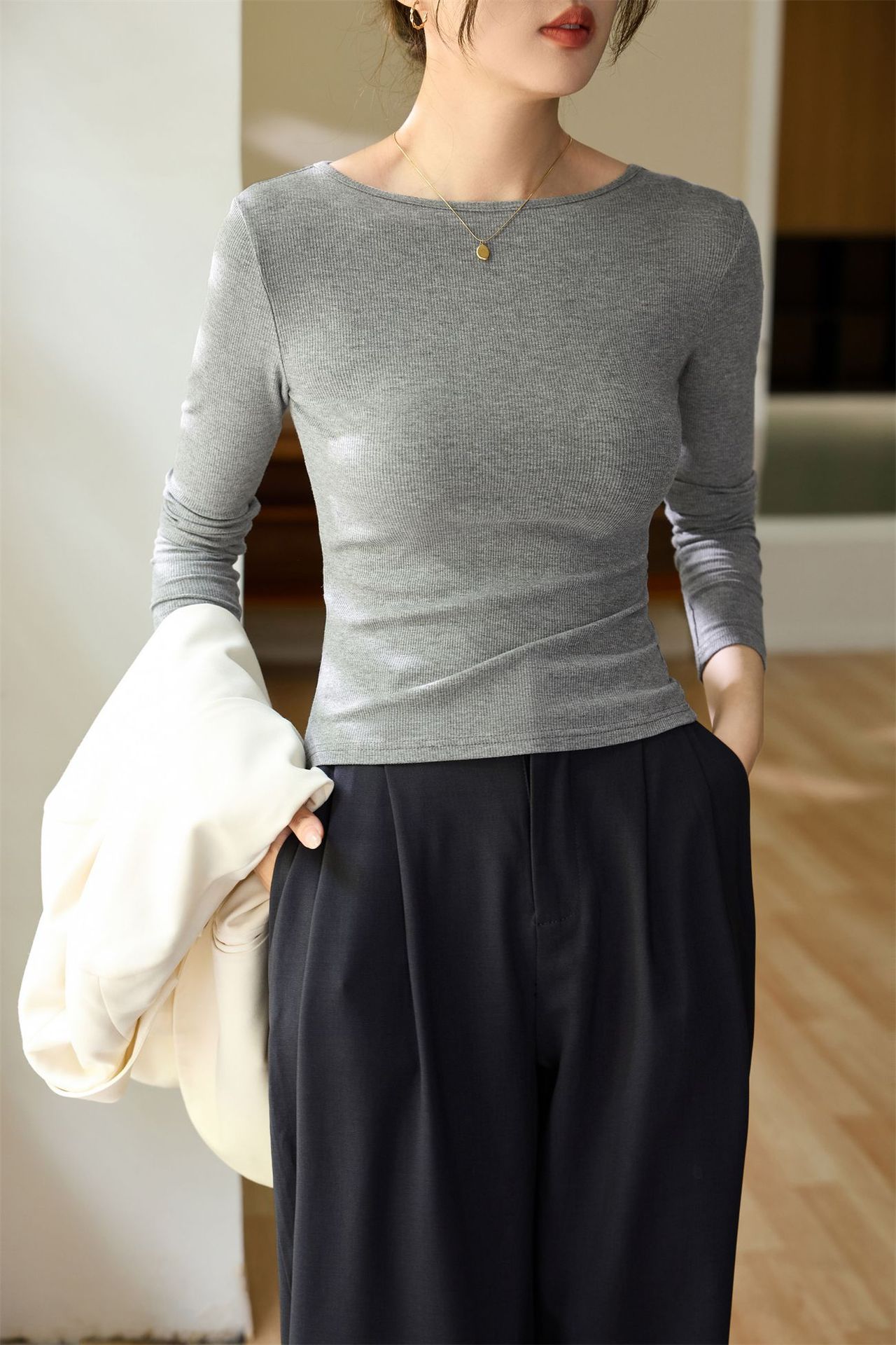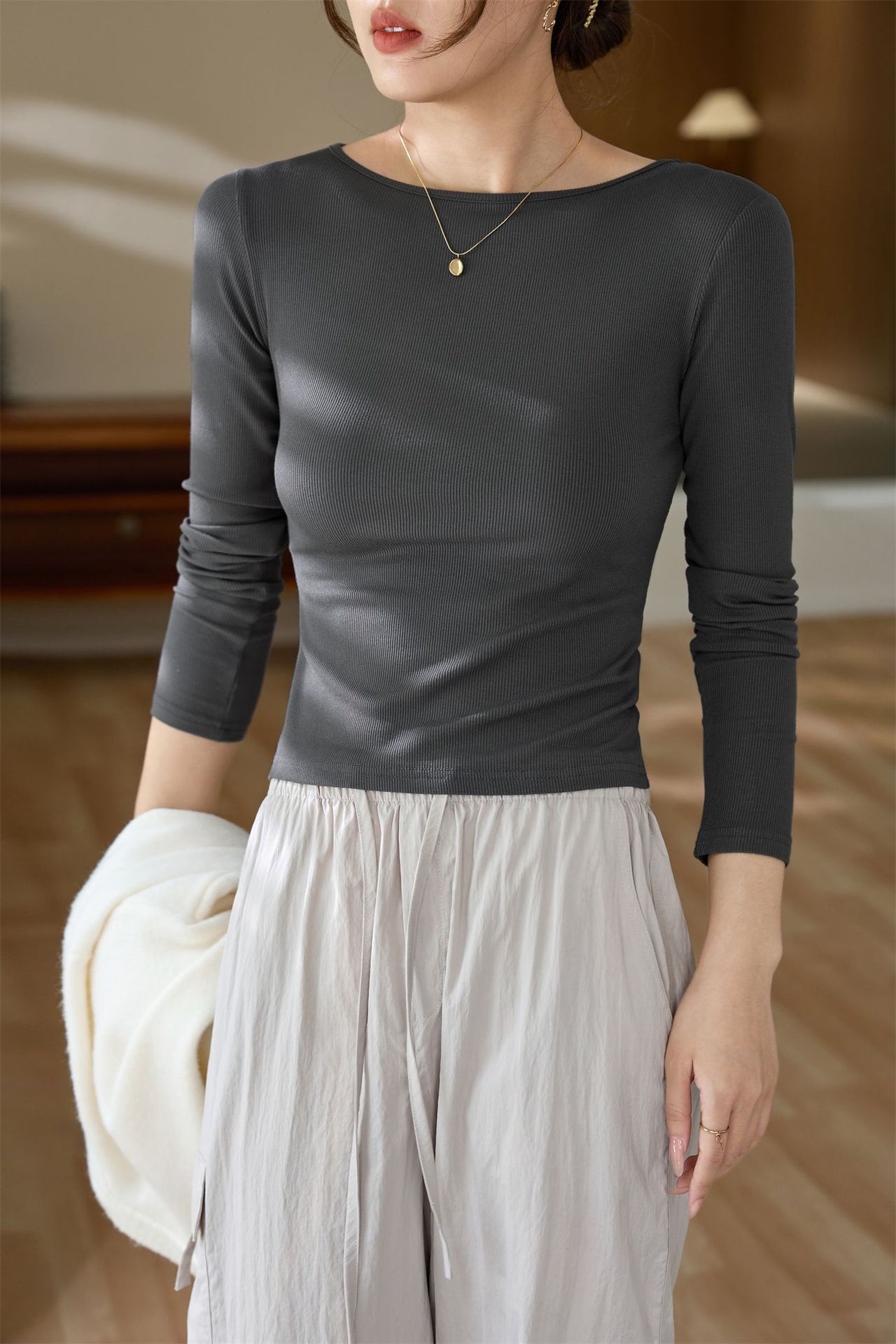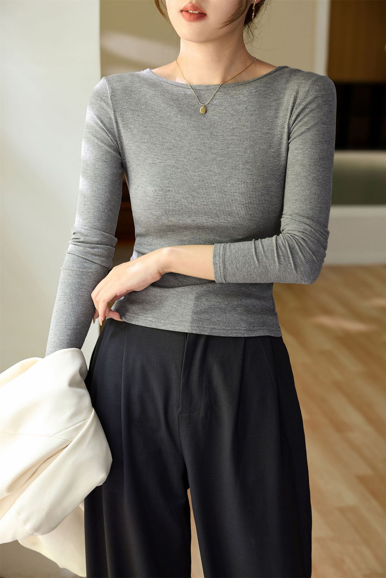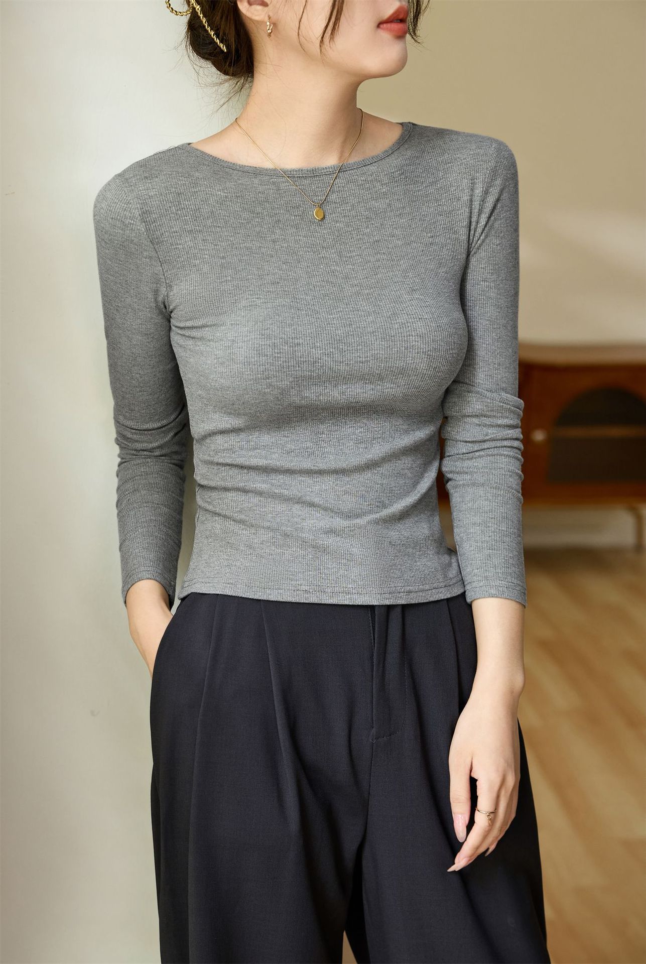 #Selection of high-quality products #One-word small round neck slim-fitting and thin T-shirt women's long-sleeved 2026 autumn new inner bottoming shirt