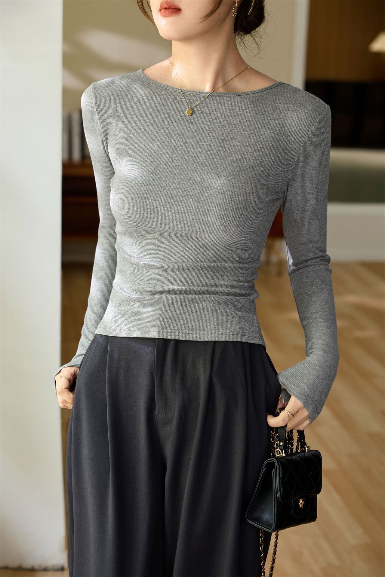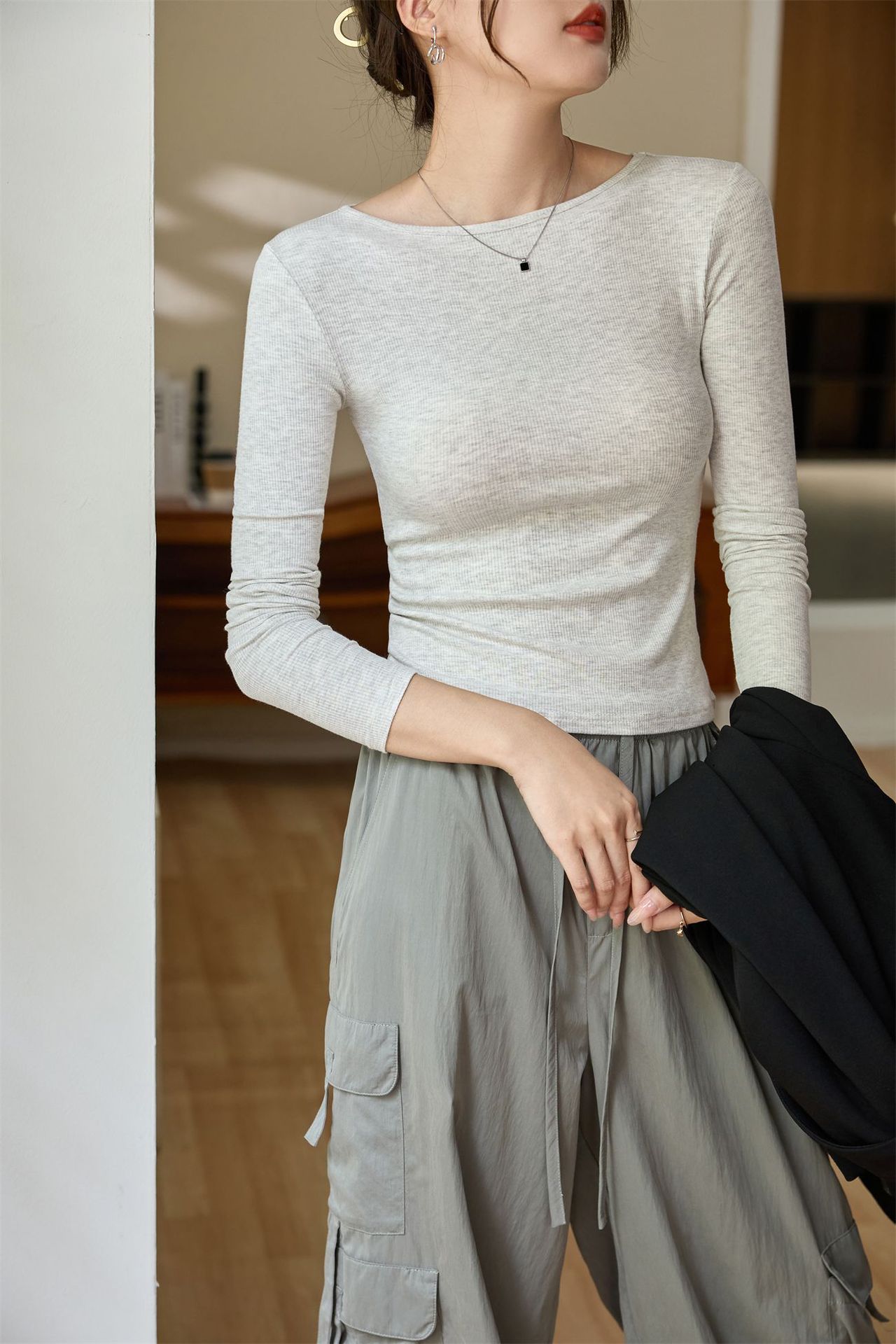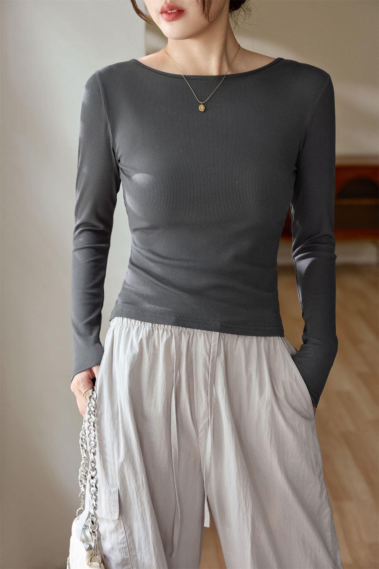 #Selection of high-quality products #One-word small round neck slim-fitting and thin T-shirt women's long-sleeved 2026 autumn new inner bottoming shirt