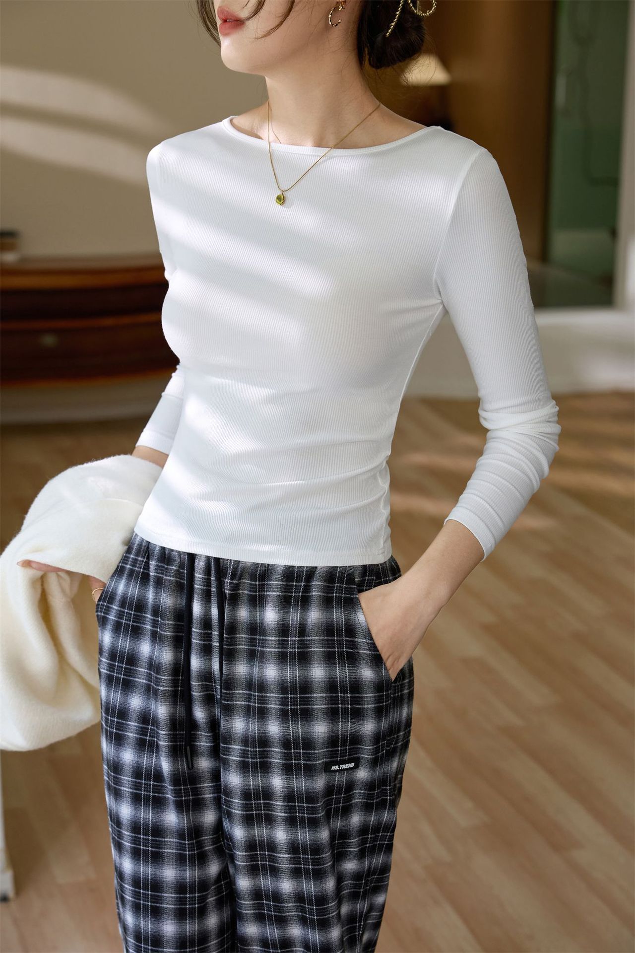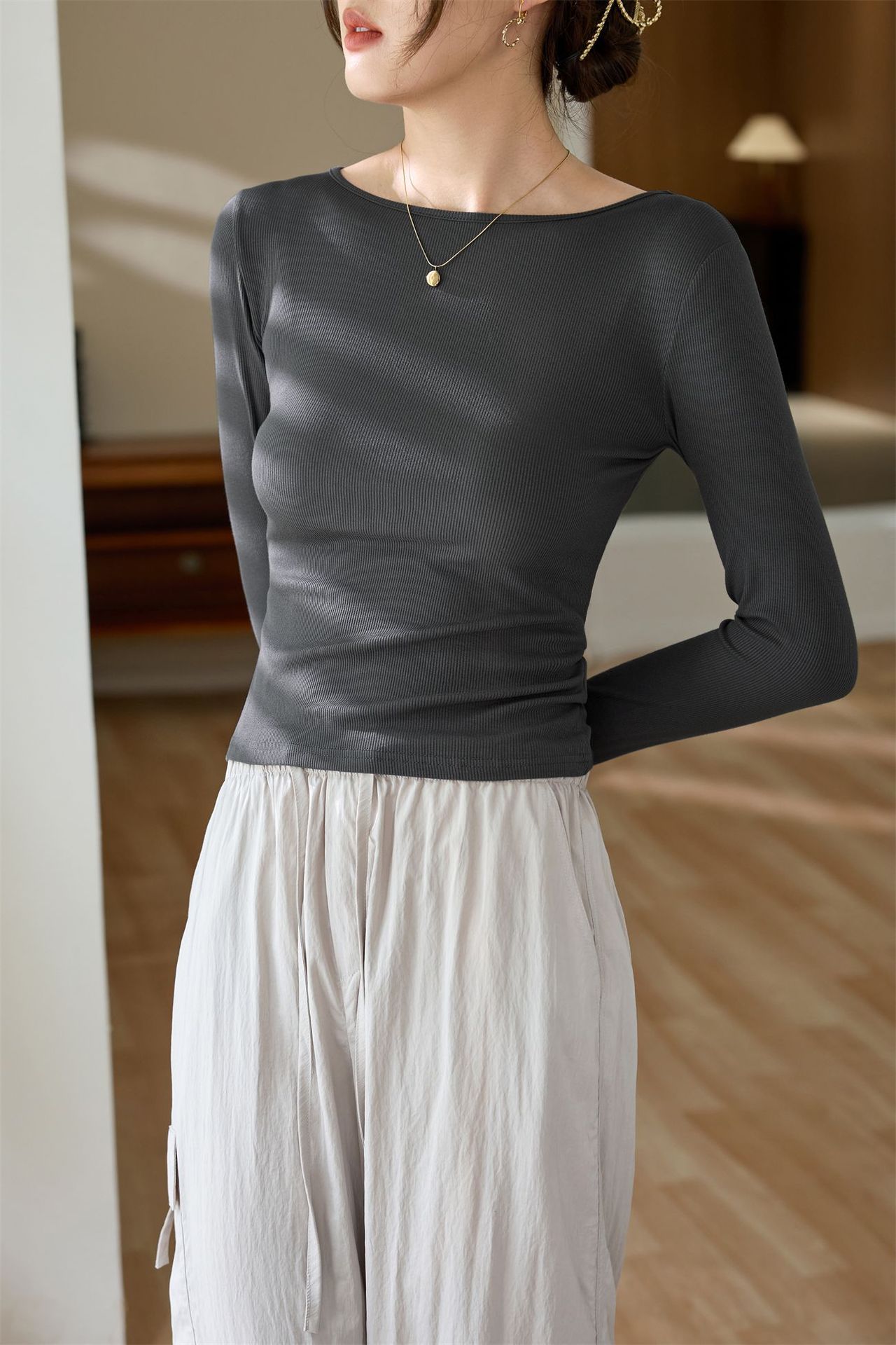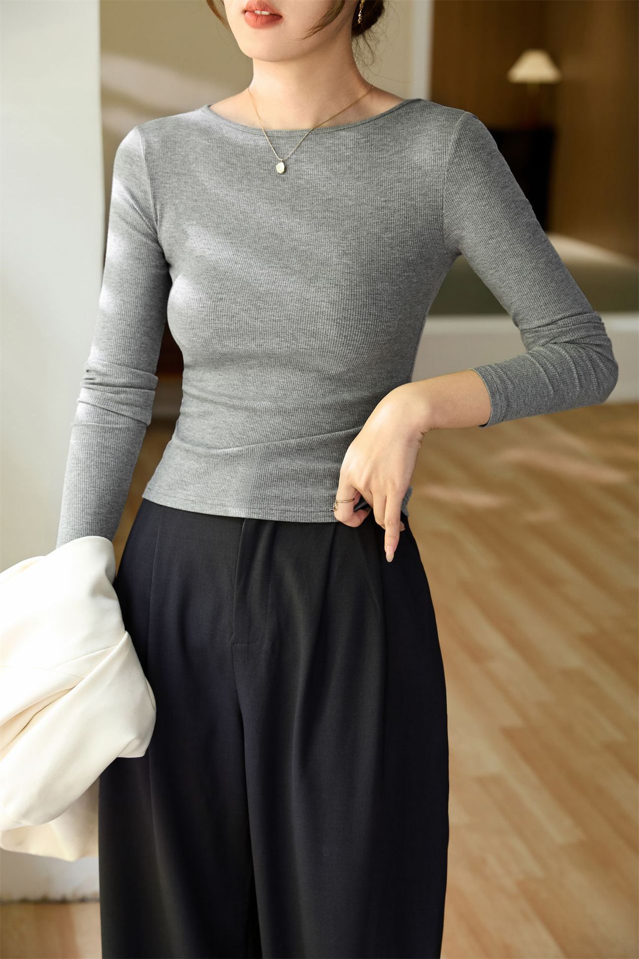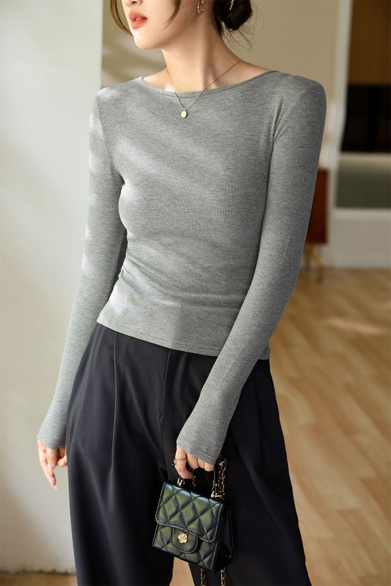 #Selection of high-quality products #One-word small round neck slim-fitting and thin T-shirt women's long-sleeved 2026 autumn new inner bottoming shirt
