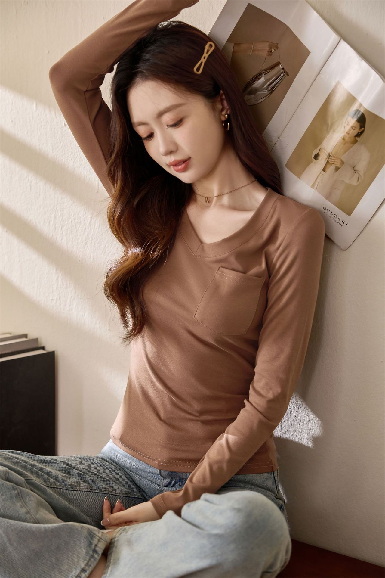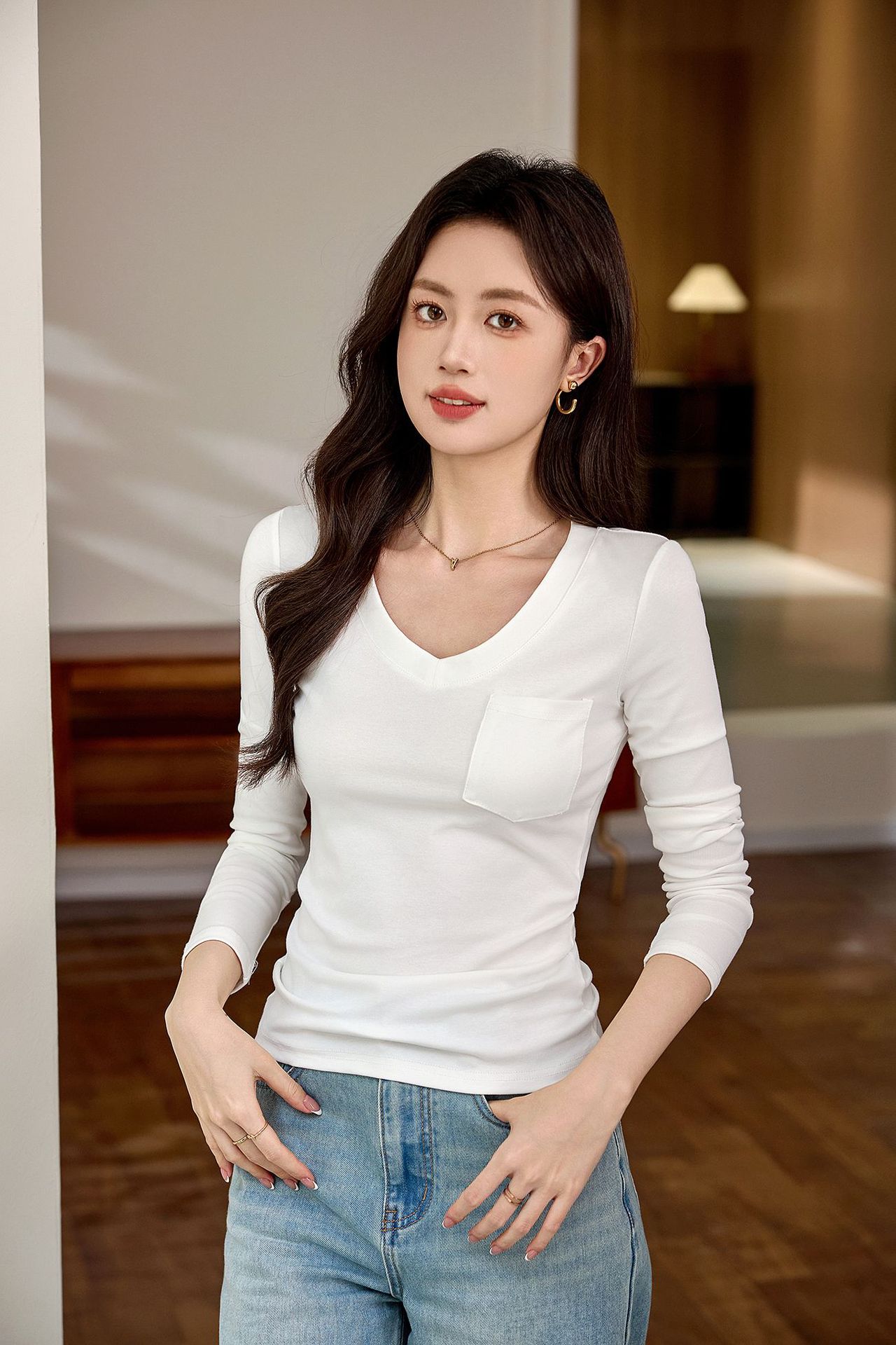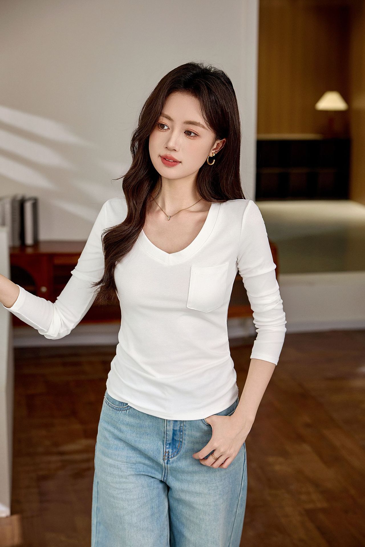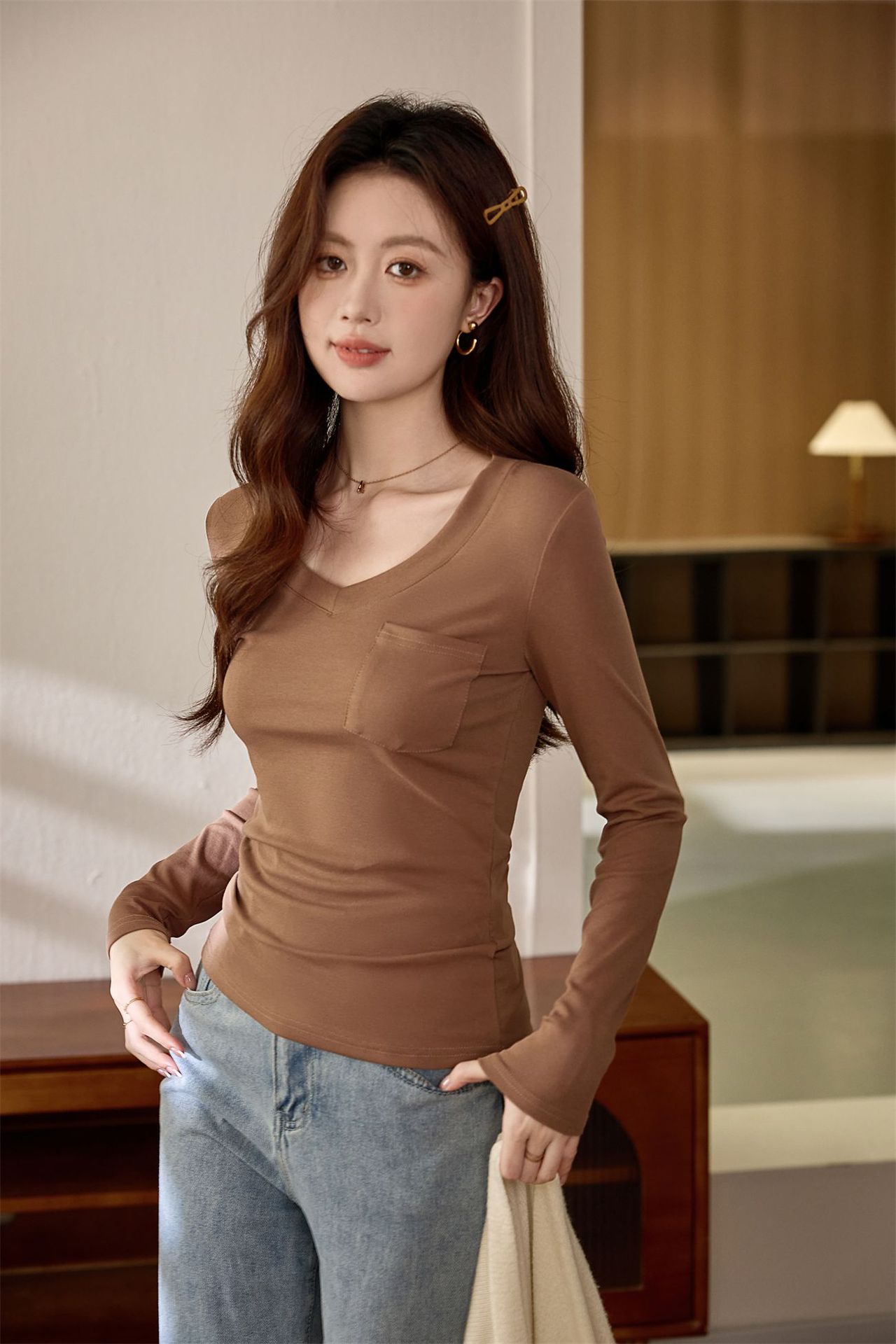 #Selection of pure cotton #Premium sense V-neck bottoming shirt women's long-sleeved t-shirt 2026 autumn new slim-fitting and thin top
