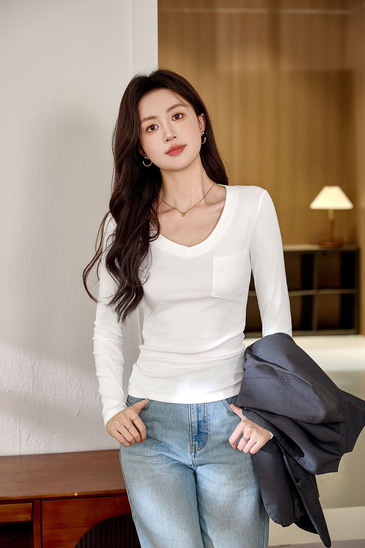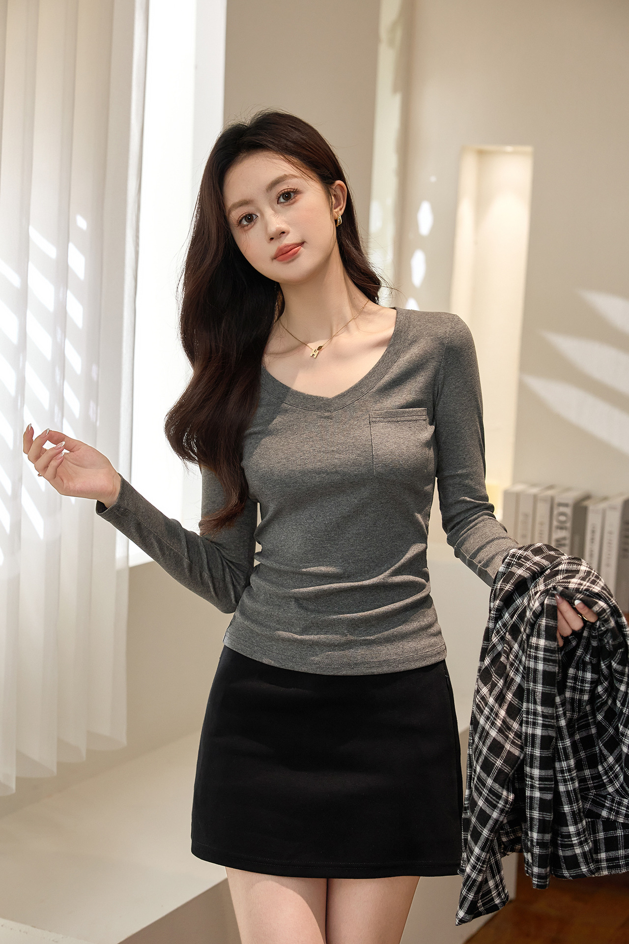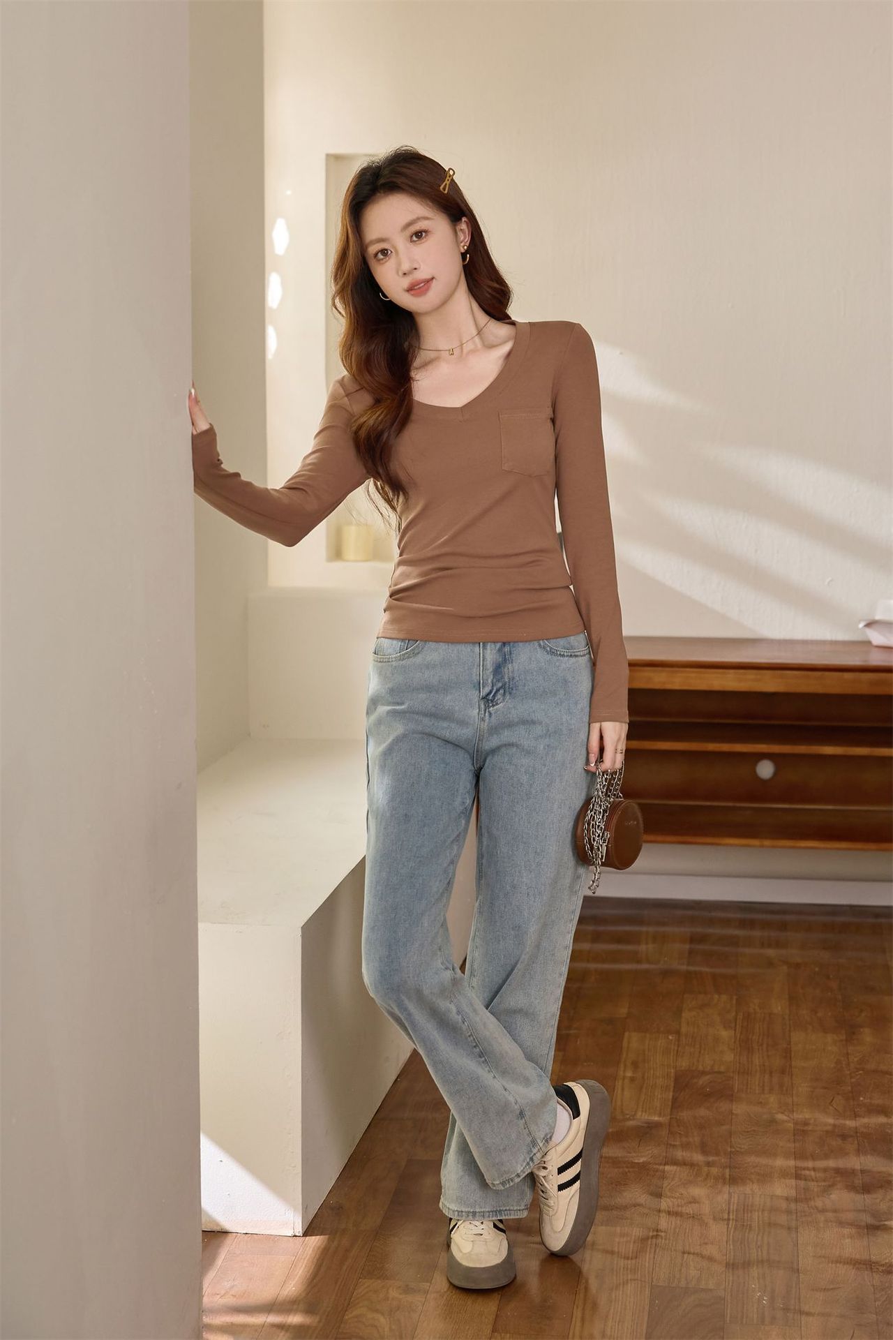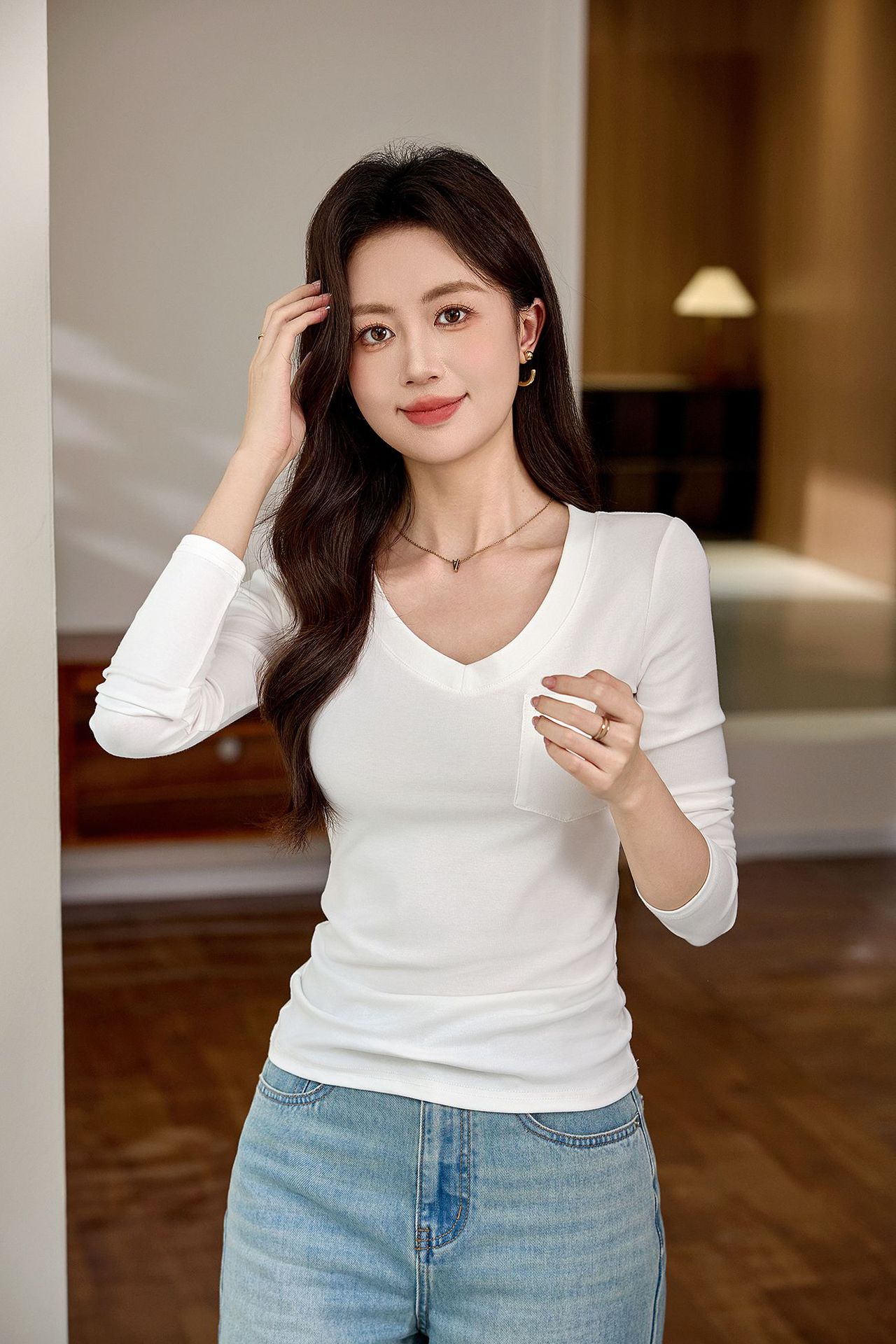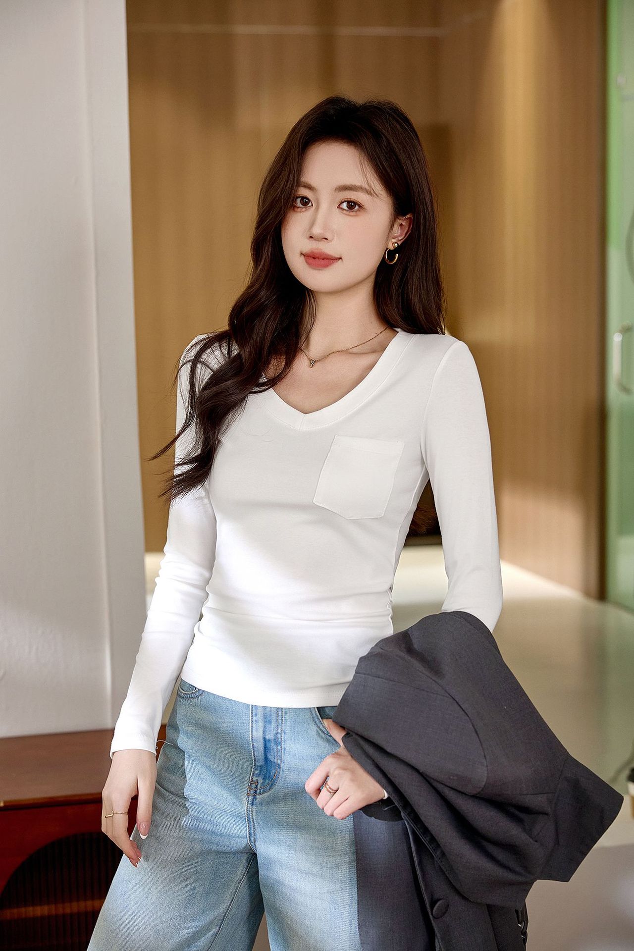 #Selection of pure cotton #Premium sense V-neck bottoming shirt women's long-sleeved t-shirt 2026 autumn new slim-fitting and thin top