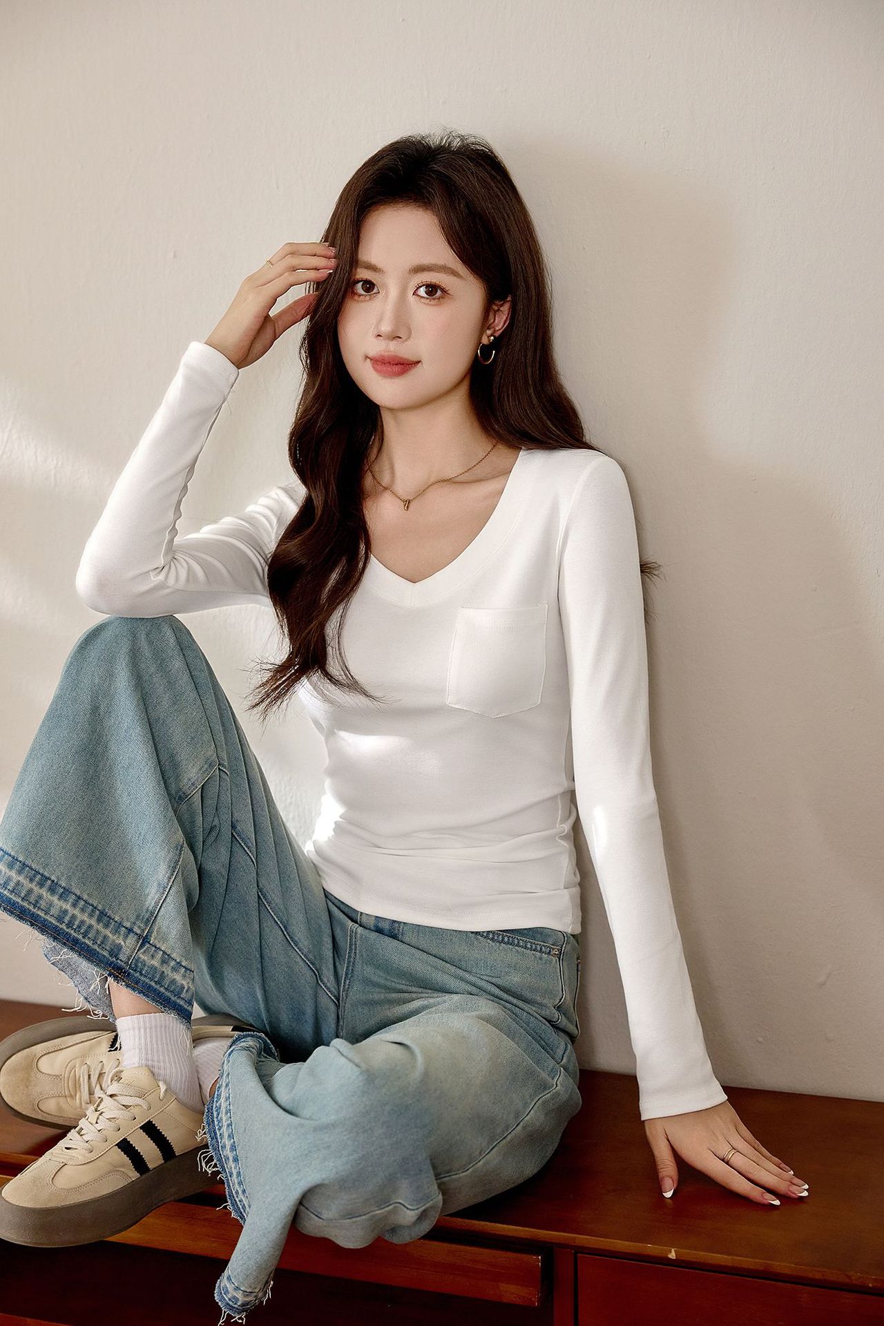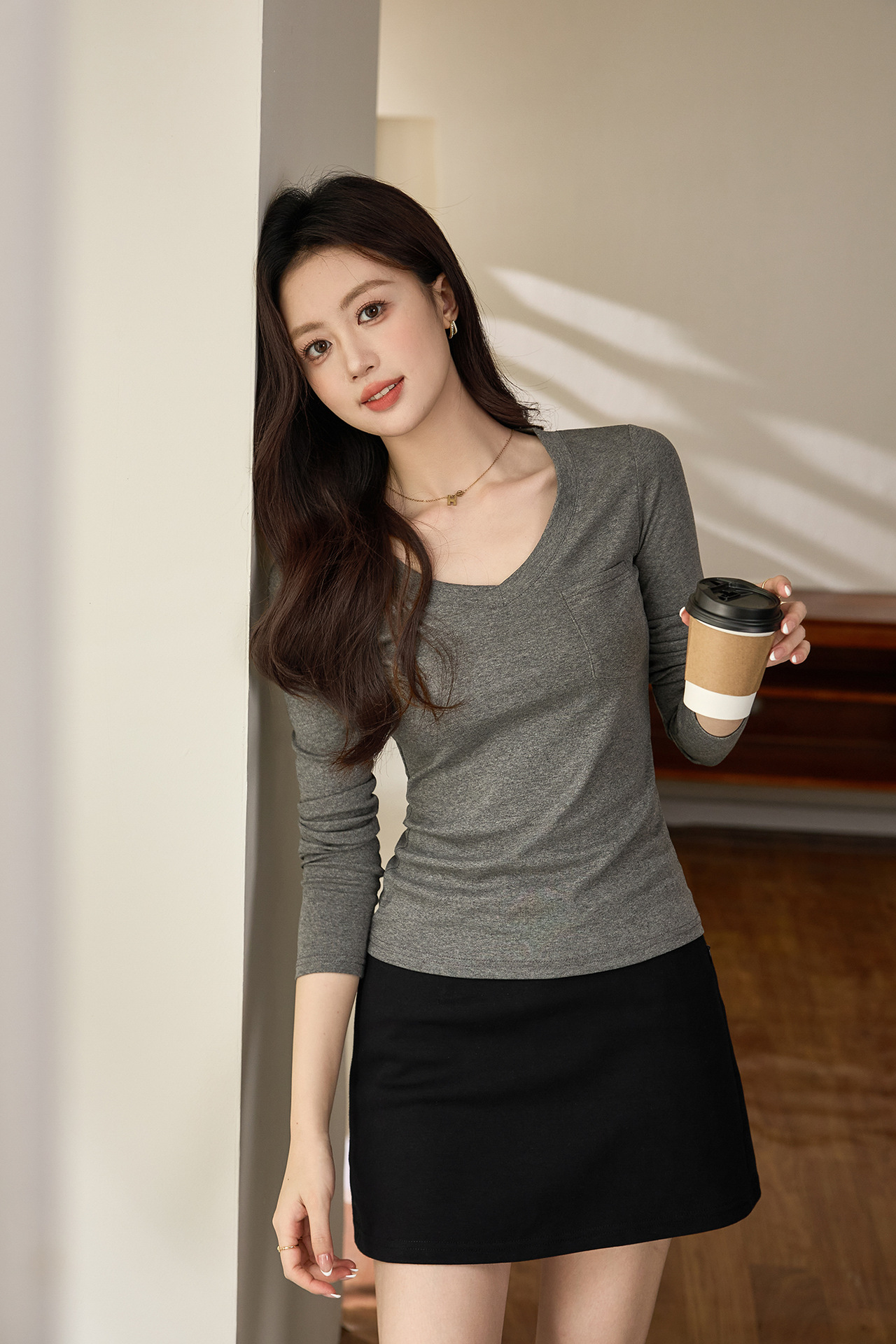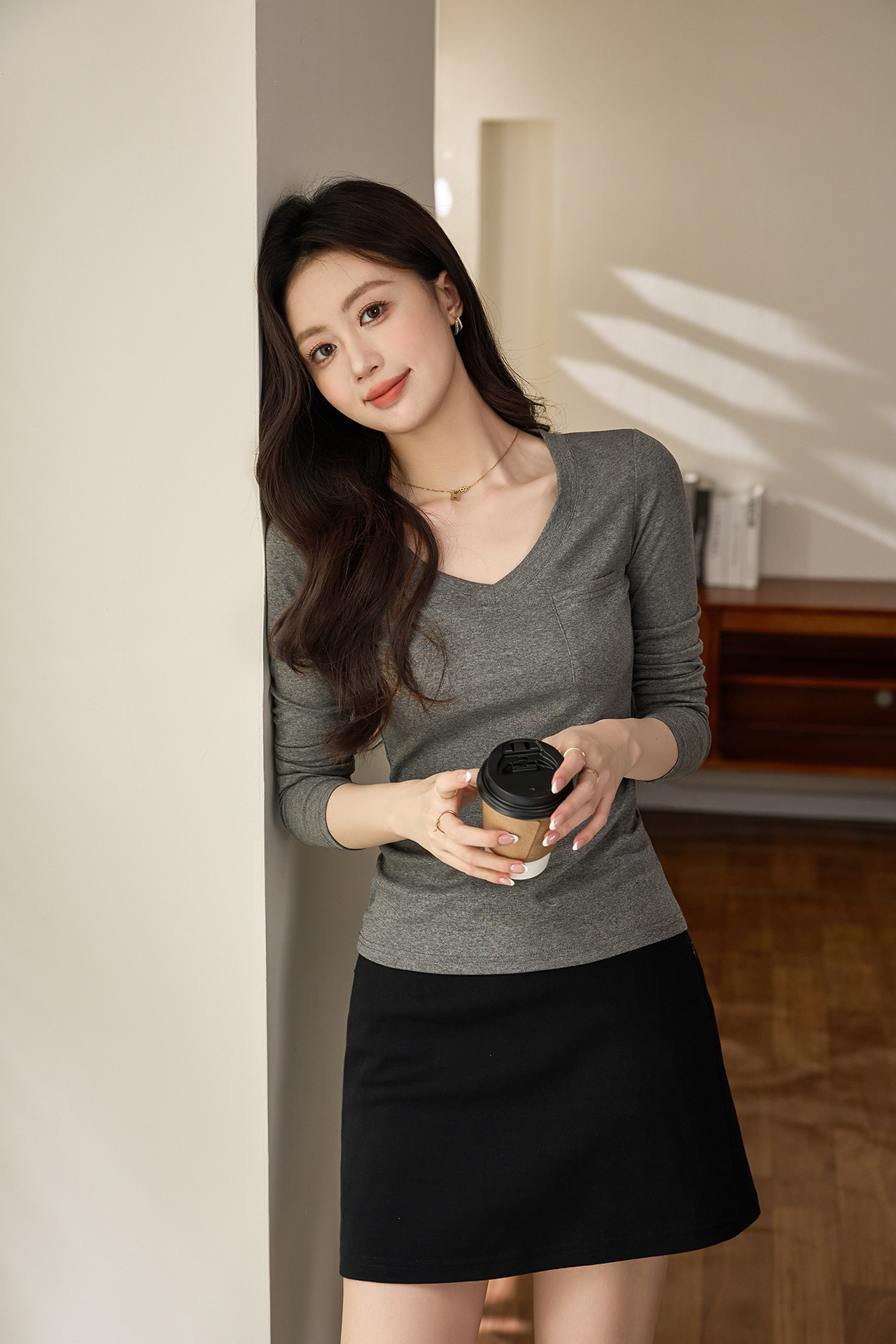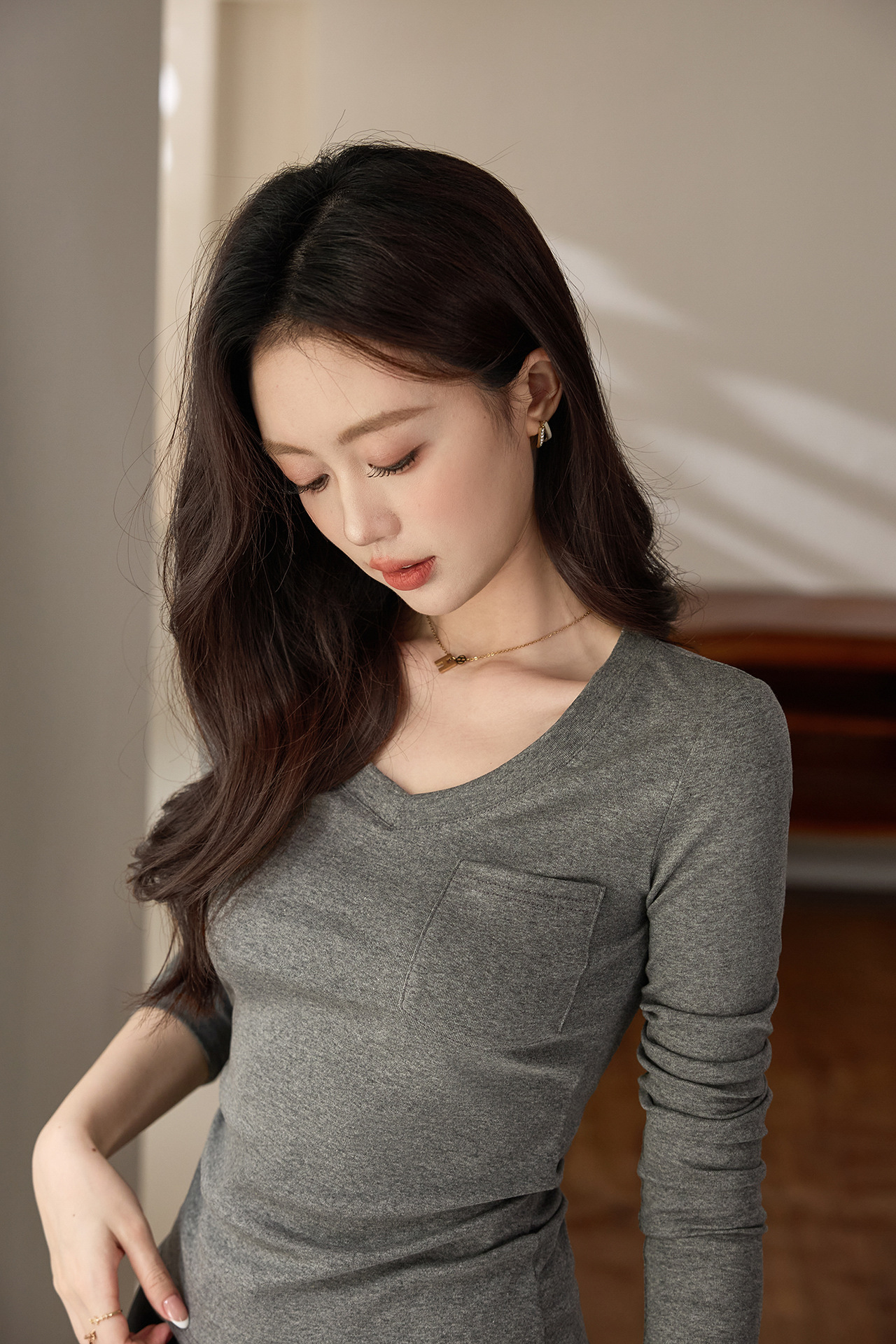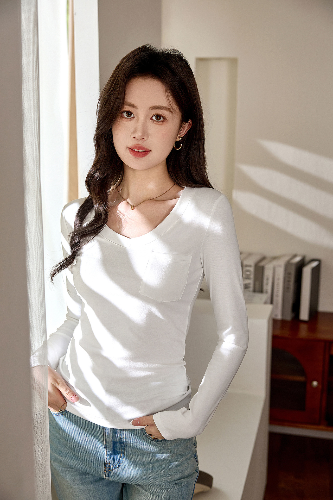 #Selection of pure cotton #Premium sense V-neck bottoming shirt women's long-sleeved t-shirt 2026 autumn new slim-fitting and thin top