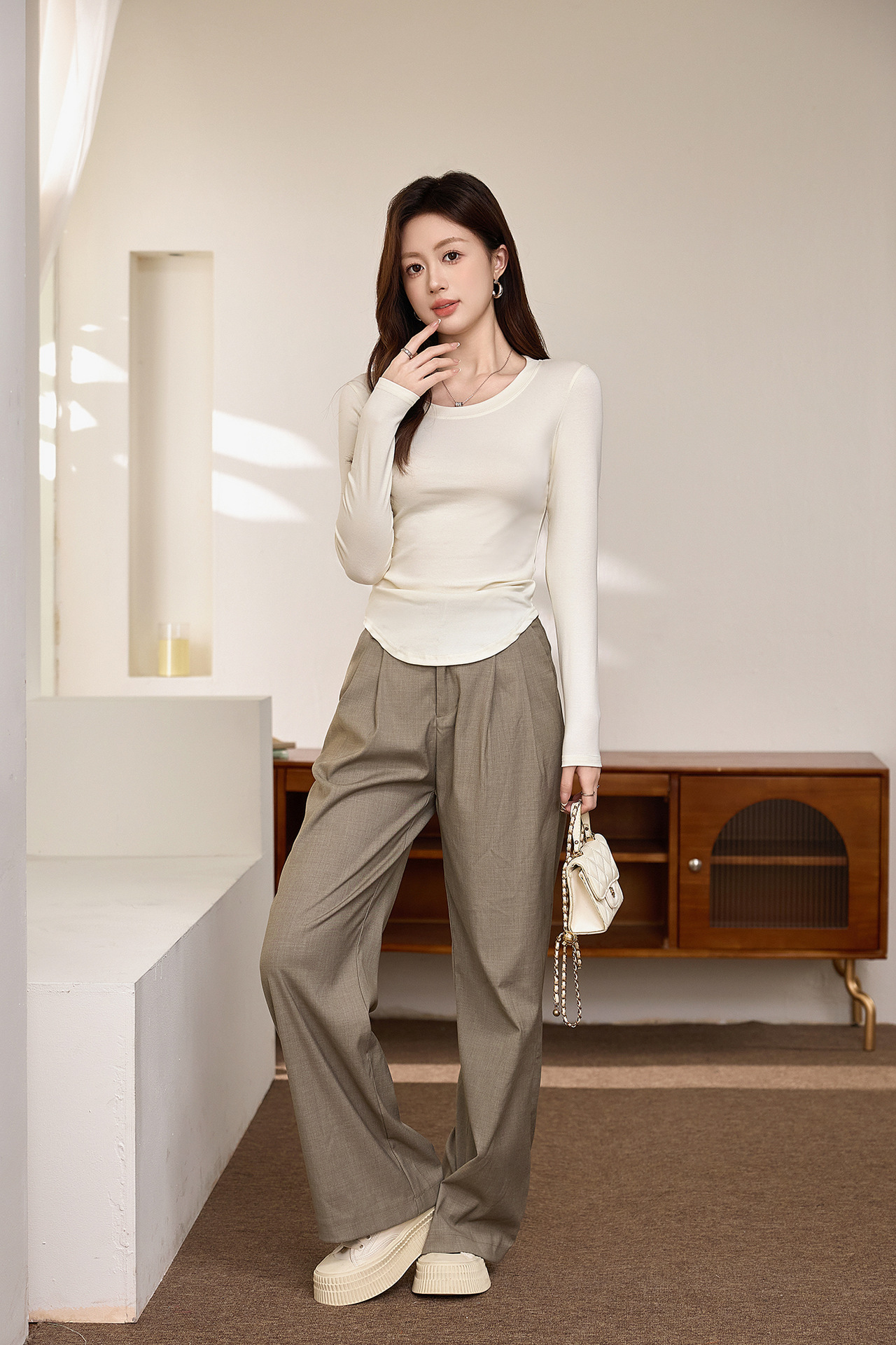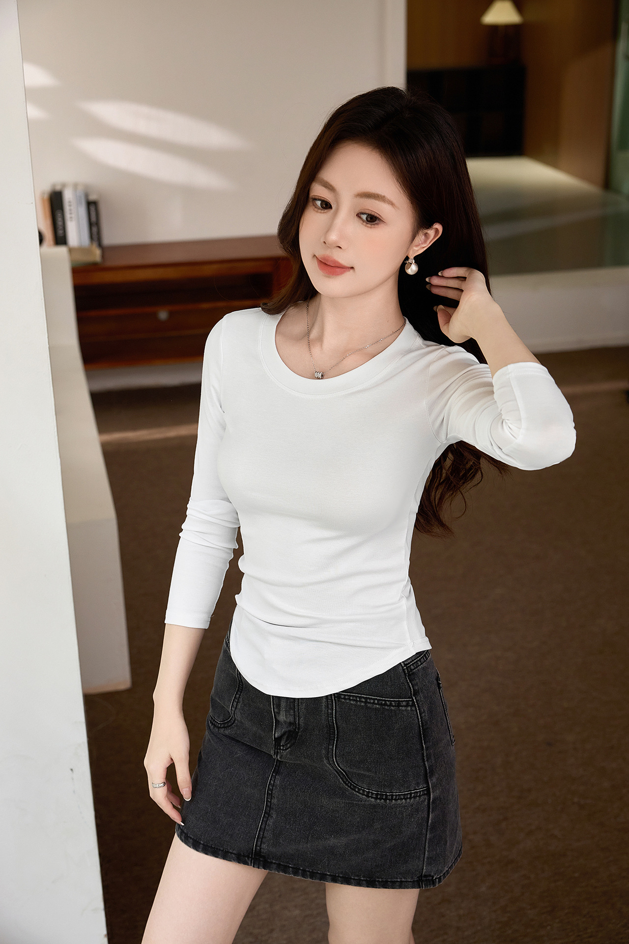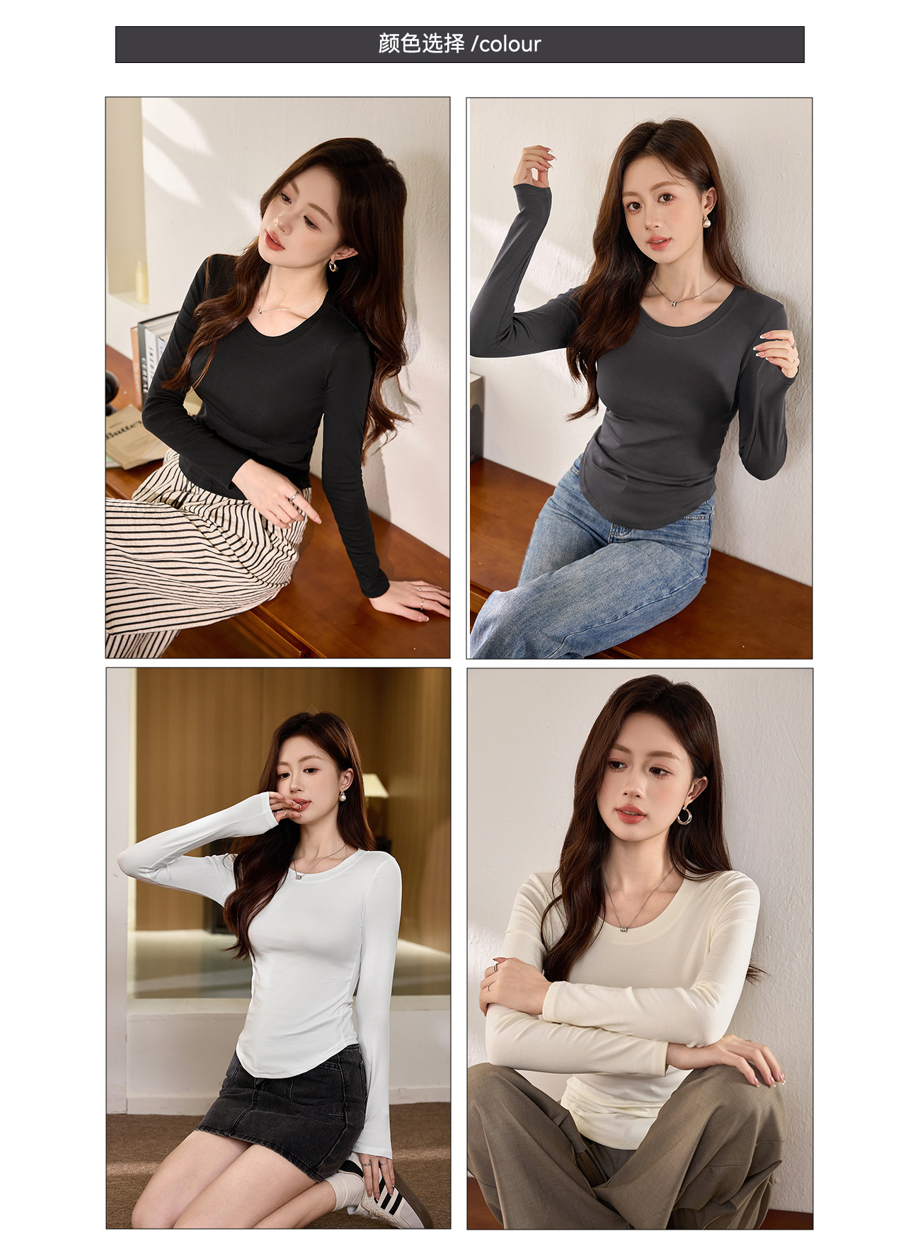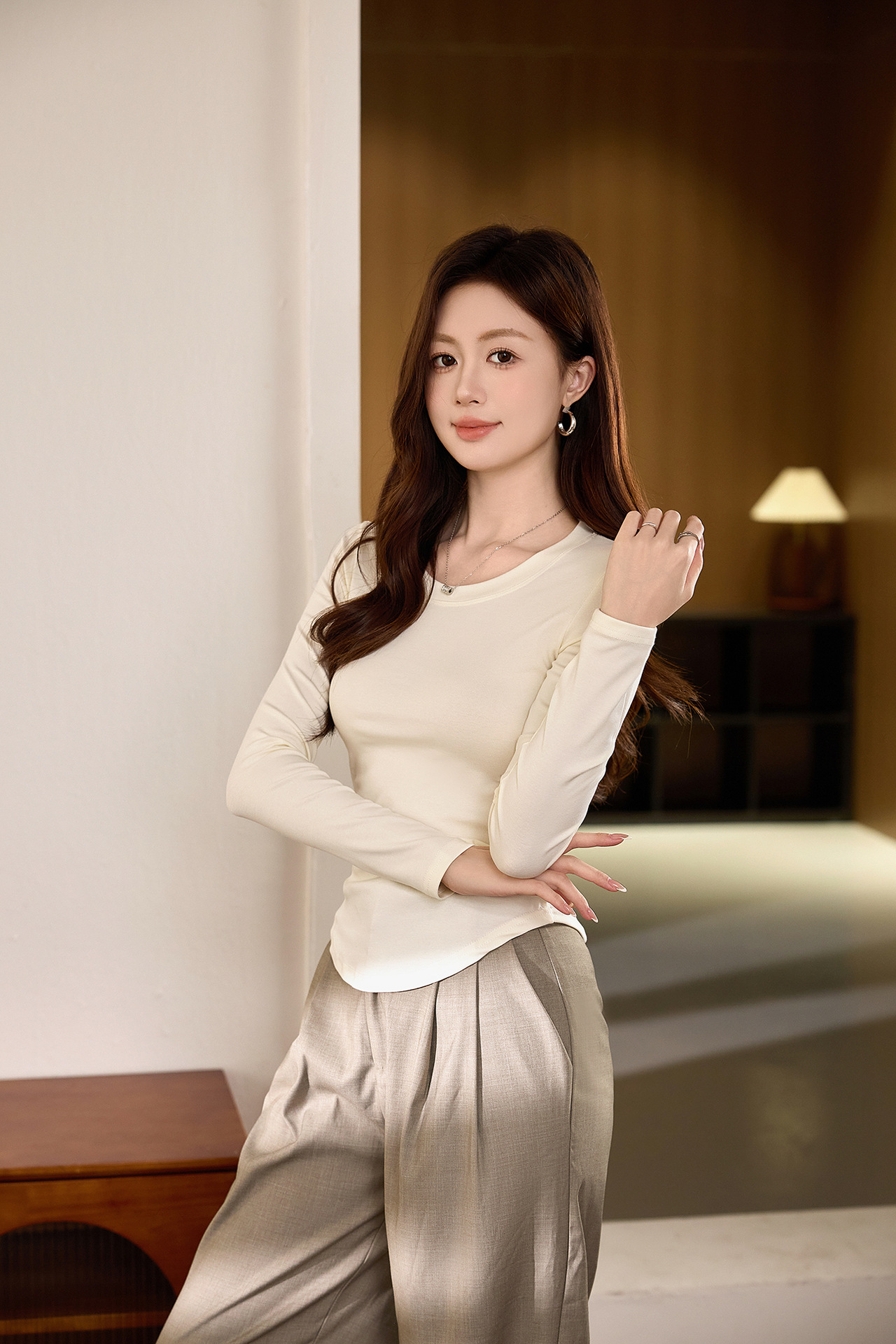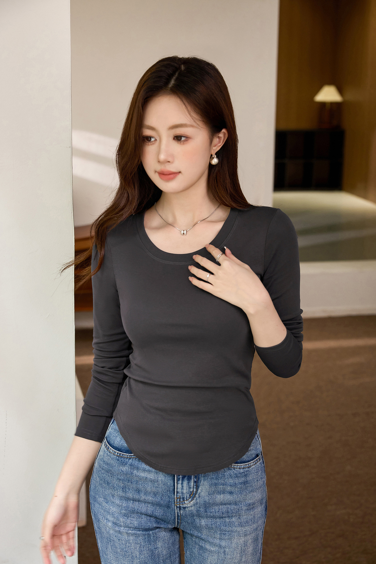 Selection of pure cotton round neck long-sleeved T-shirt women's 2026 autumn new curved top inside slim-fitting front shoulder bottoming shirt
