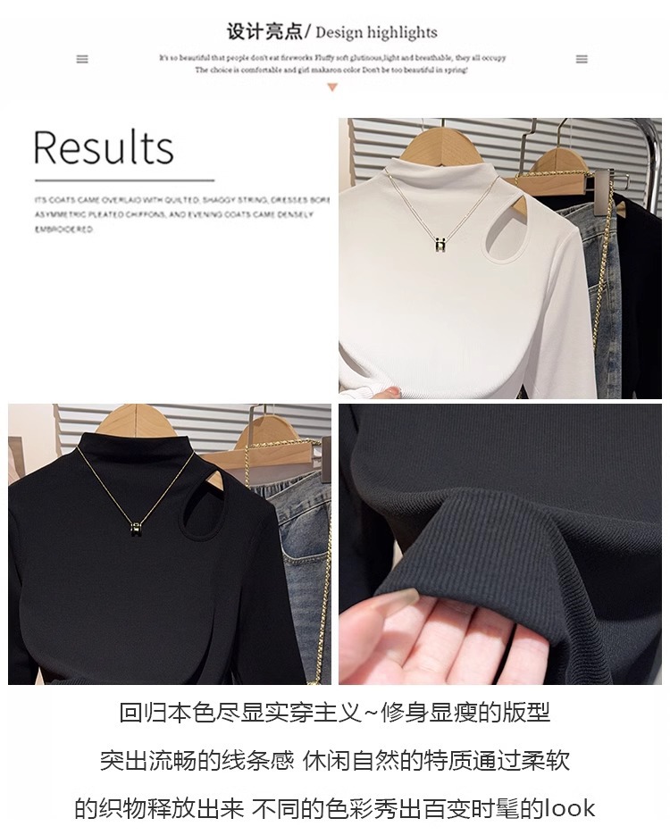 Semi-turtleneck medium-sleeved T-shirt for women's inner wear 2025 spring and summer new threaded hollow bottoming shirt white foreign style top
