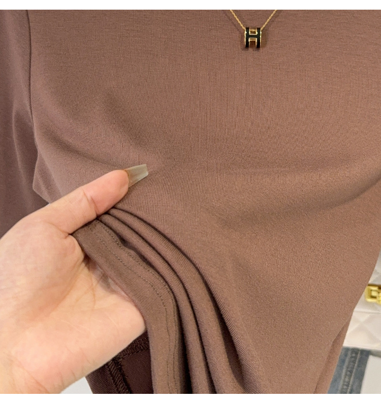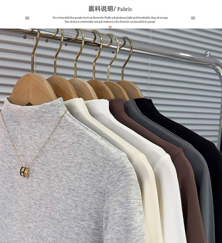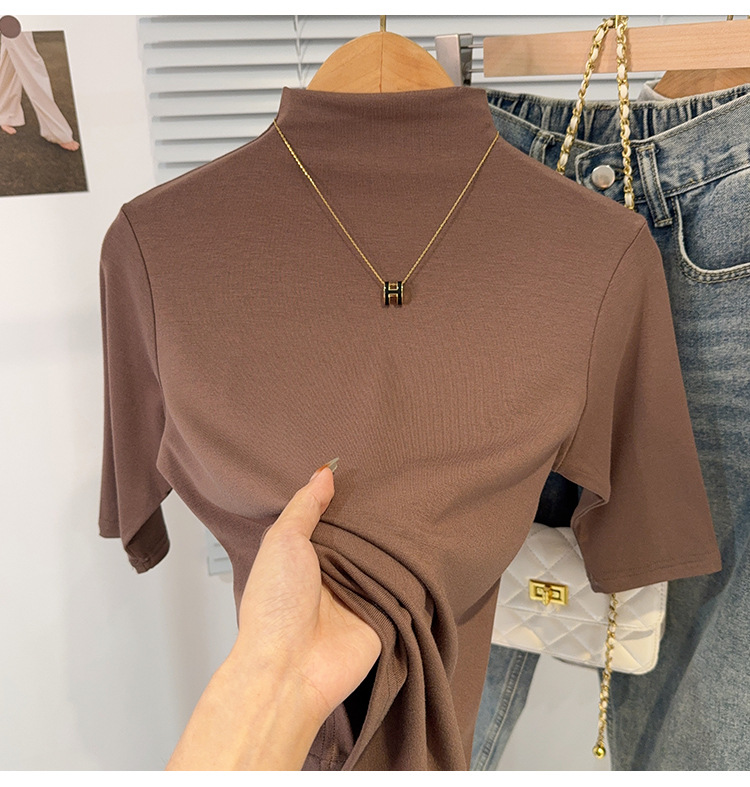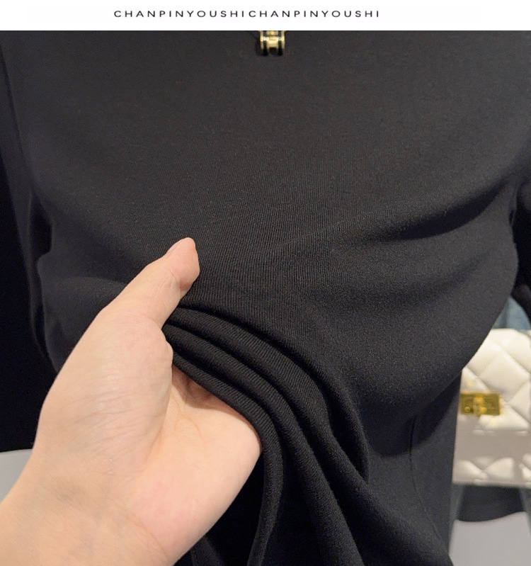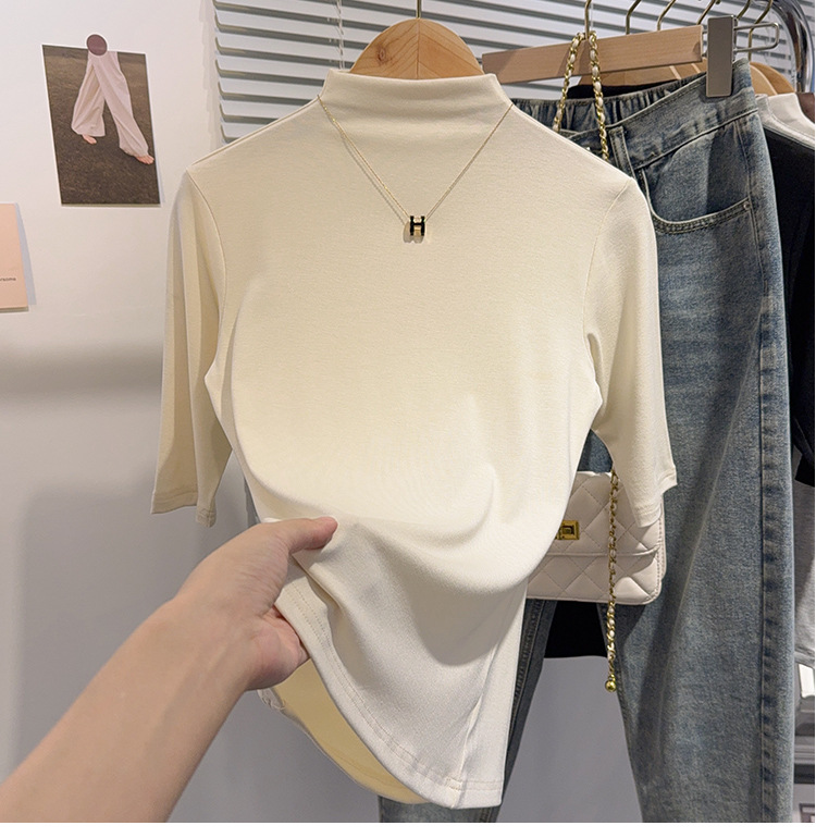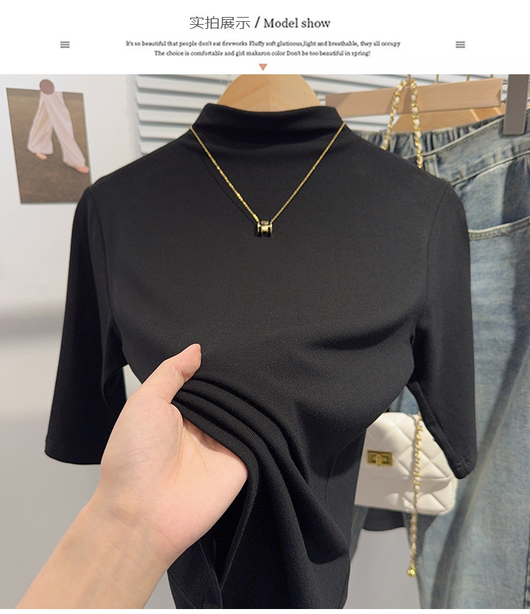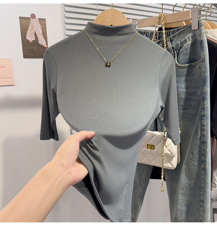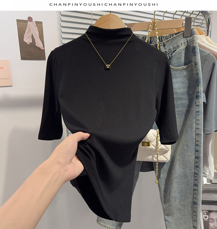Semi-turtleneck medium-sleeved T-shirt women's spring and autumn new black five-quarter-sleeved versatile fashionable foreign-style top bottoming shirt