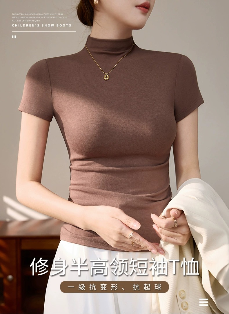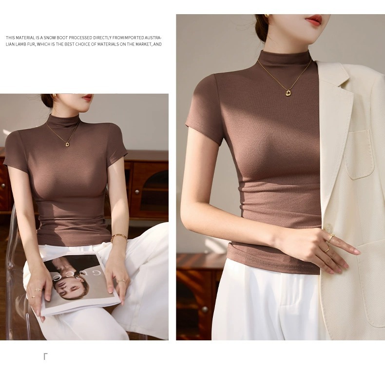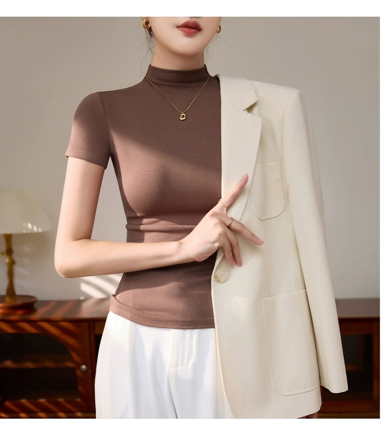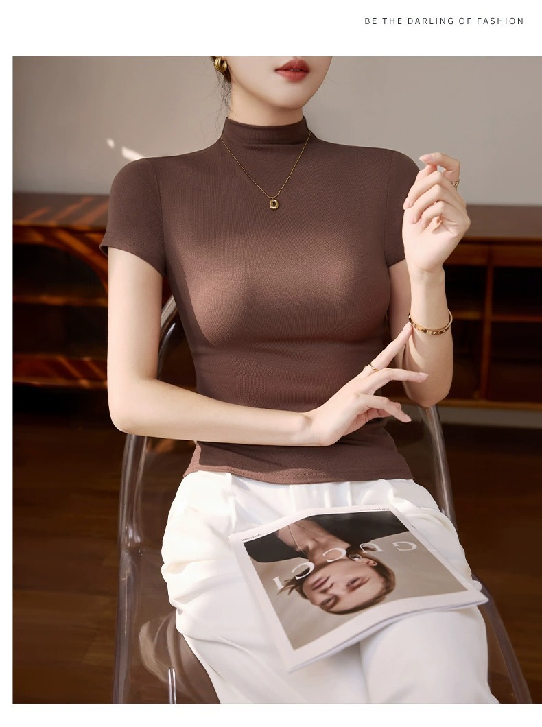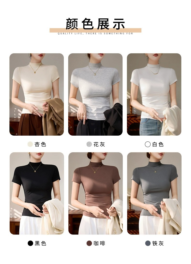 Semi-turtleneck short-sleeved T-shirt Spice Girls Dopamine Wear Early Spring Bottom Shirt Top Skinny Sexy Temperament Front Shoulders