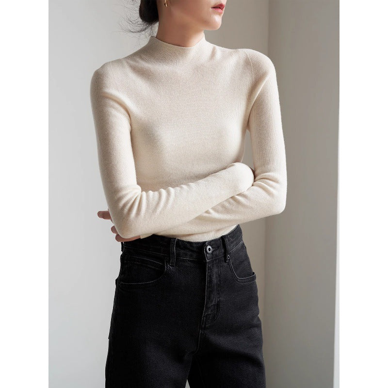 SHALLOW STREAMS autumn and winter seamless one-piece dark gray semi-turtleneck wool knitted sweater women's bottoming shirt top