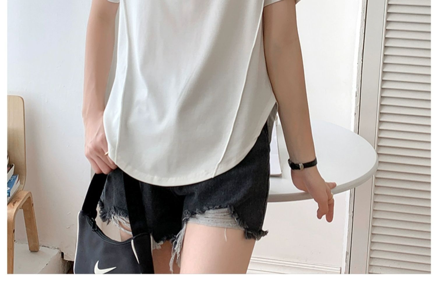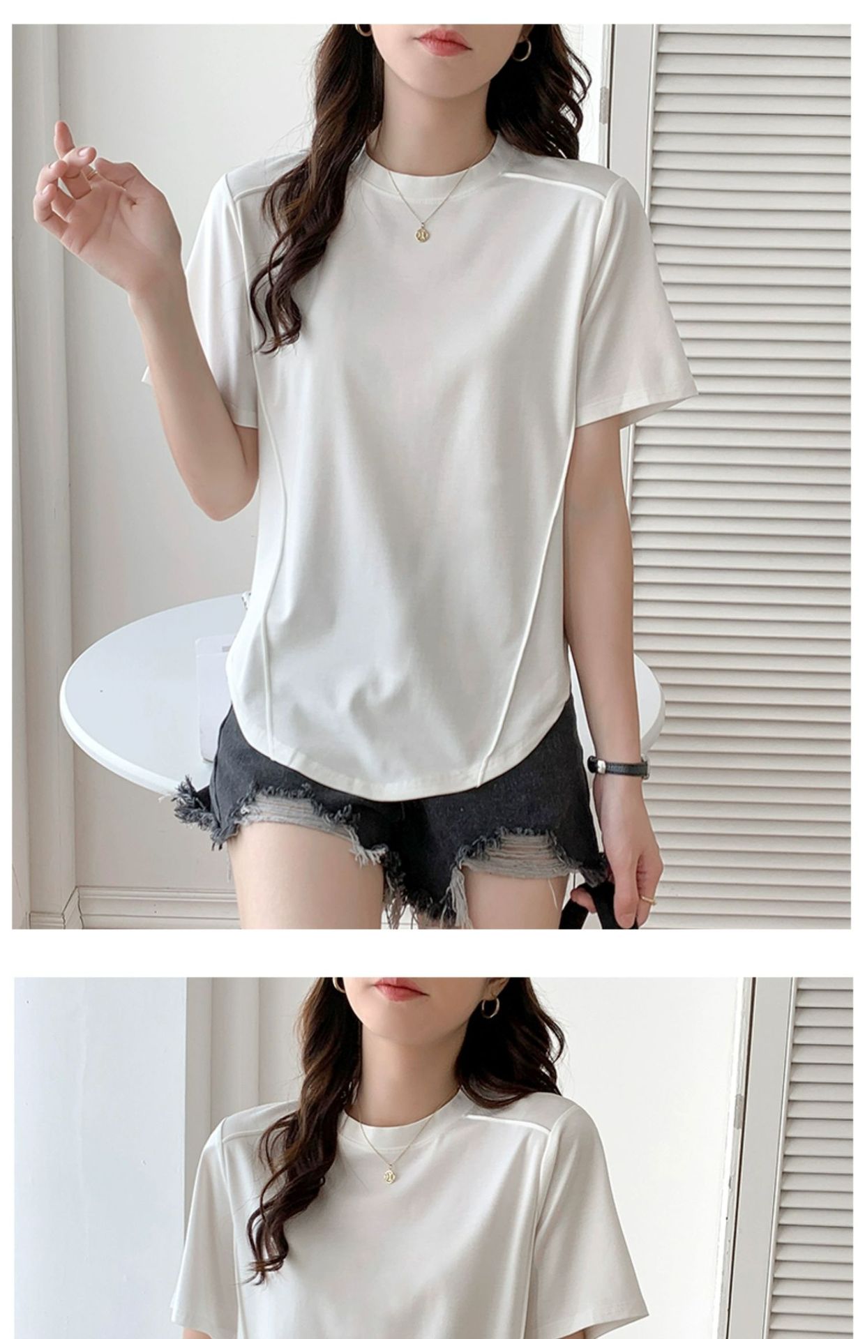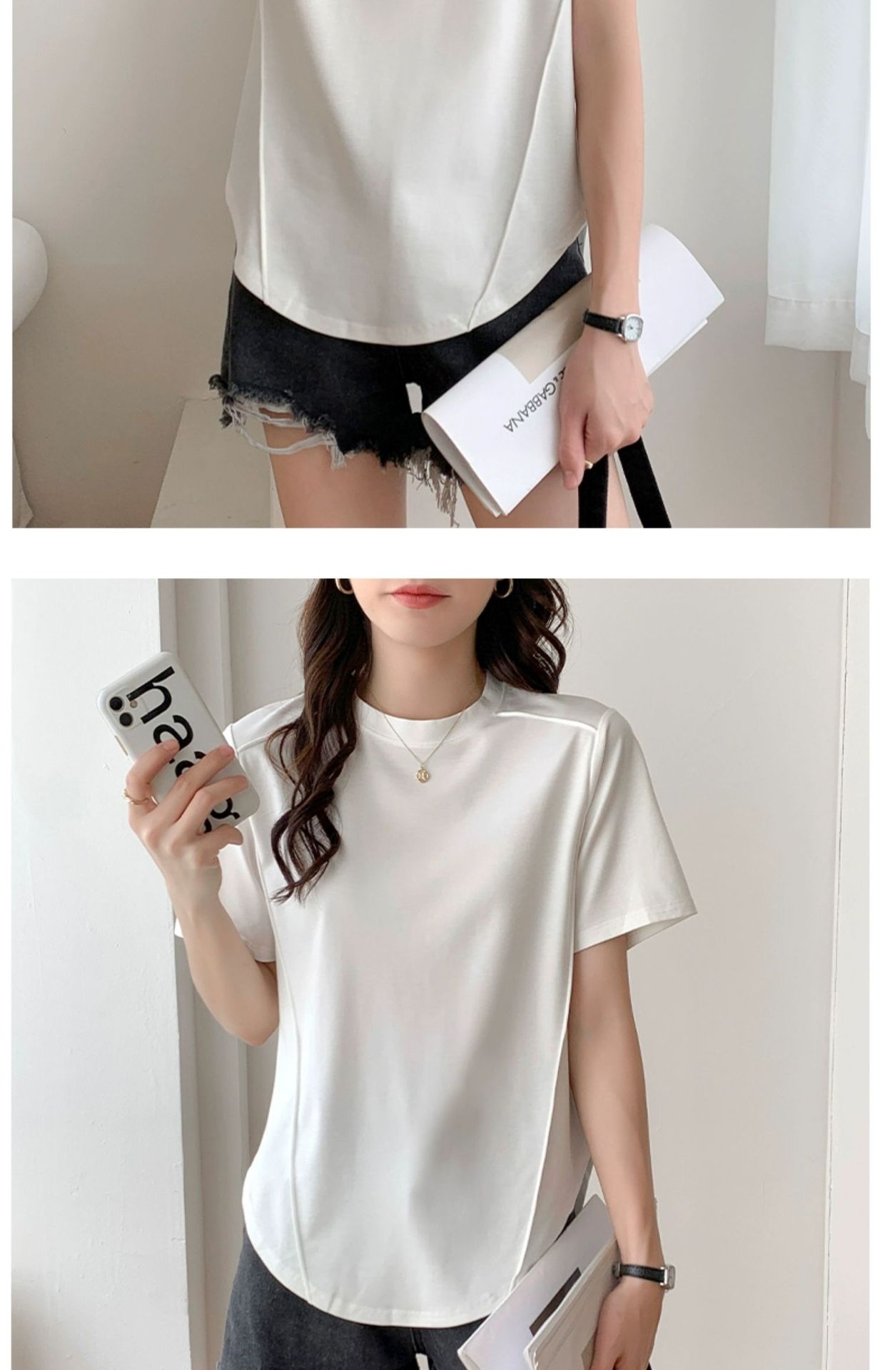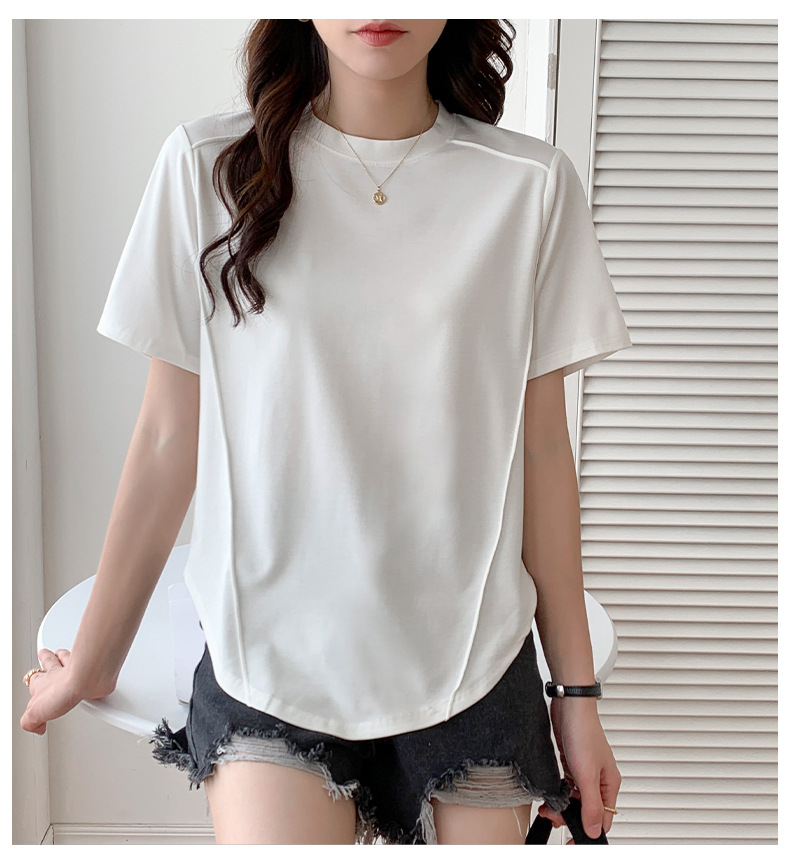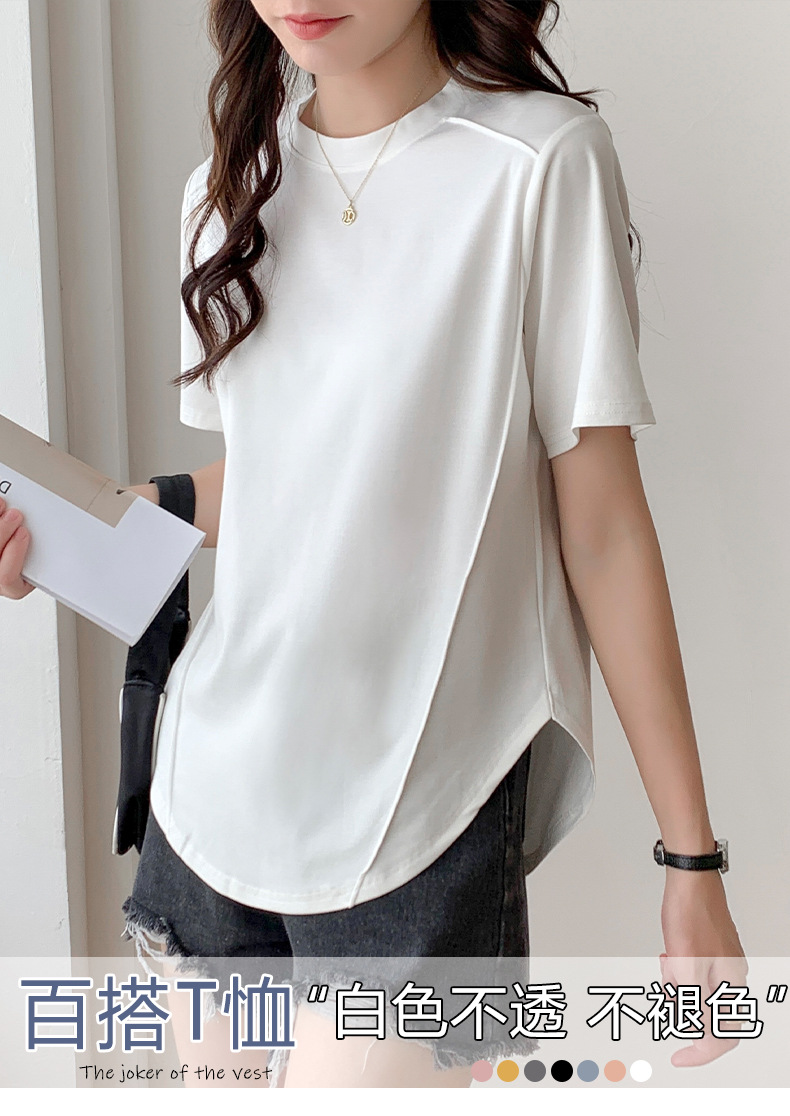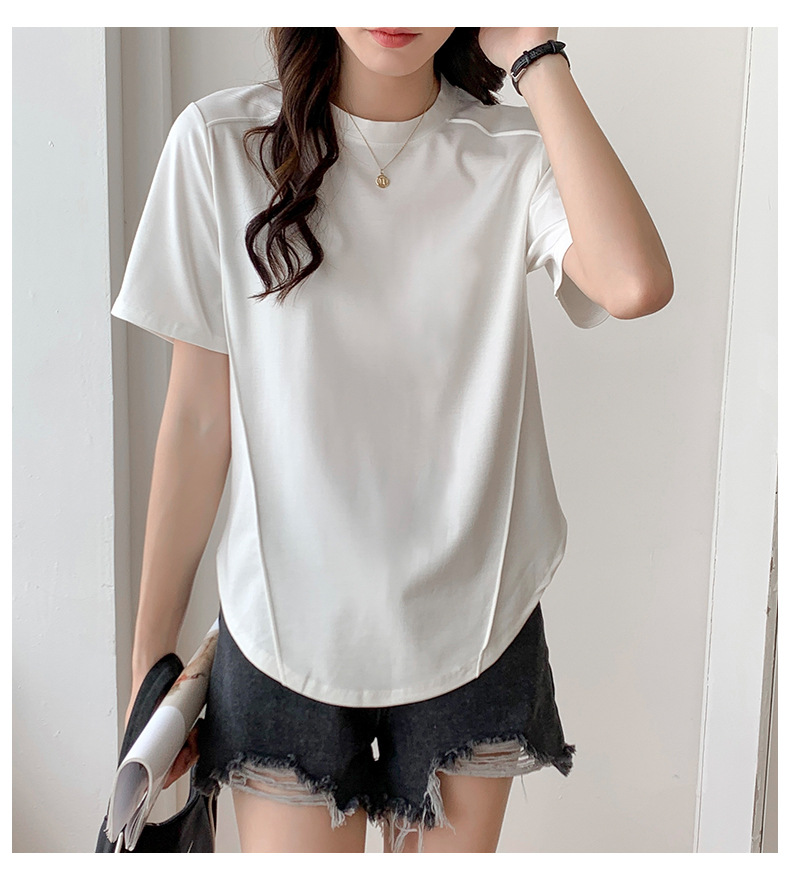 Short-sleeved T-shirt women's hem curved Roman Tencel fish bone half-sleeved ice silk top loose summer stomach cover t-shirt
