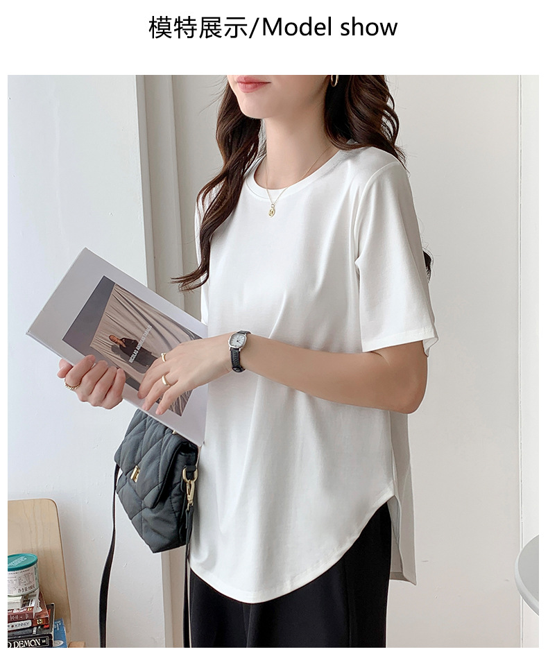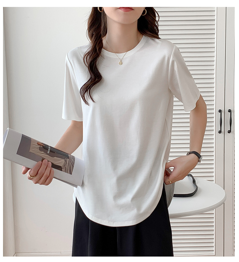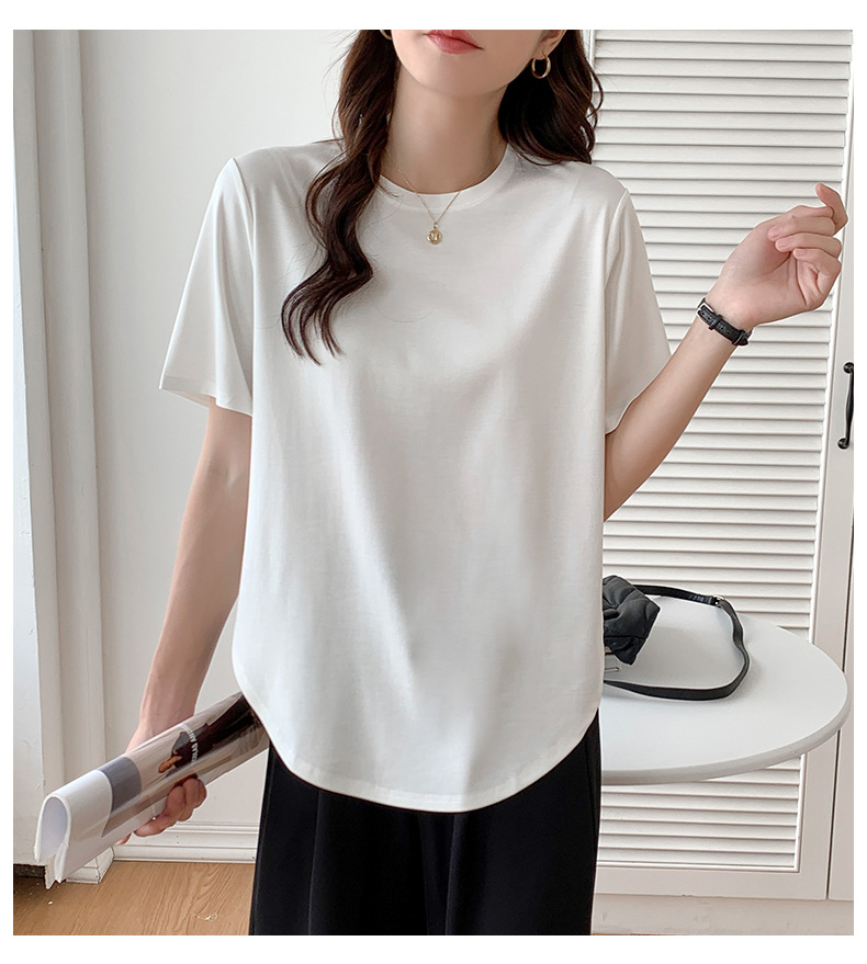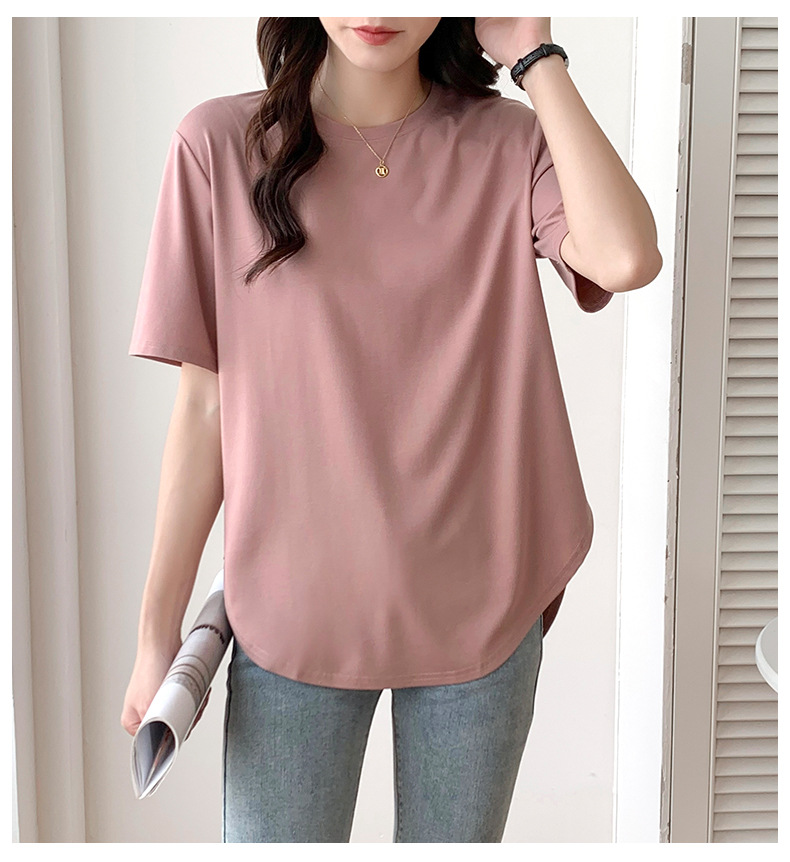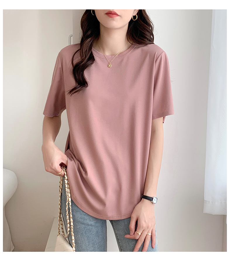 Short-sleeved T-shirt women's loose large version medium and long meat-covered hem curved Roman Tencel half-sleeved ice silk top summer