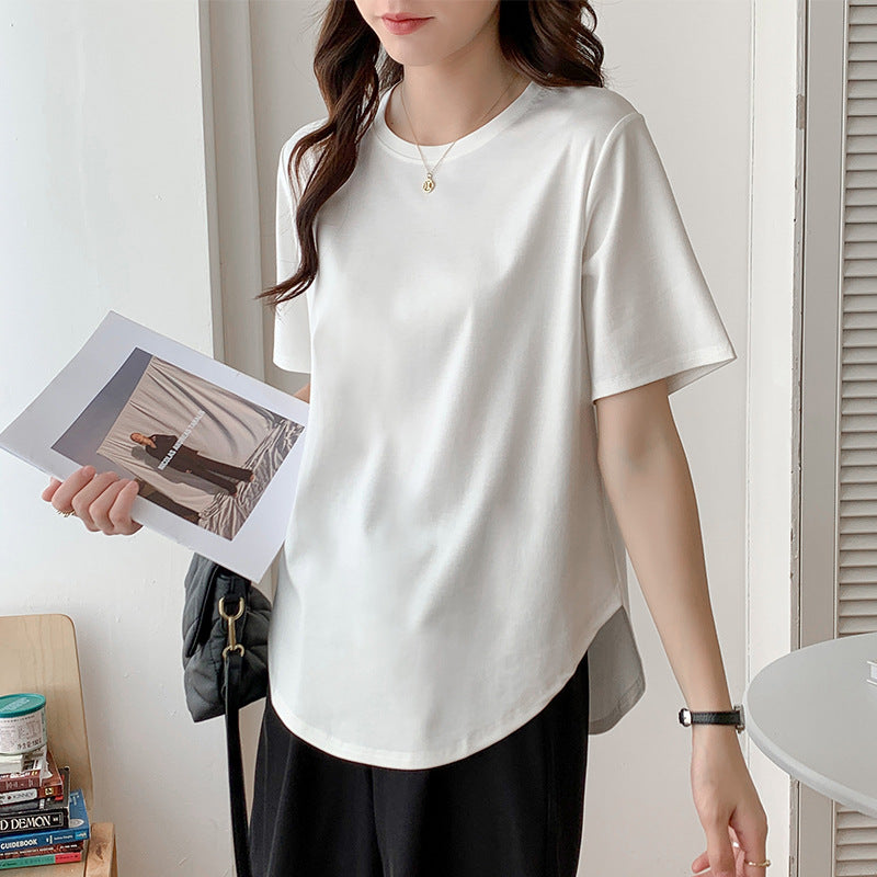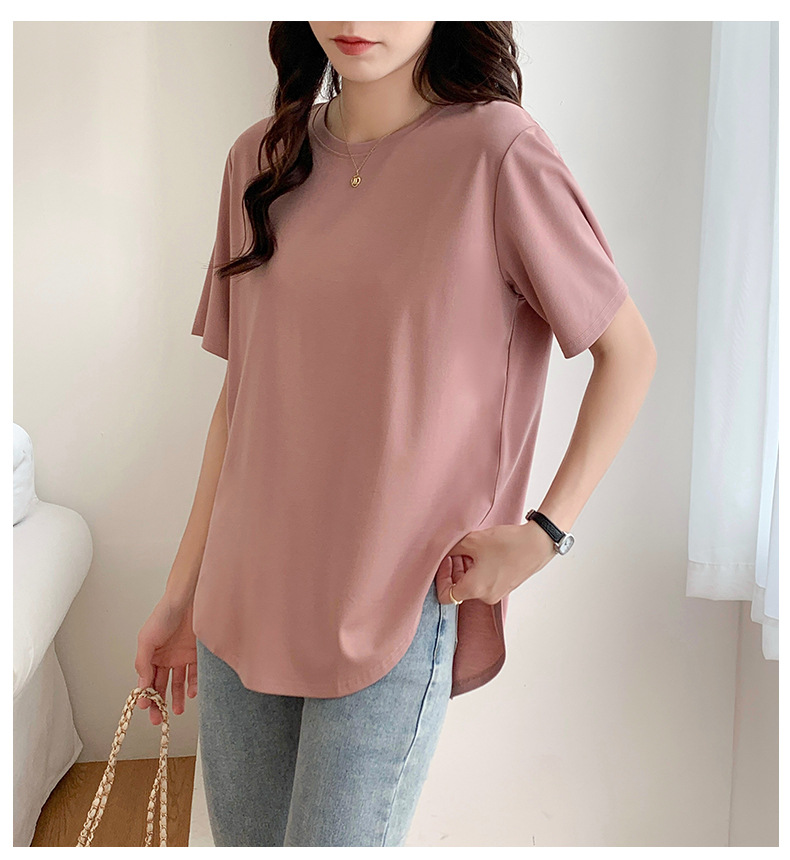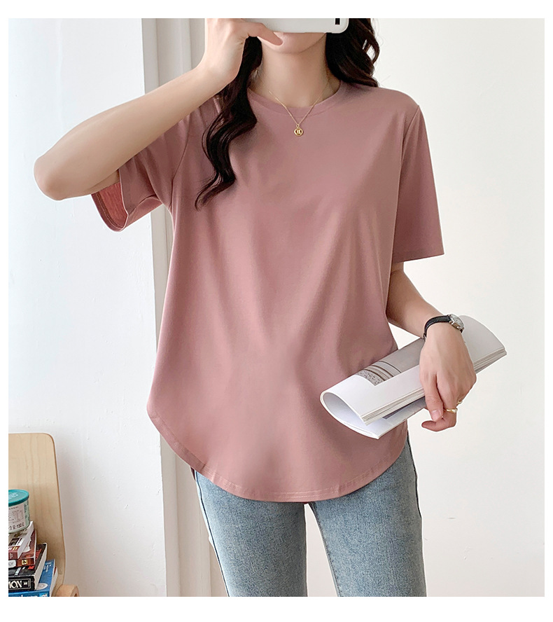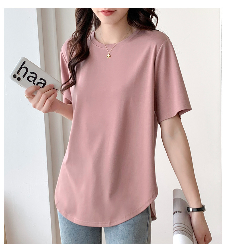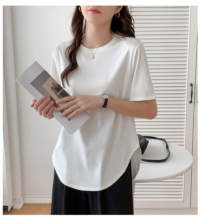 Short-sleeved T-shirt women's loose large version medium and long meat-covered hem curved Roman Tencel half-sleeved ice silk top summer