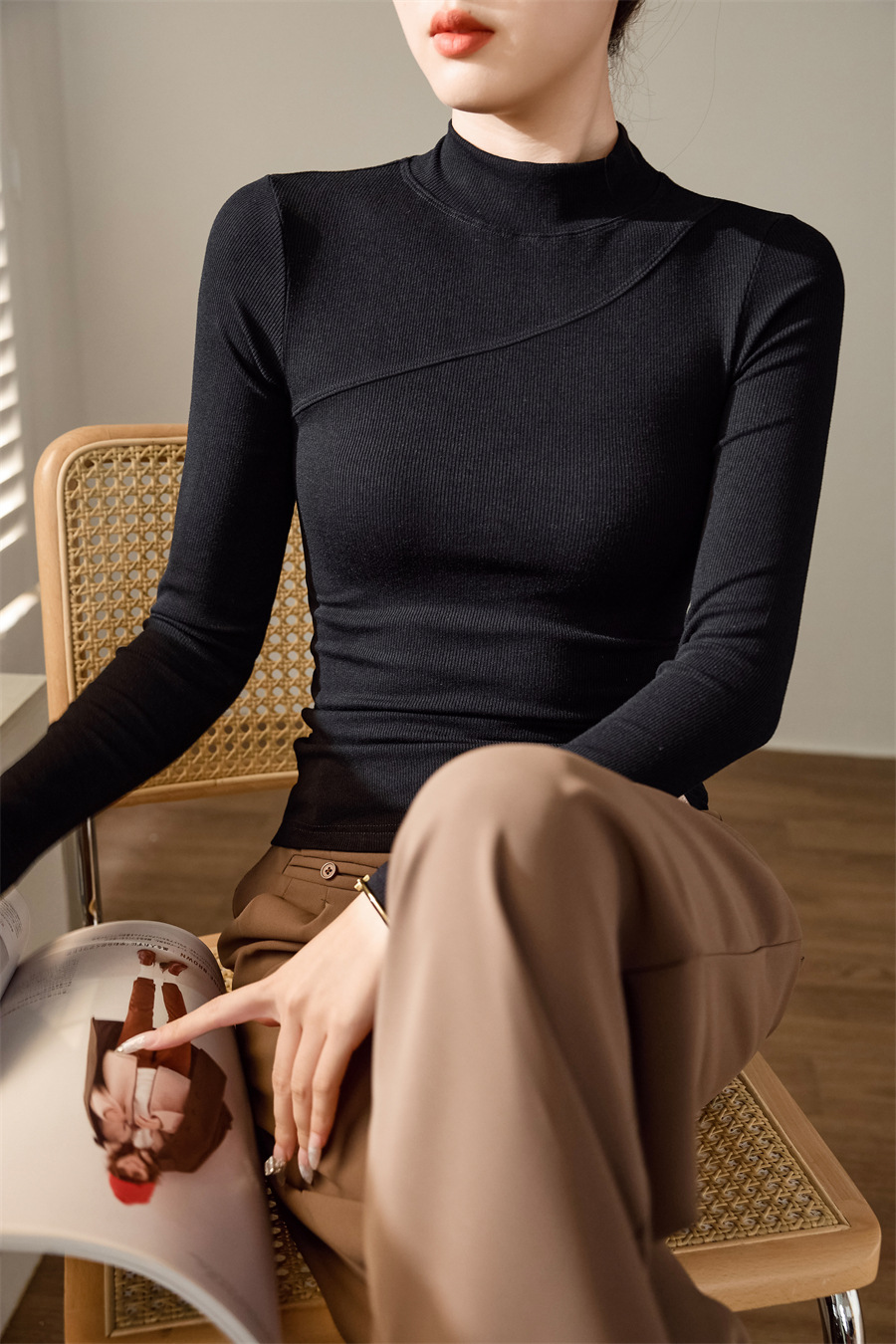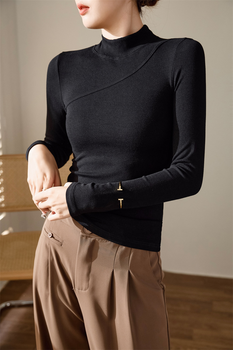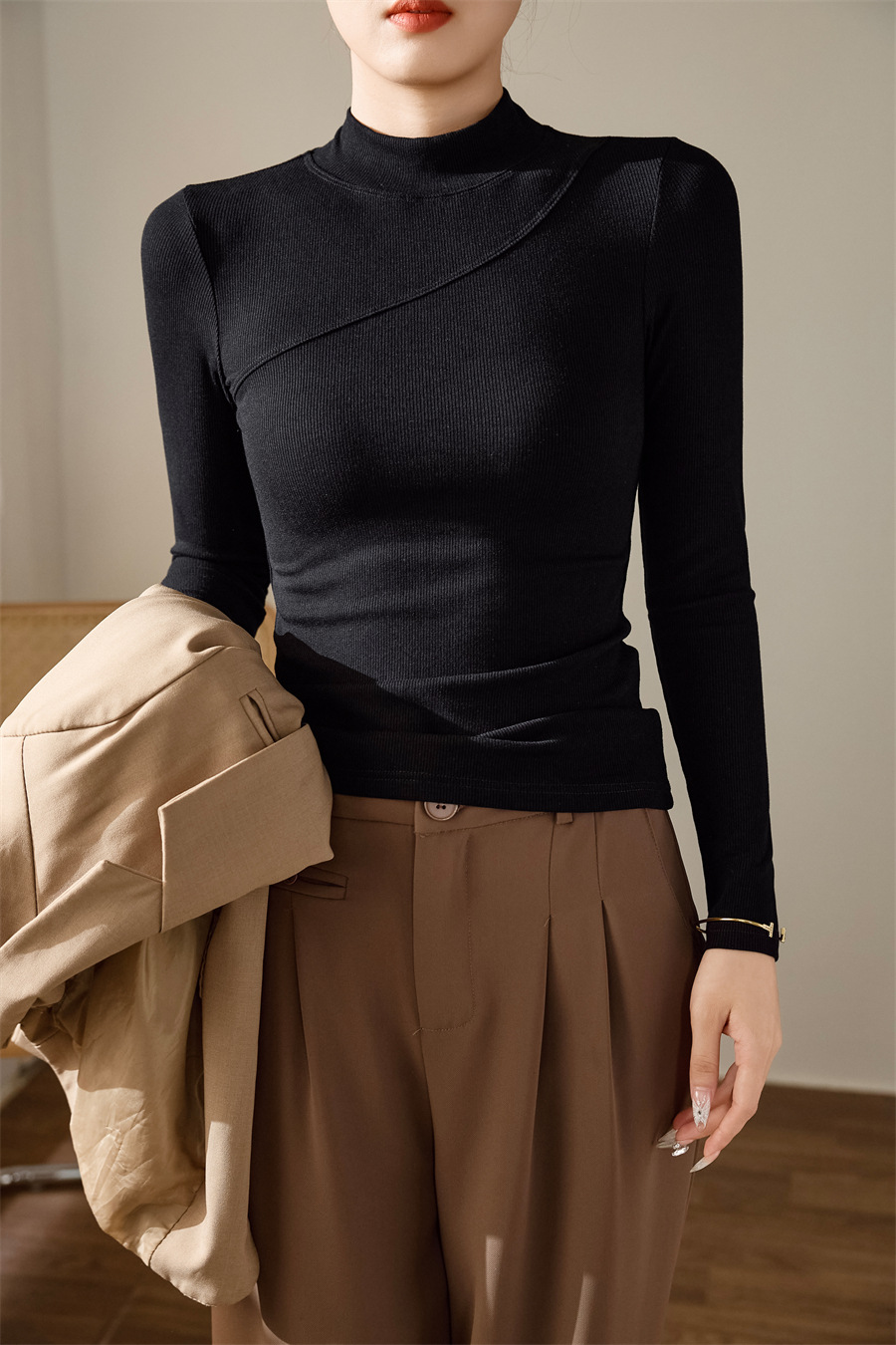 Skinny bottoming shirt for women's autumn and winter 2026 new stand-up collar long-sleeved T-shirt, thin inner with velvet heating and warm top