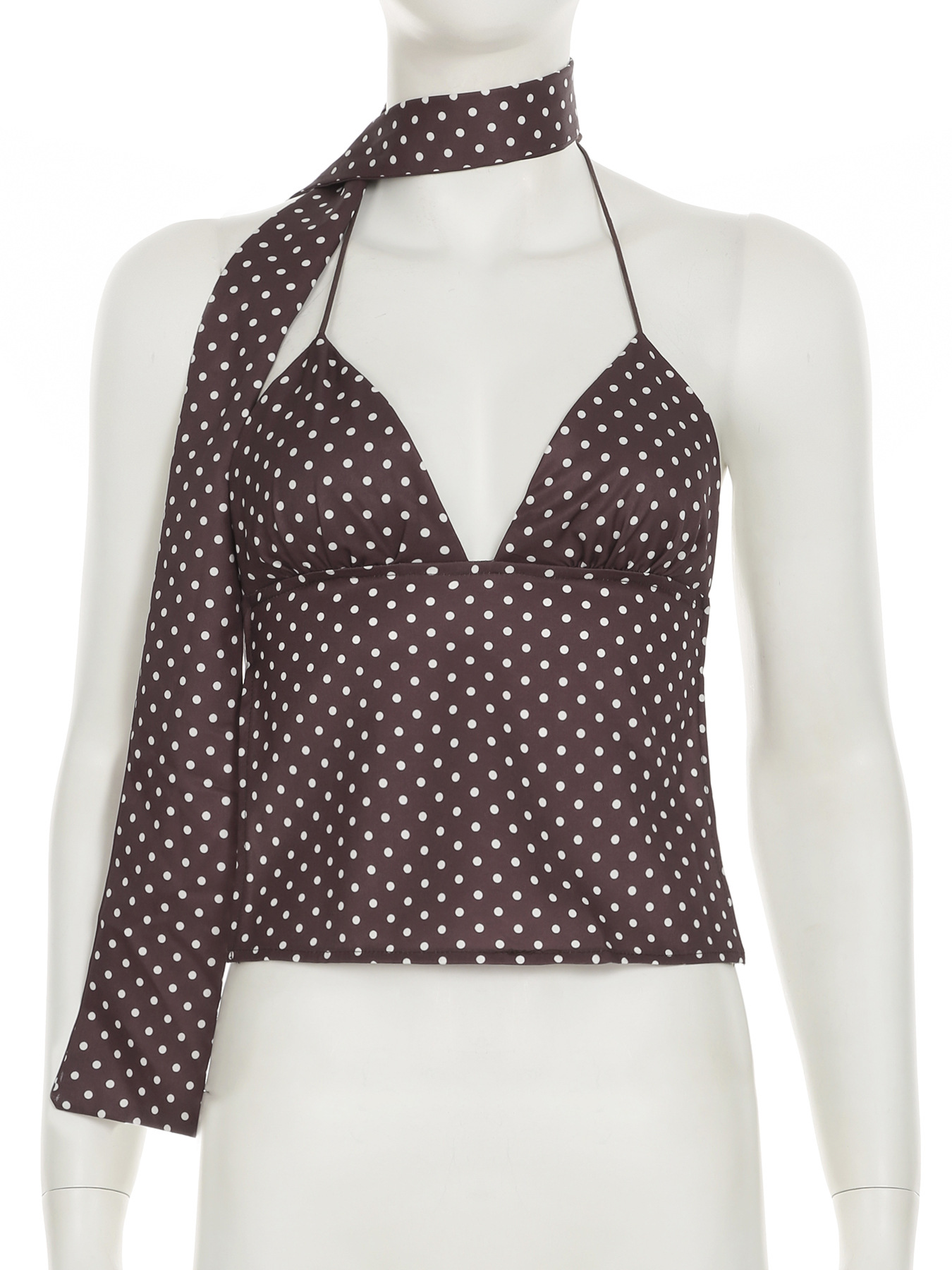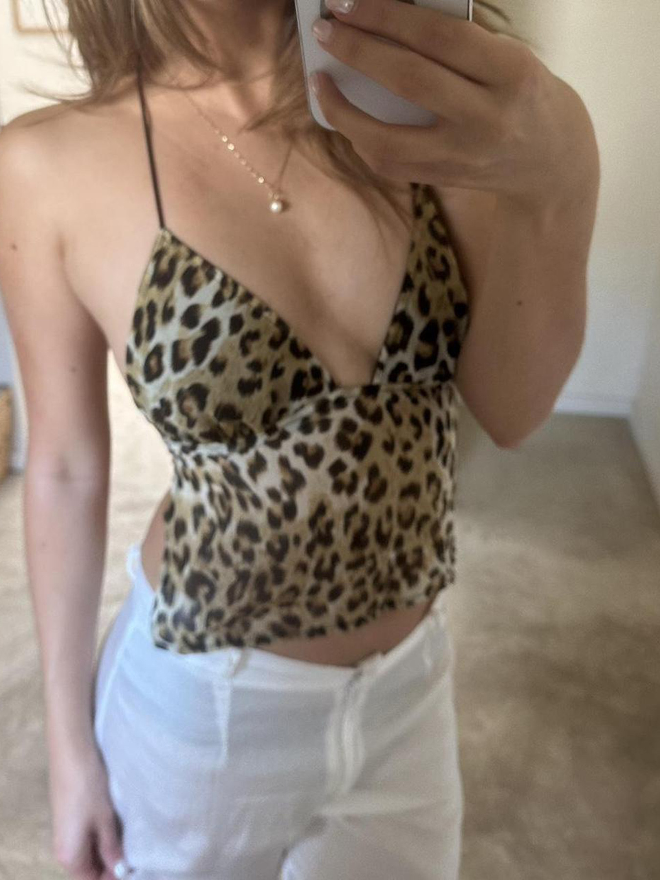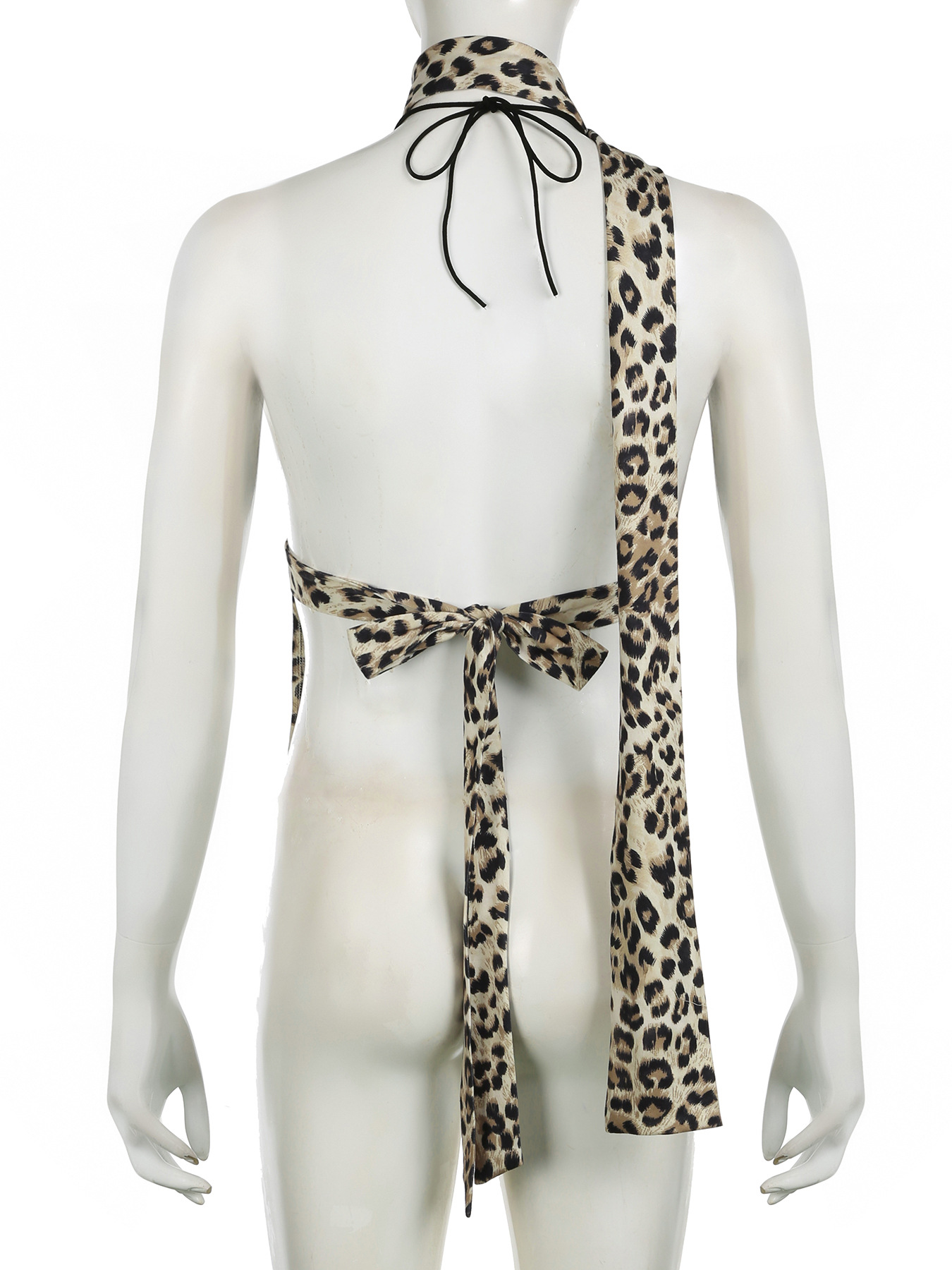Spice girl sexy leopard print scarf ruffle edge sling vest vacation style low cut backless versatile top
