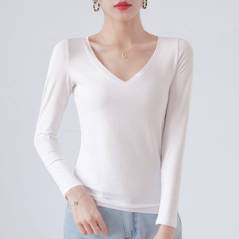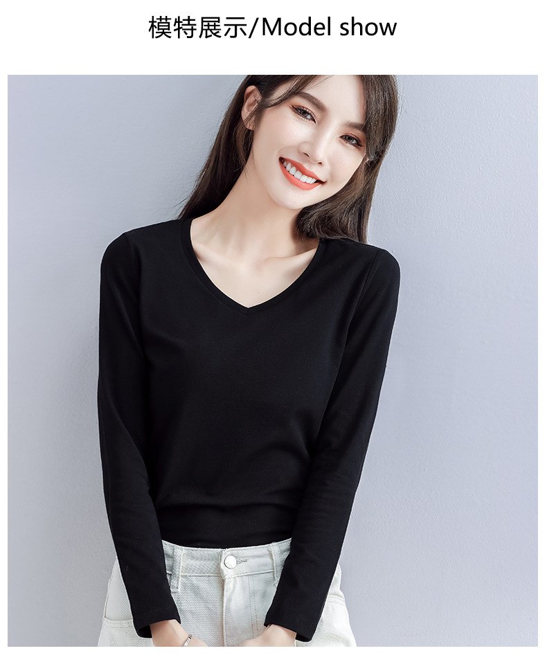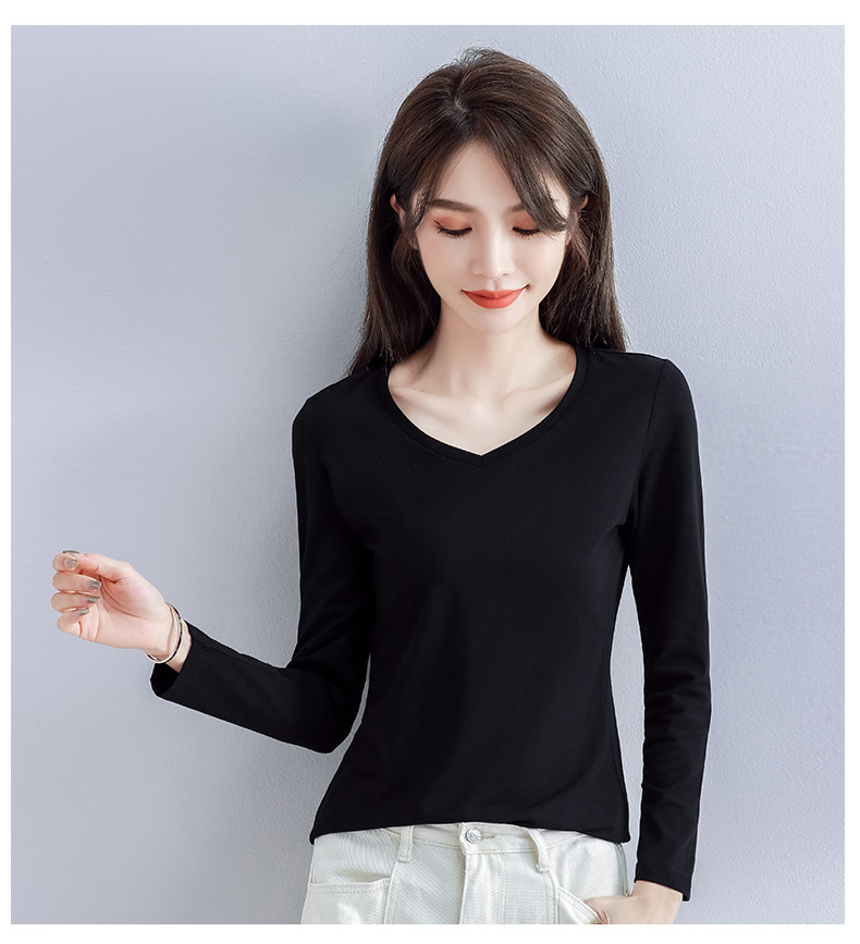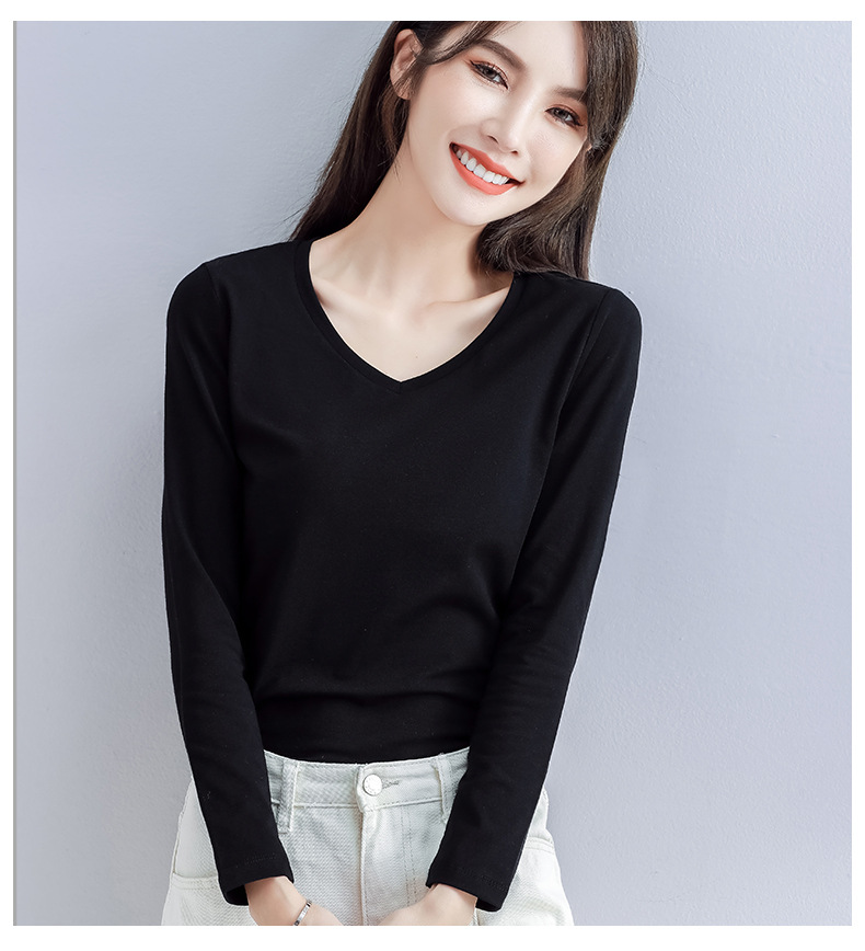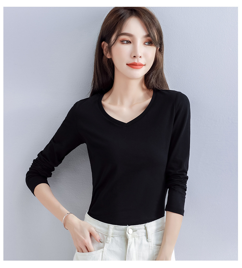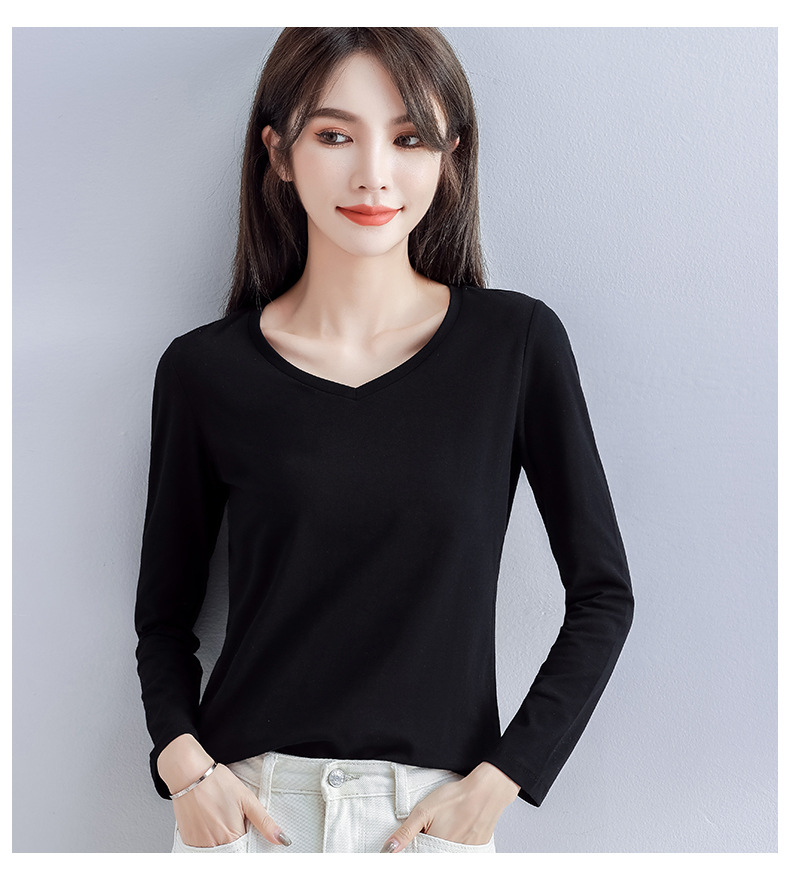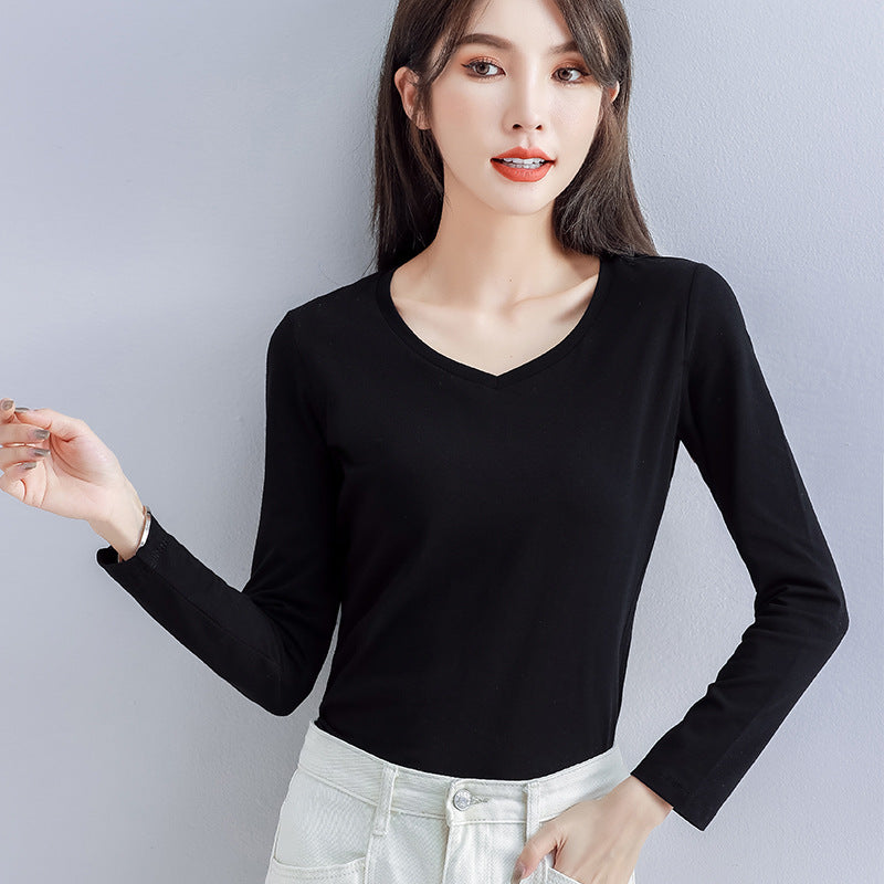 Spring and Autumn 2025 pure cotton versatile V-neck long-sleeved T-shirt women's Korean version with slim foreign base shirt top for commuting