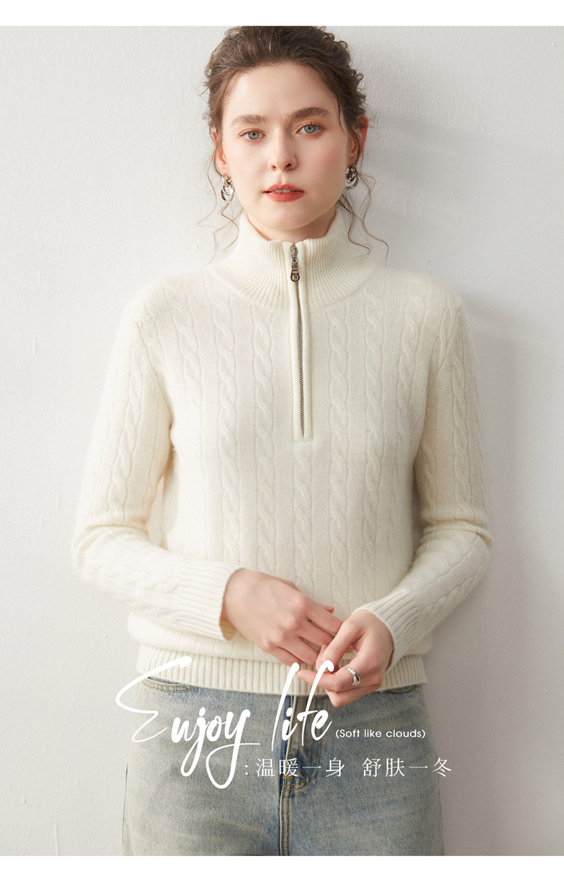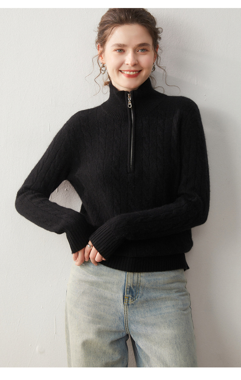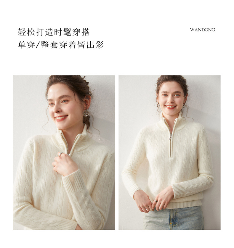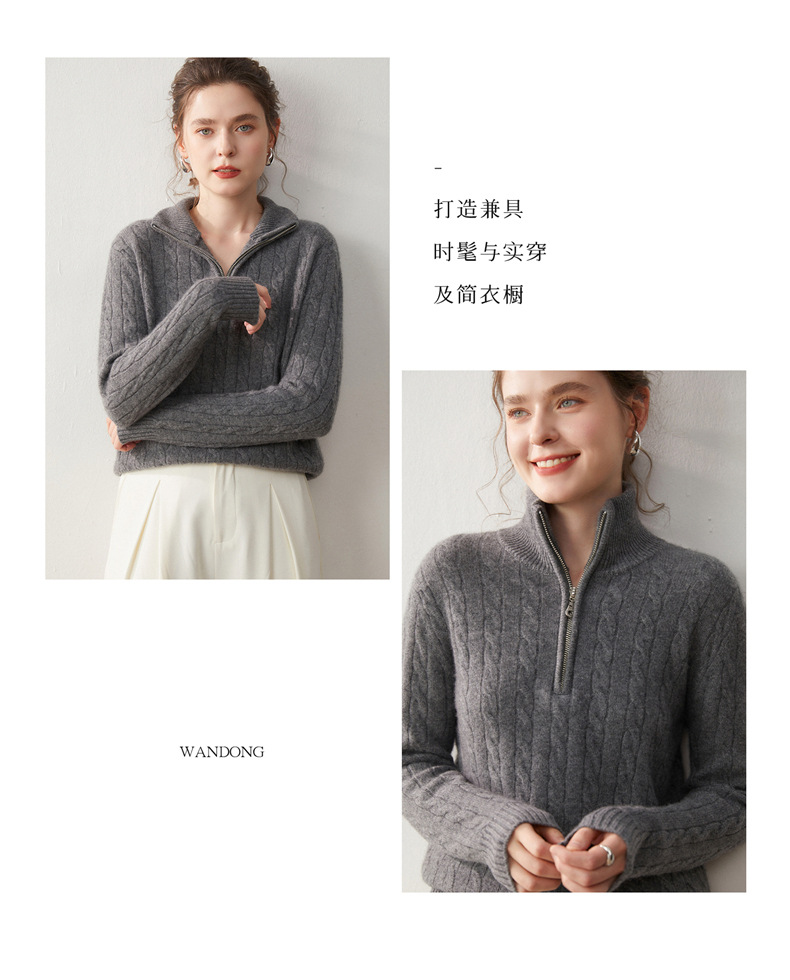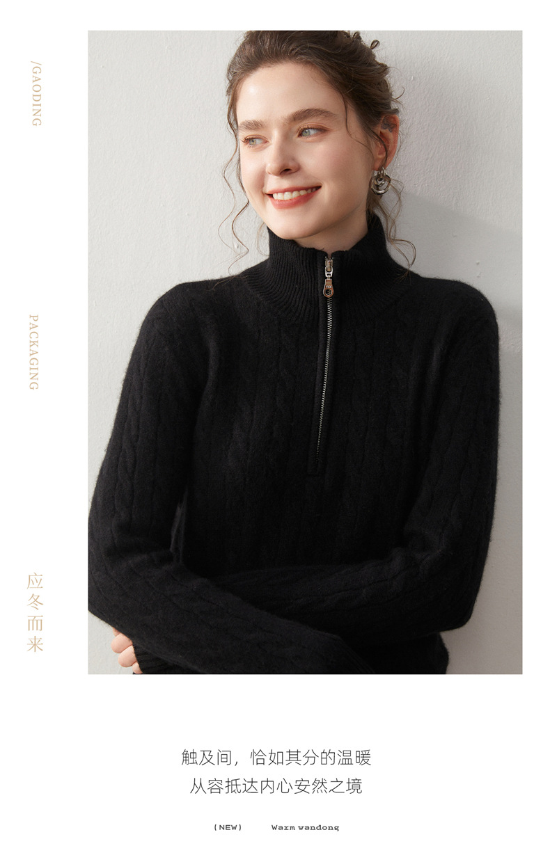 Stand-up collar half-zipper cashmere sweater women's autumn and winter pullover turtleneck twist sweater thickened wool knitted bottoming shirt outer wear