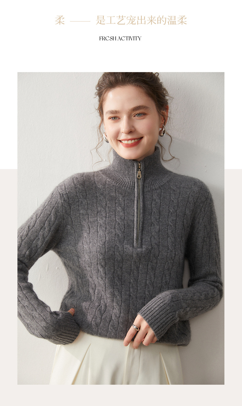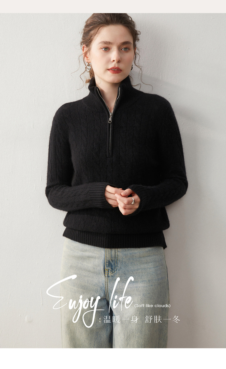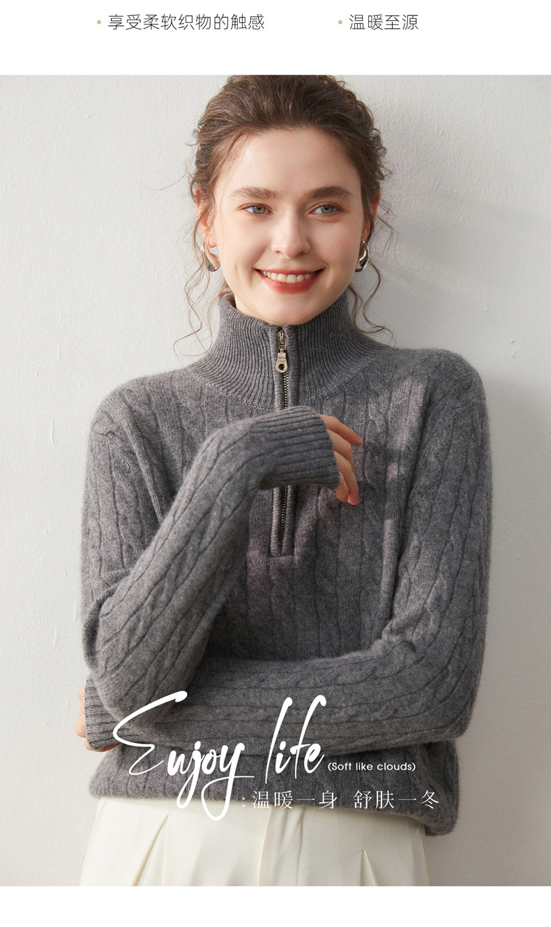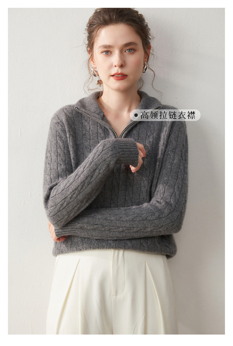 Stand-up collar half-zipper cashmere sweater women's autumn and winter pullover turtleneck twist sweater thickened wool knitted bottoming shirt outer wear