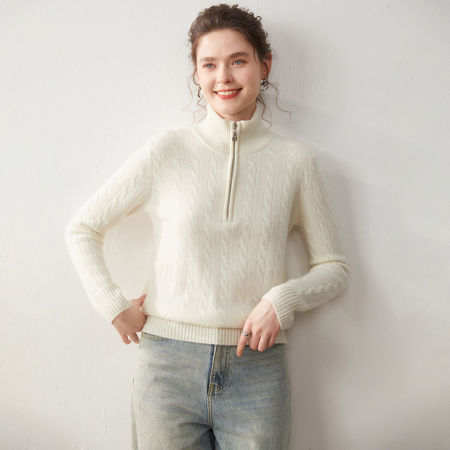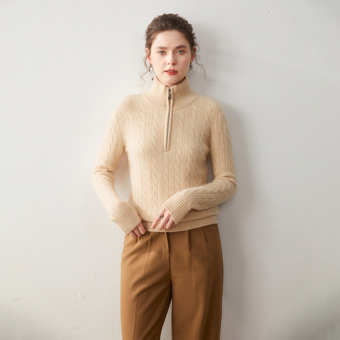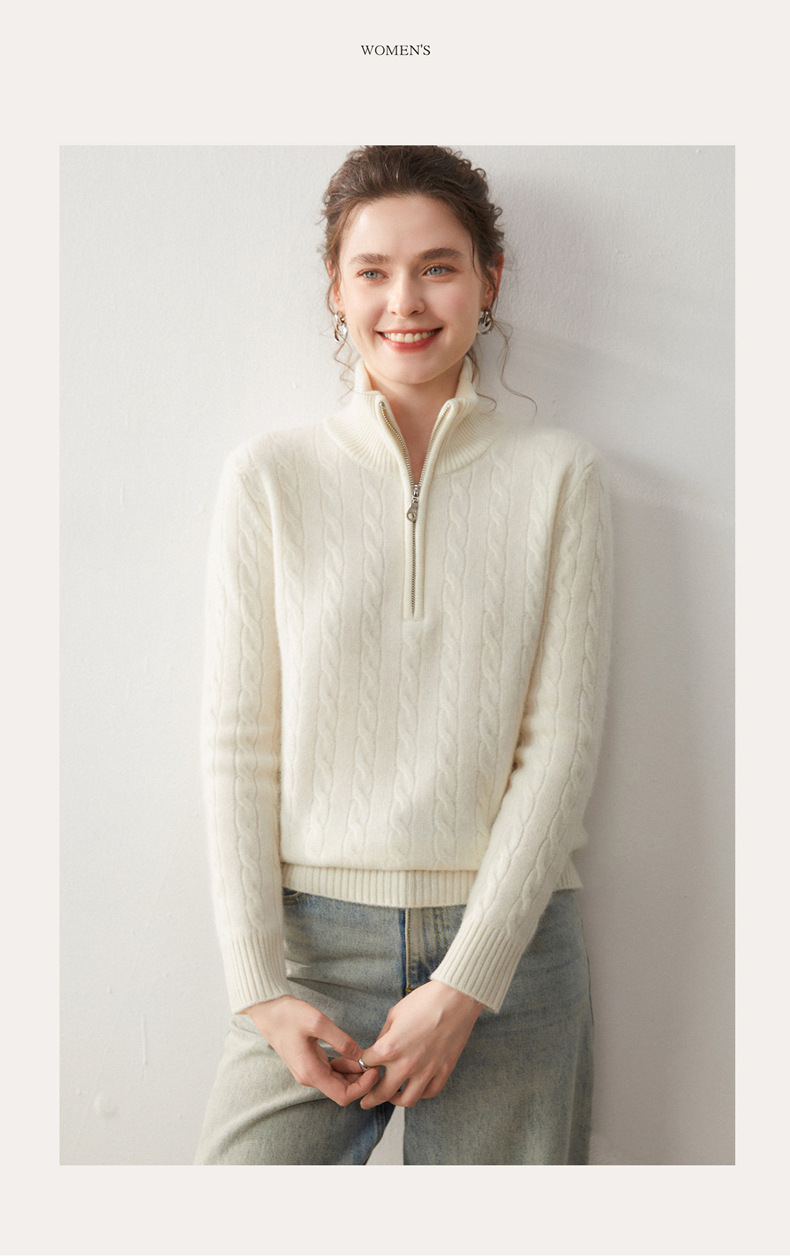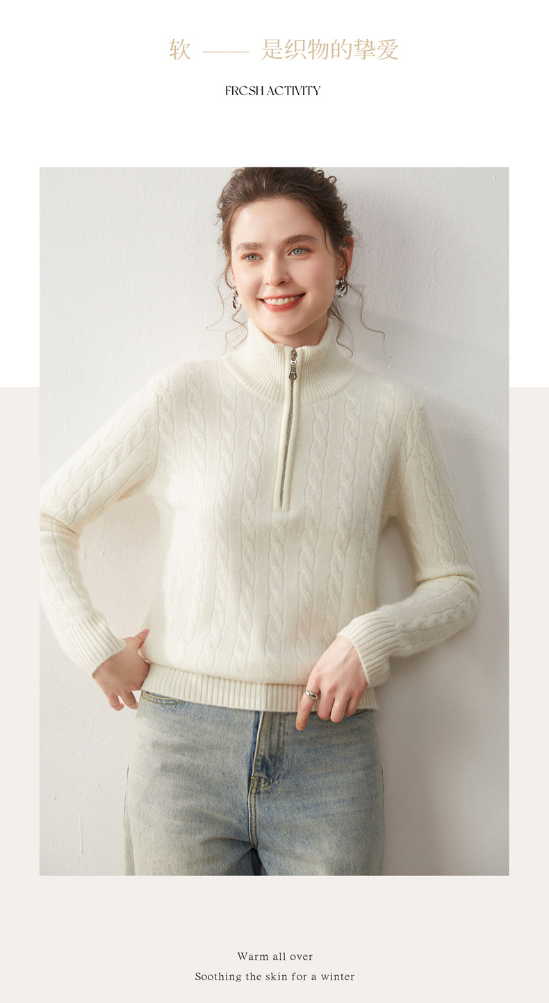 Stand-up collar half-zipper cashmere sweater women's autumn and winter pullover turtleneck twist sweater thickened wool knitted bottoming shirt outer wear