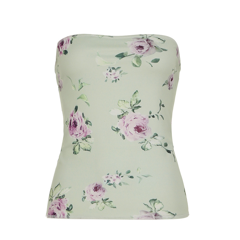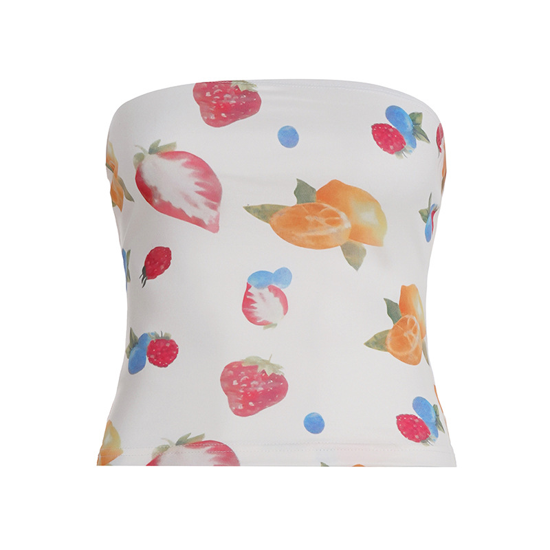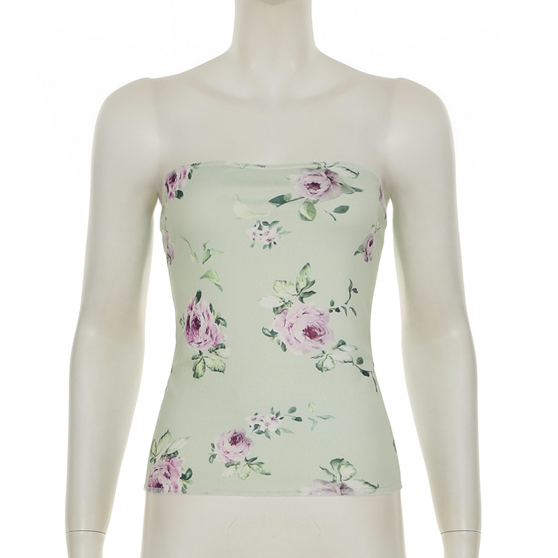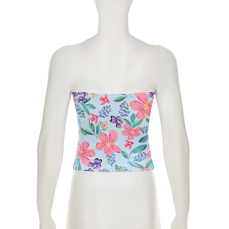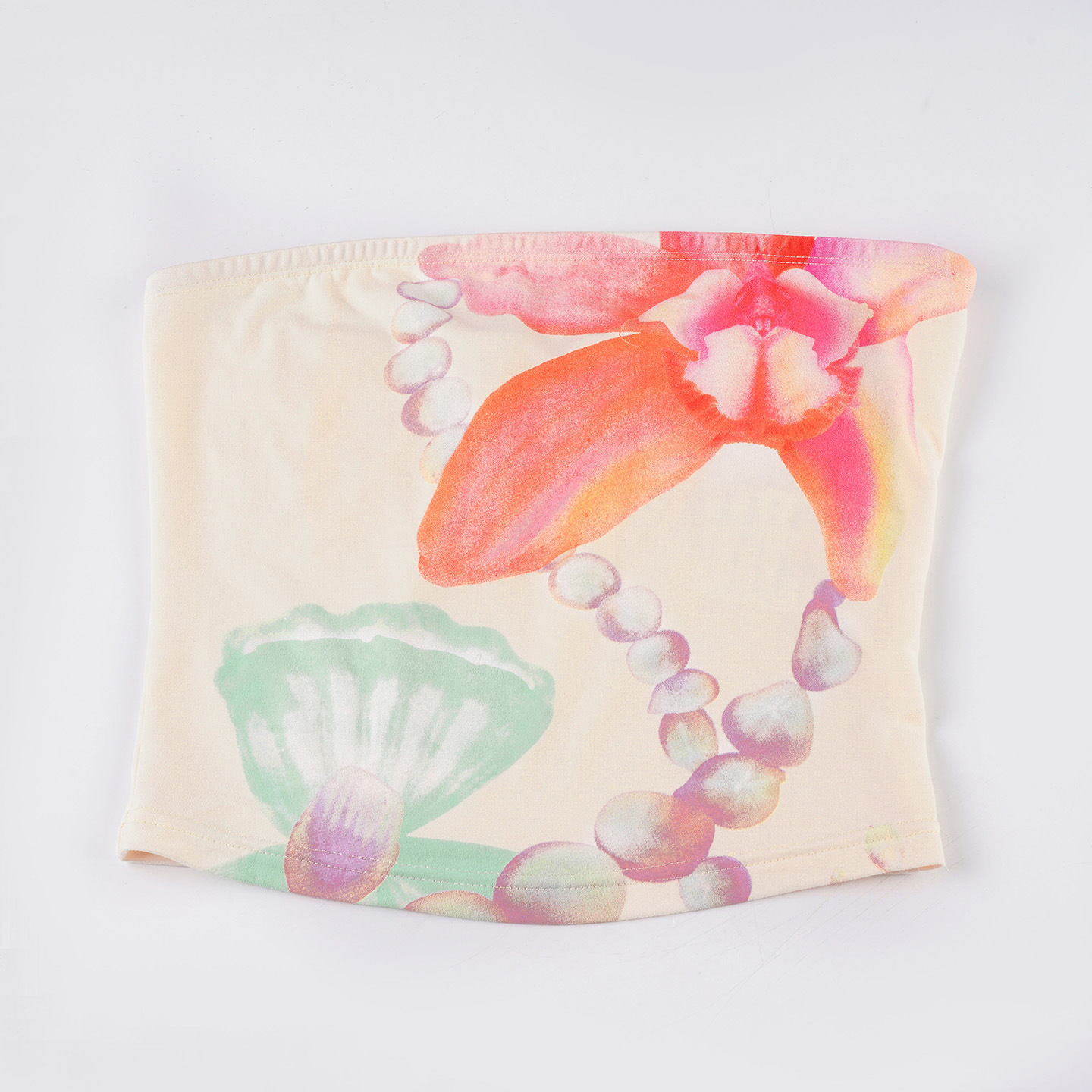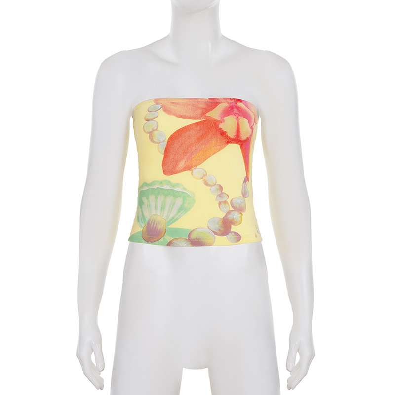 Street Vacation Wind Island Shell Print Off-Shoulder Slim-Fit Vest Hot Girl Sexy Skinny Versatile Top