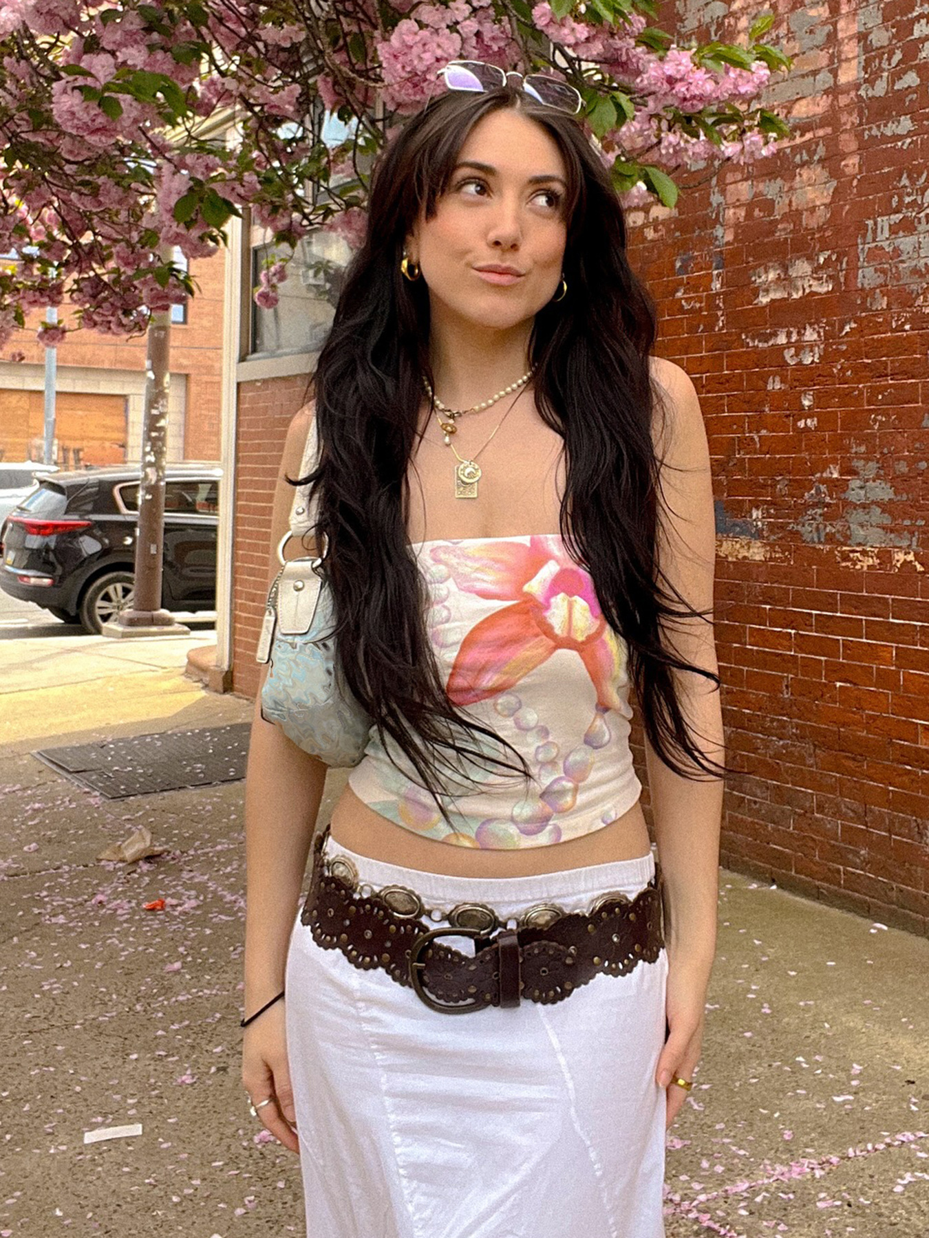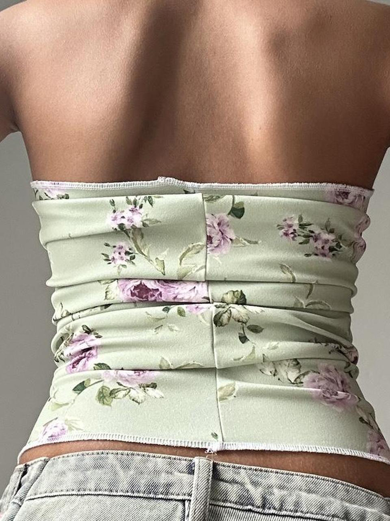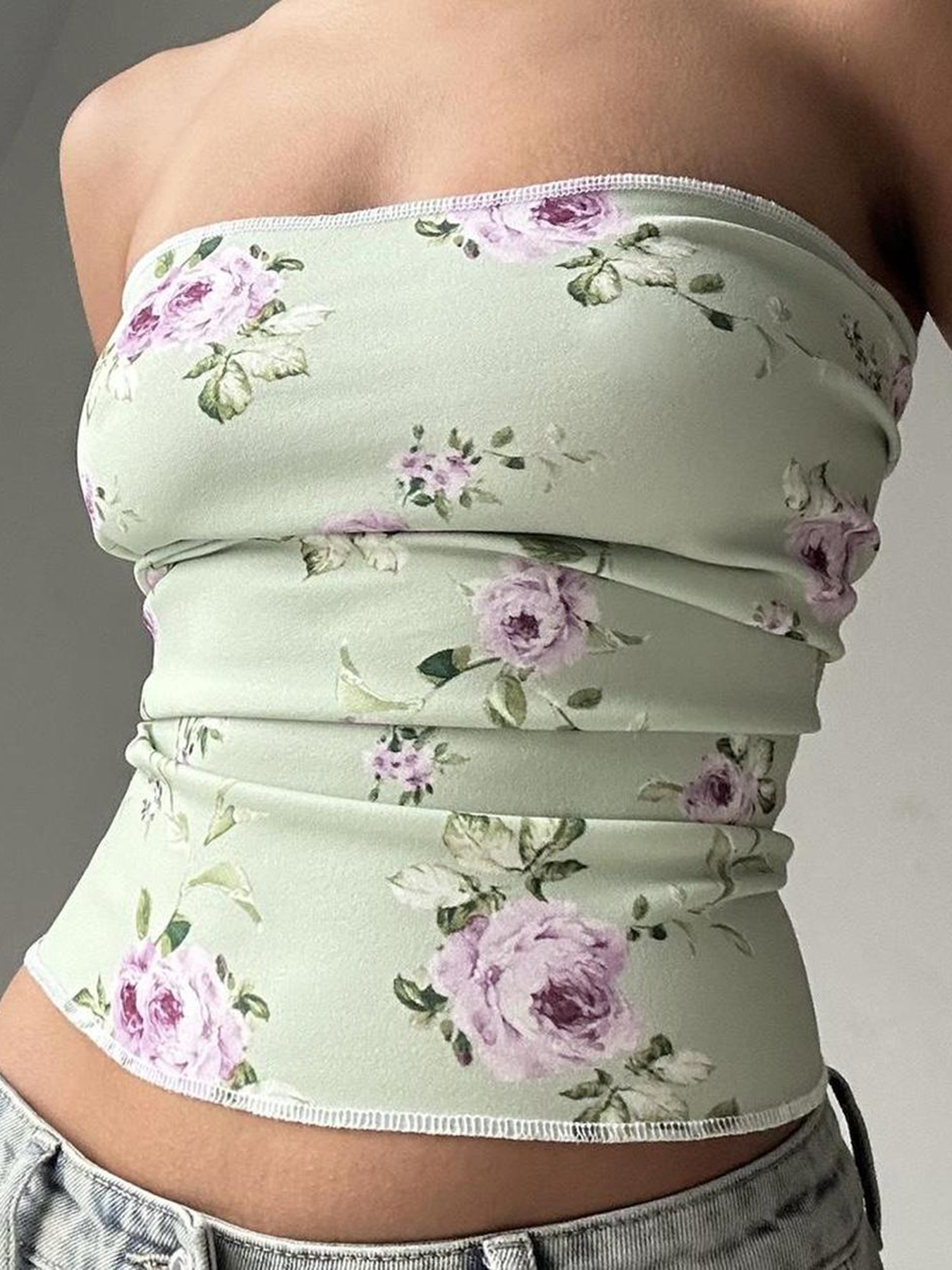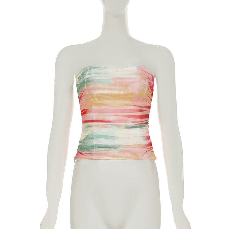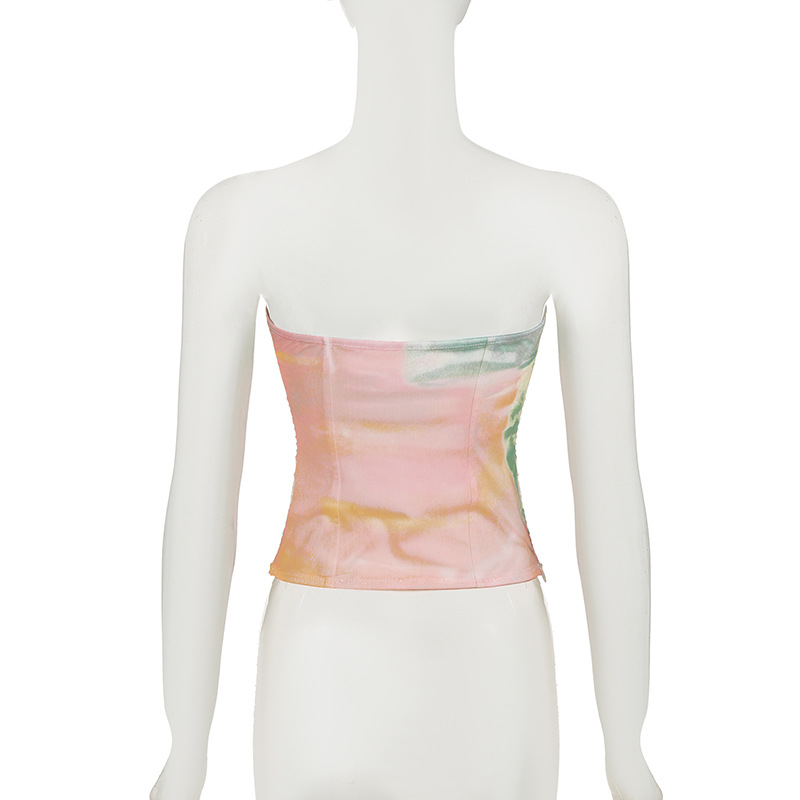 Street Vacation Wind Island Shell Print Off-Shoulder Slim-Fit Vest Hot Girl Sexy Skinny Versatile Top
