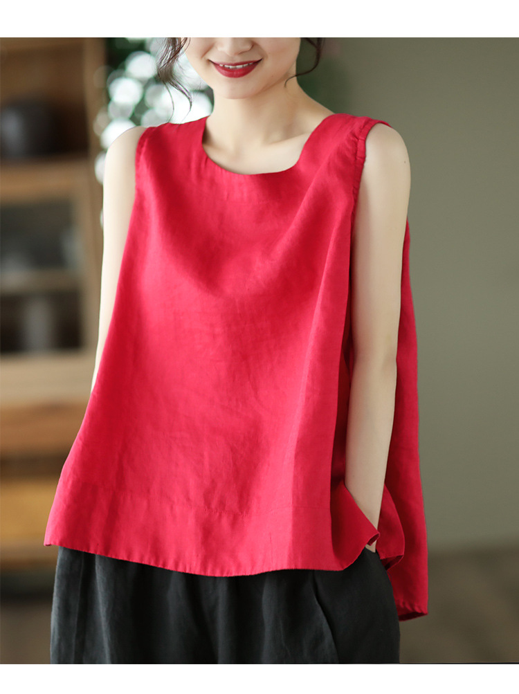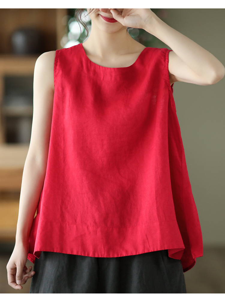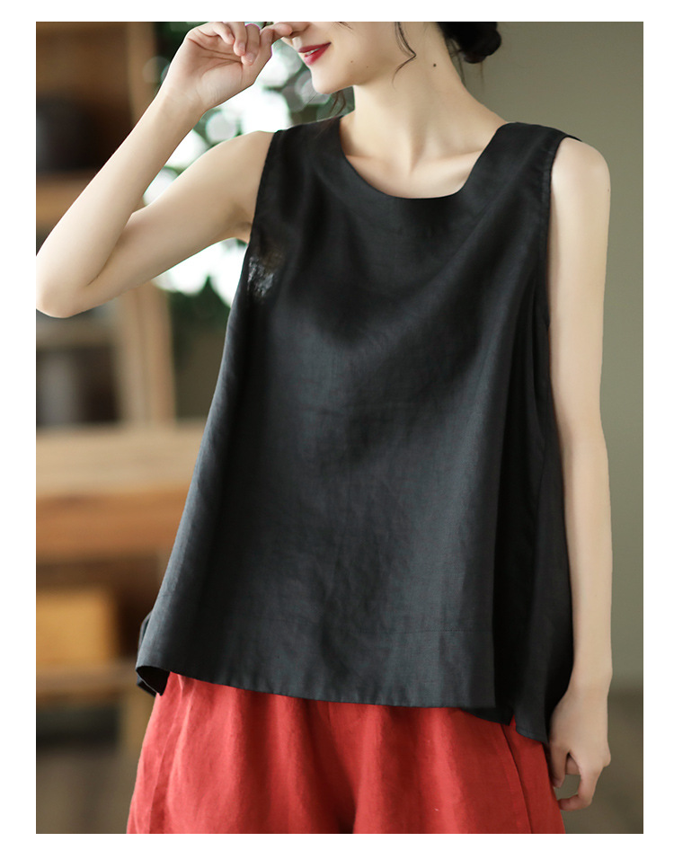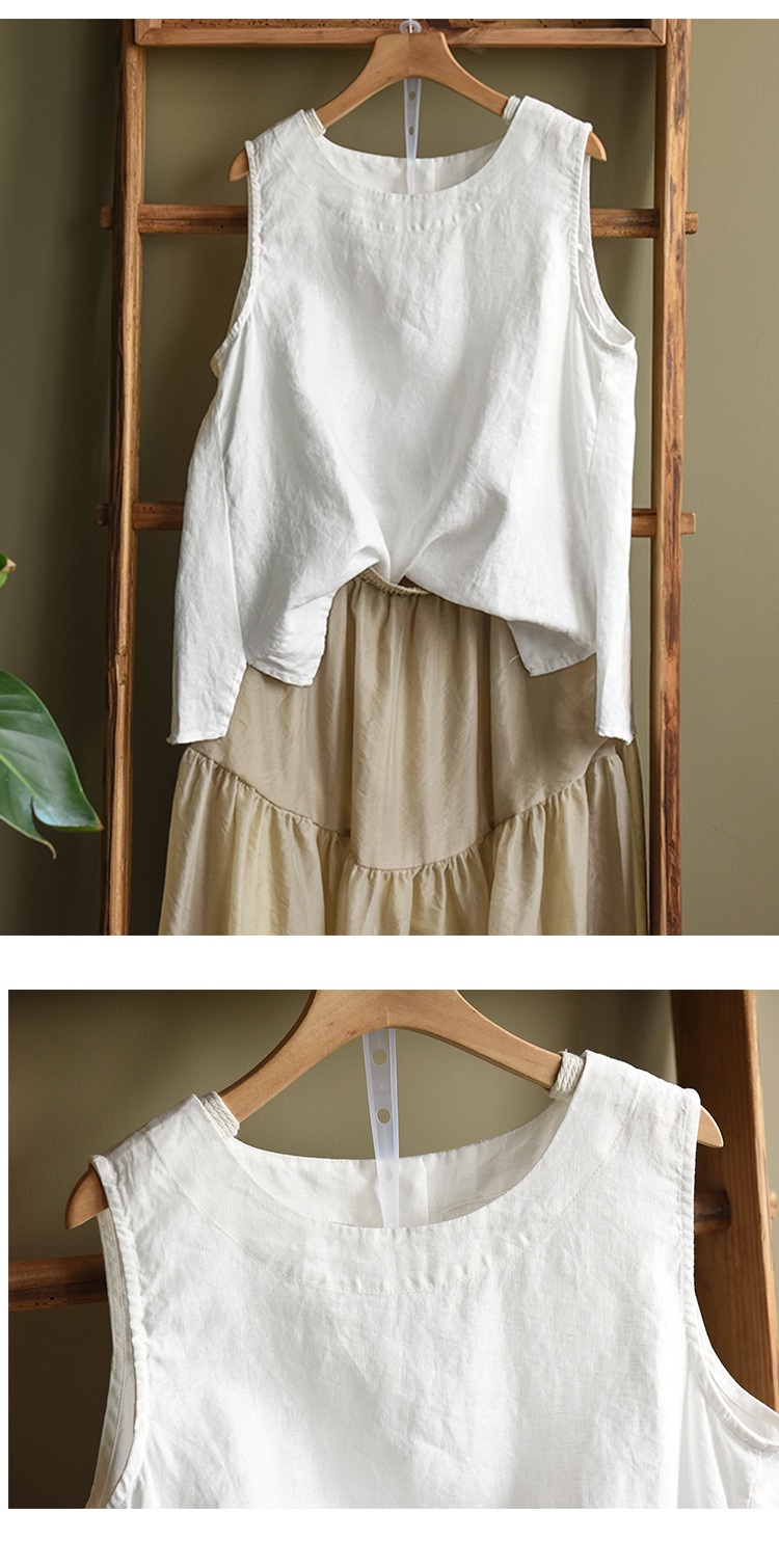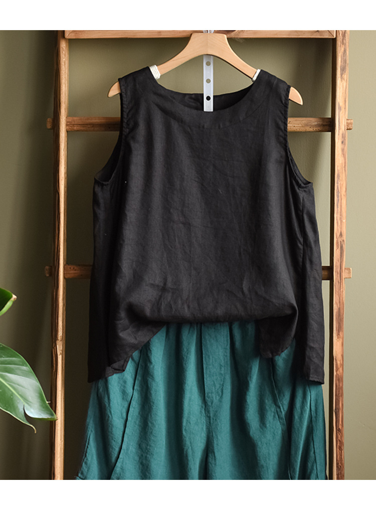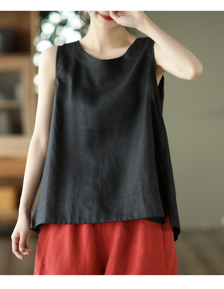 Summer 2024 New Literary Loose Solid Color Crew Neck Sleeveless Vest Women's Top #3702