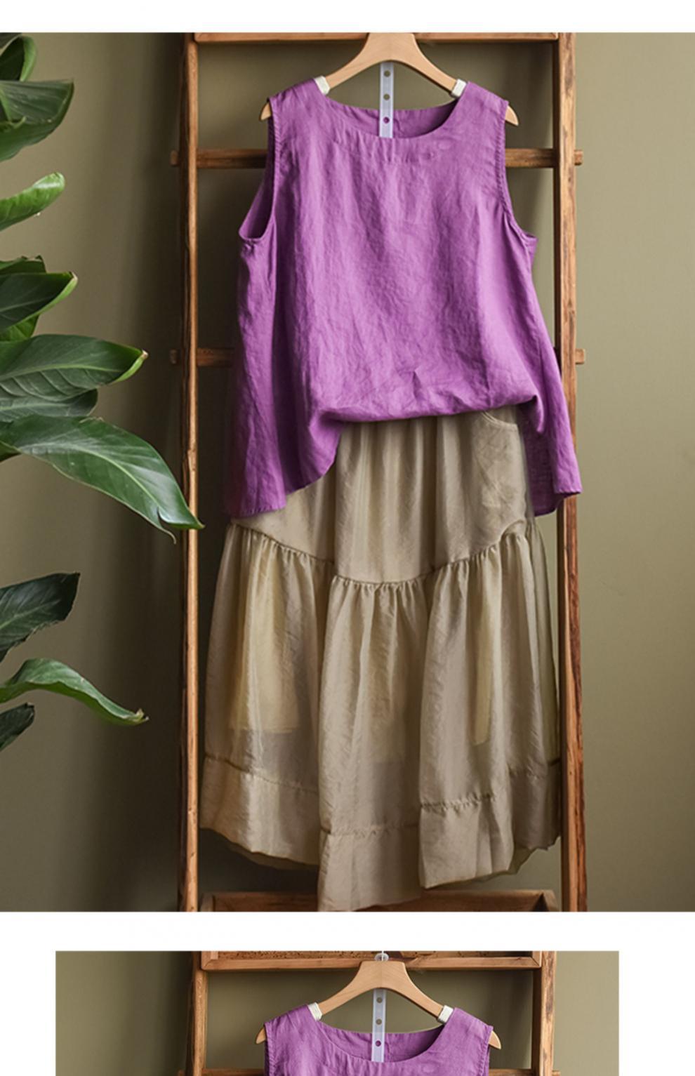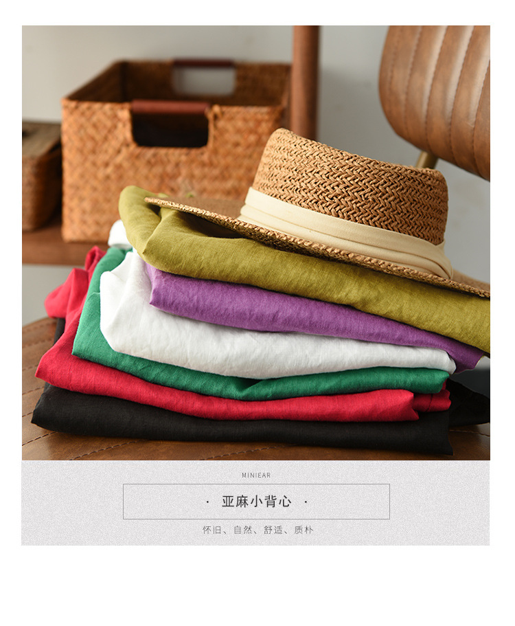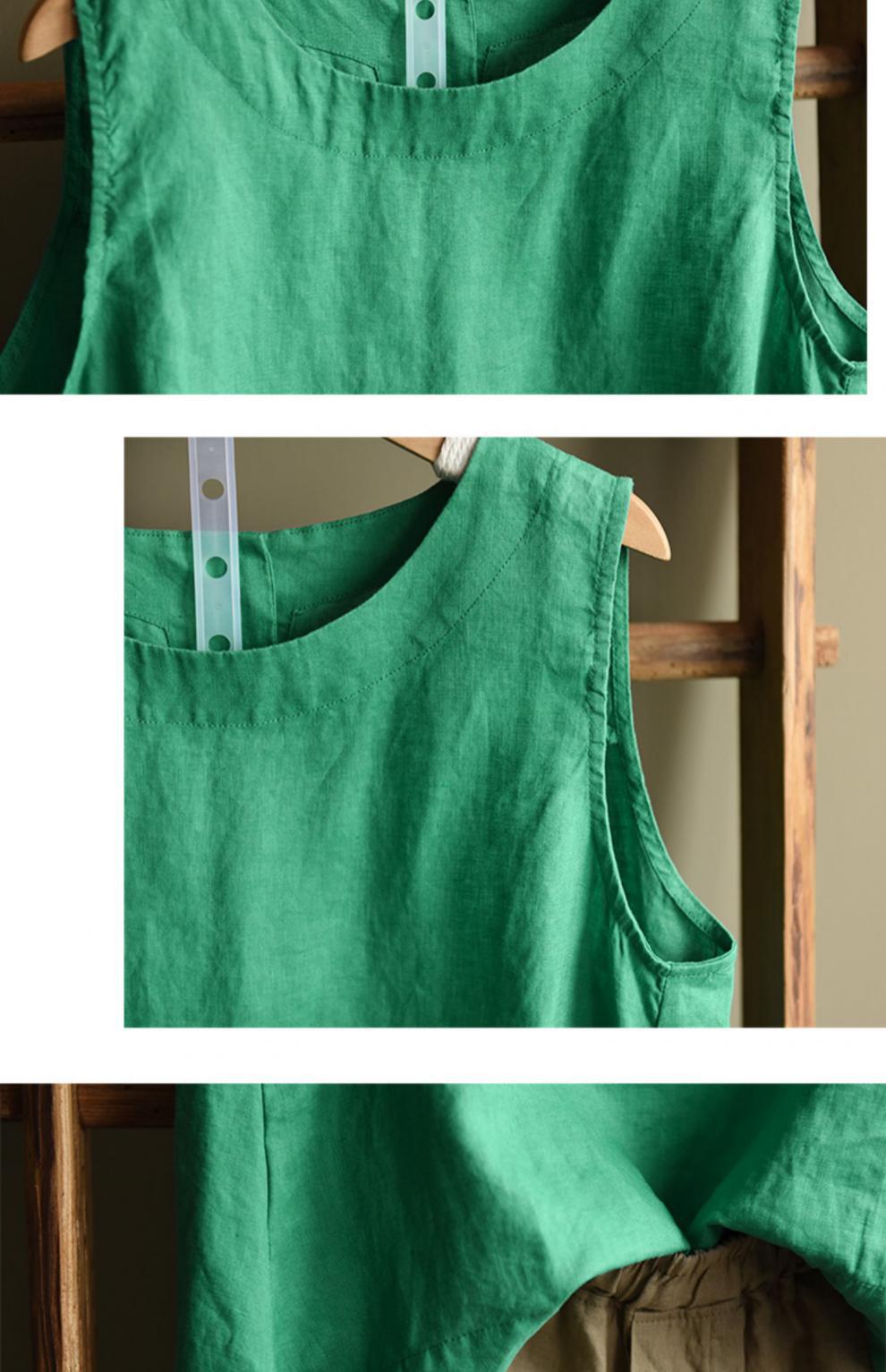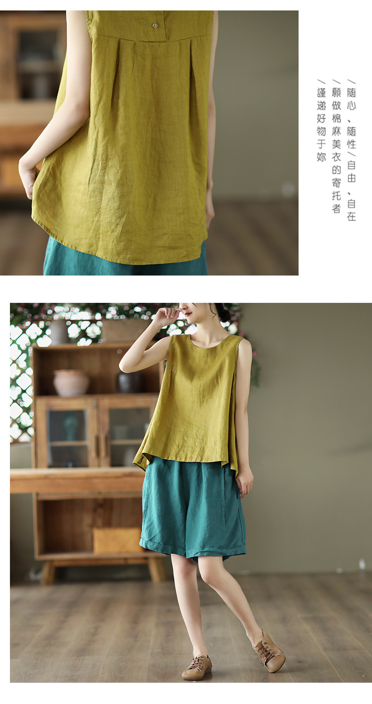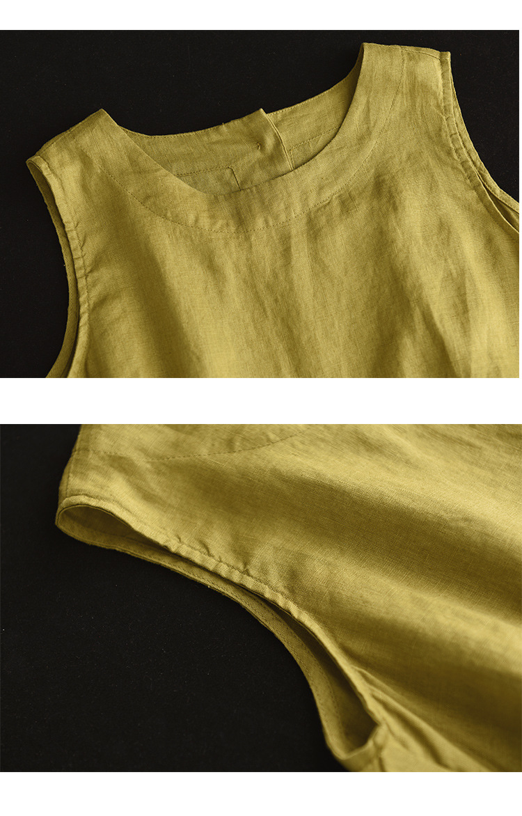Summer 2024 New Literary Loose Solid Color Crew Neck Sleeveless Vest Women's Top #3702
