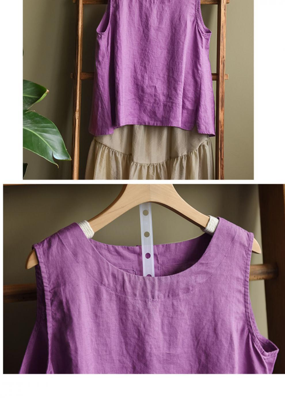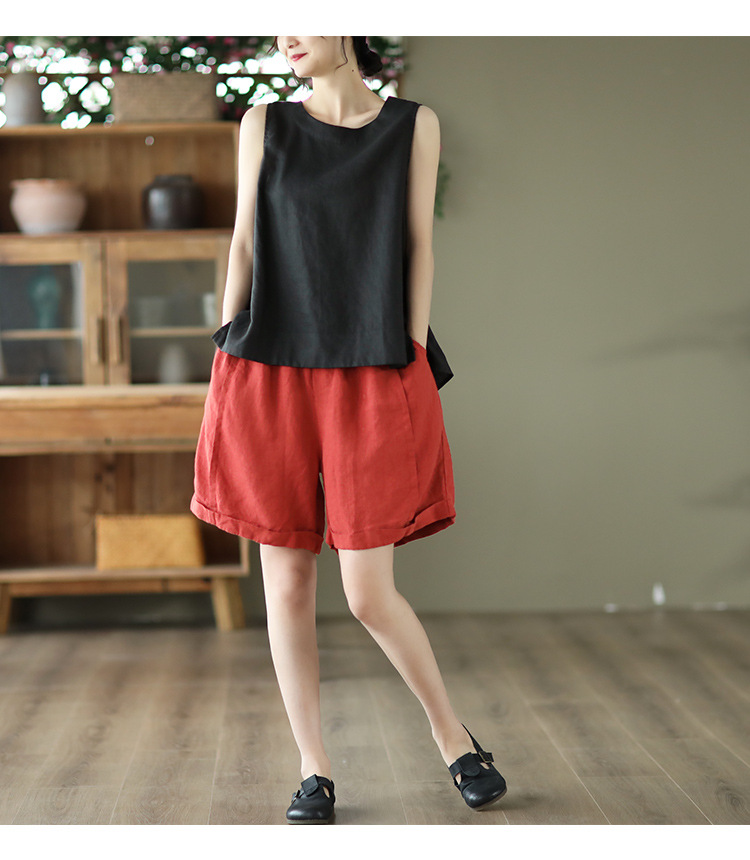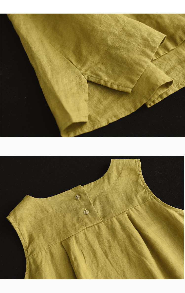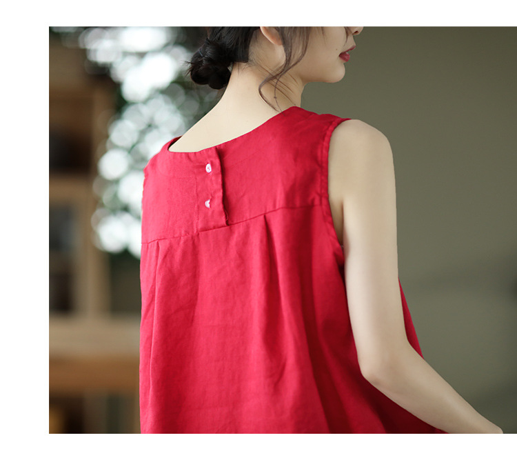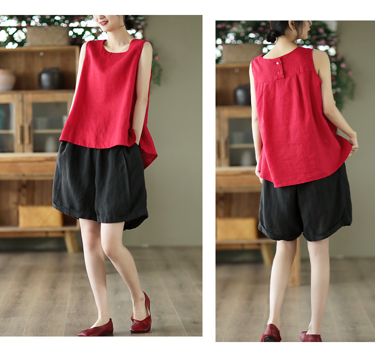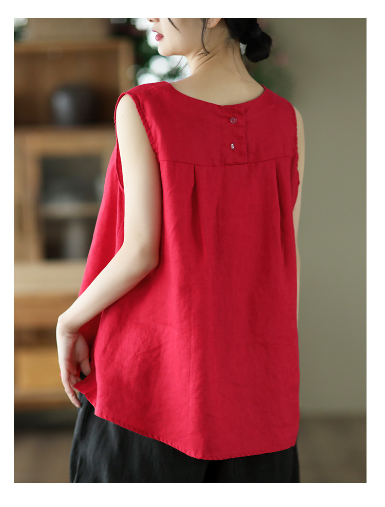 Summer 2024 New Literary Loose Solid Color Crew Neck Sleeveless Vest Women's Top #3702