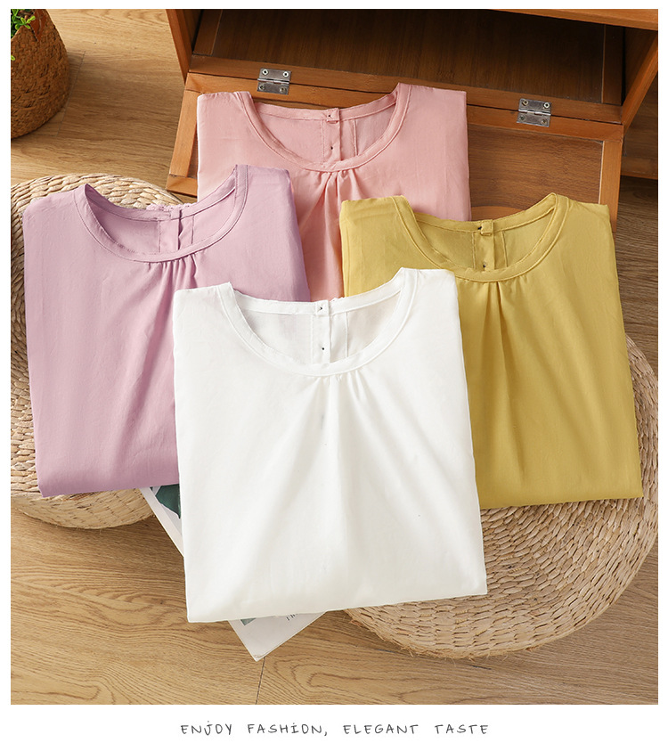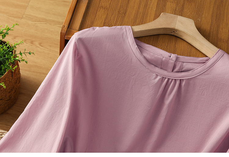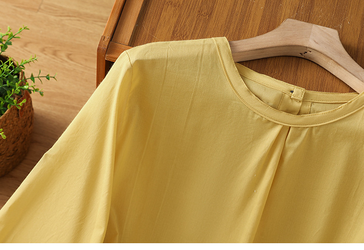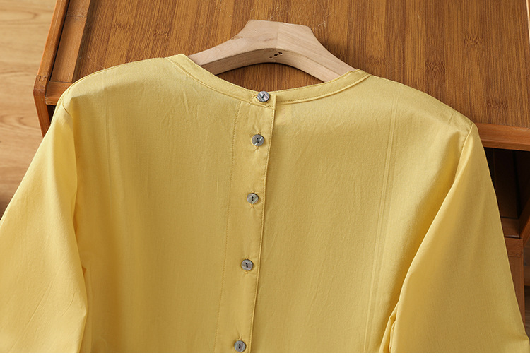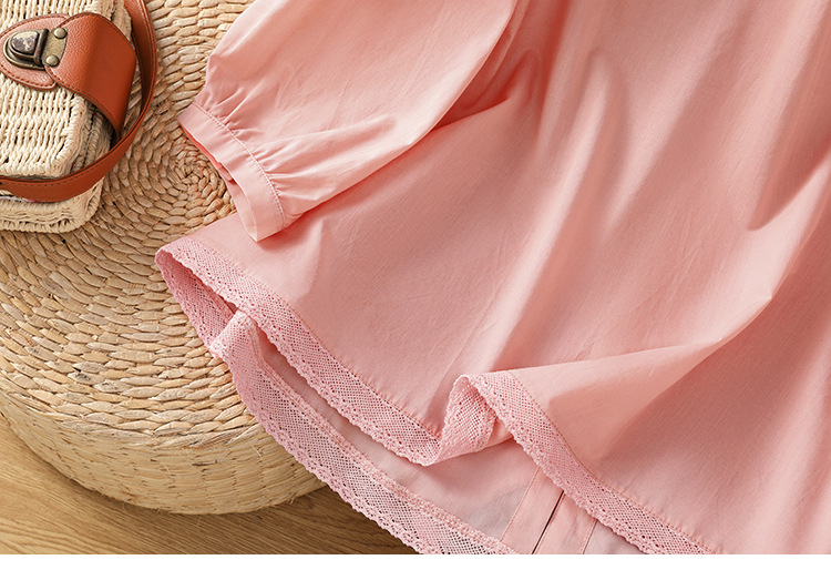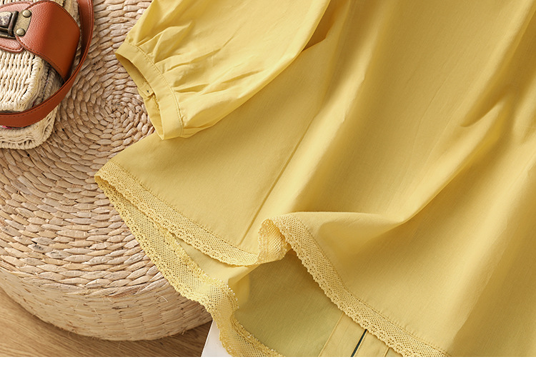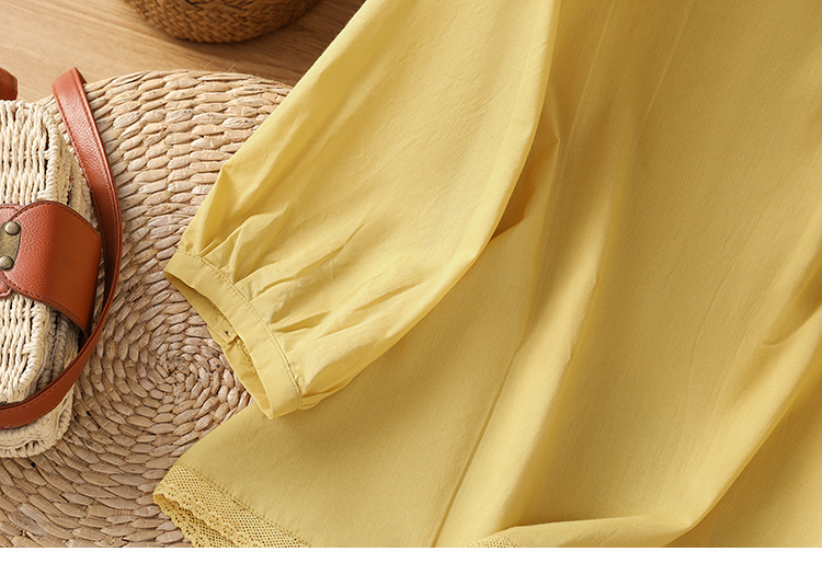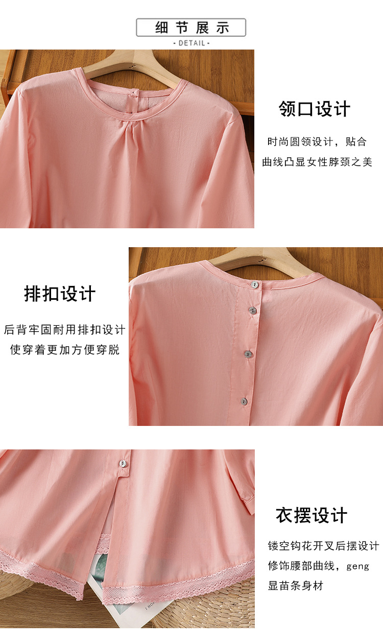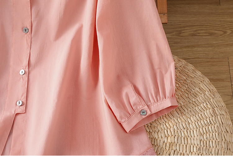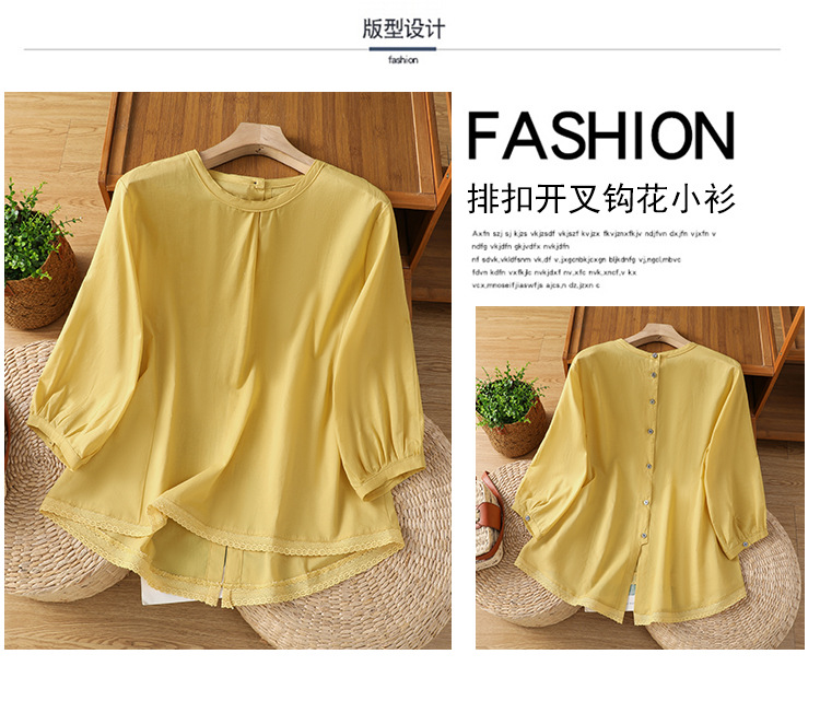 Summer 2025 new cotton and linen literary and retro splicing lace hem shirt top women