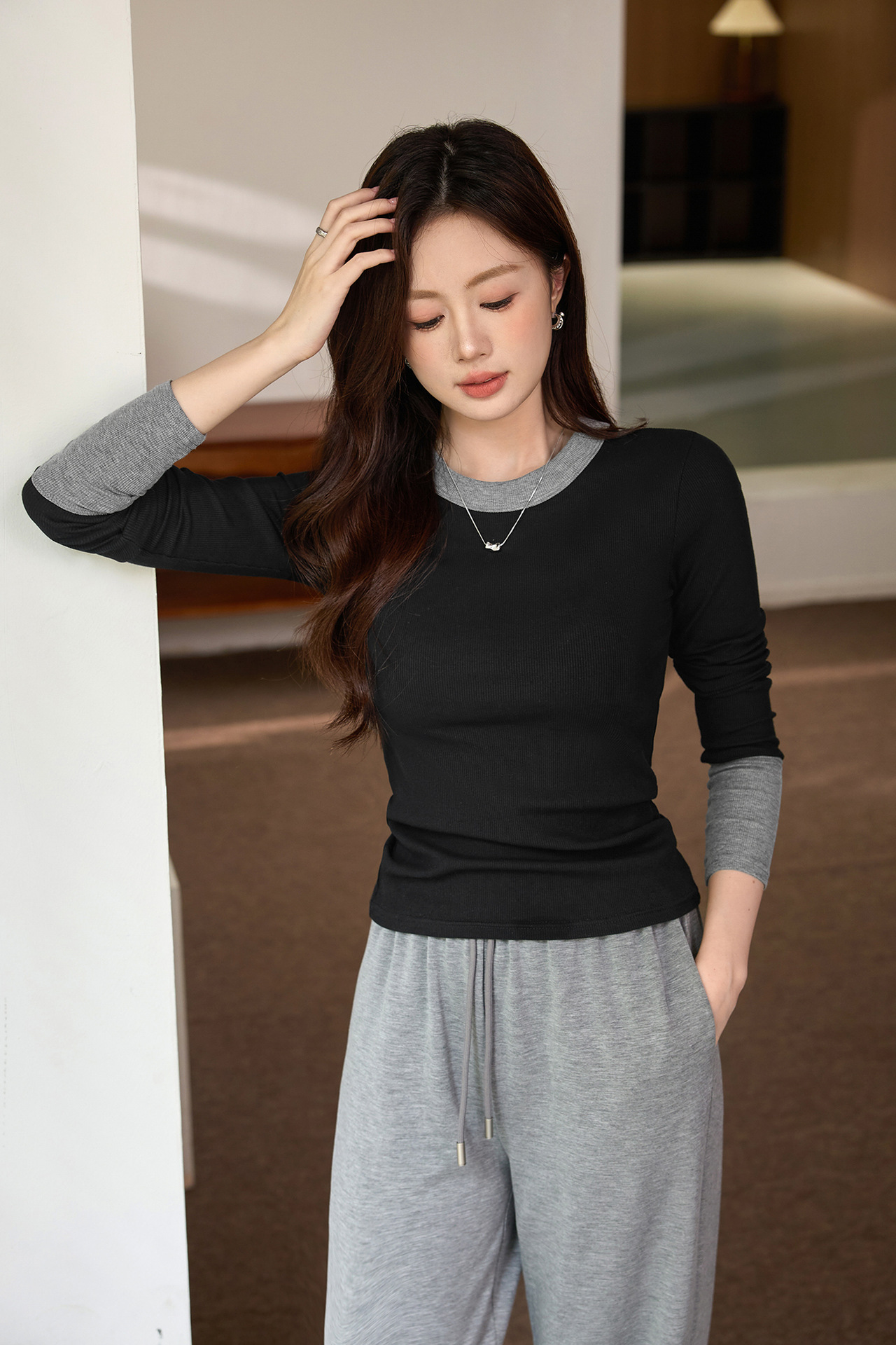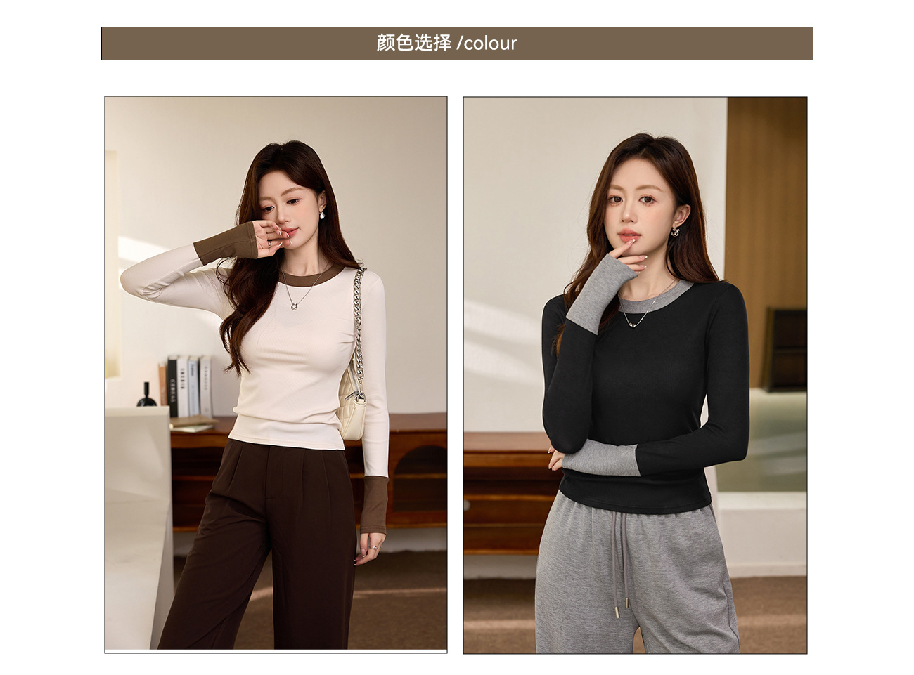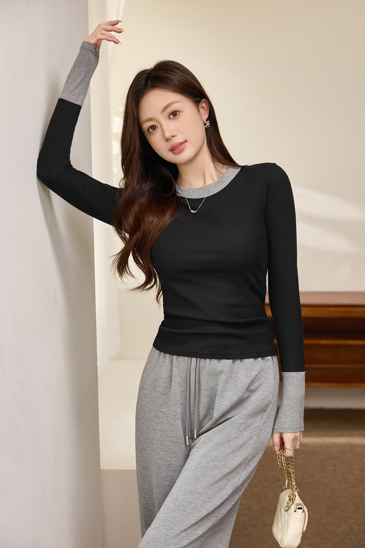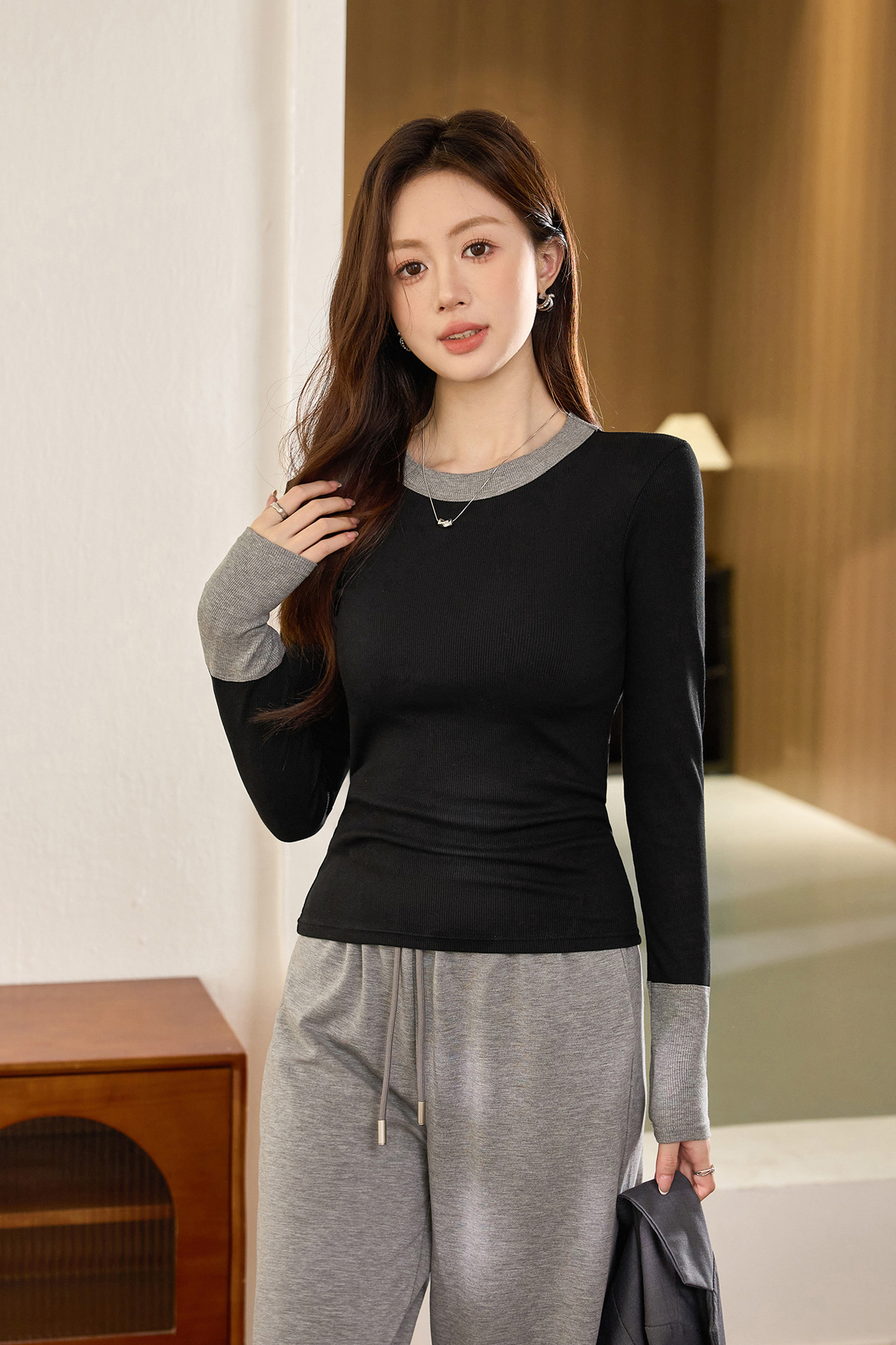 #Superior choice #High-end design foreign-style contrasting T-shirt women's long-sleeved 2026 autumn new pure cotton bottoming shirt