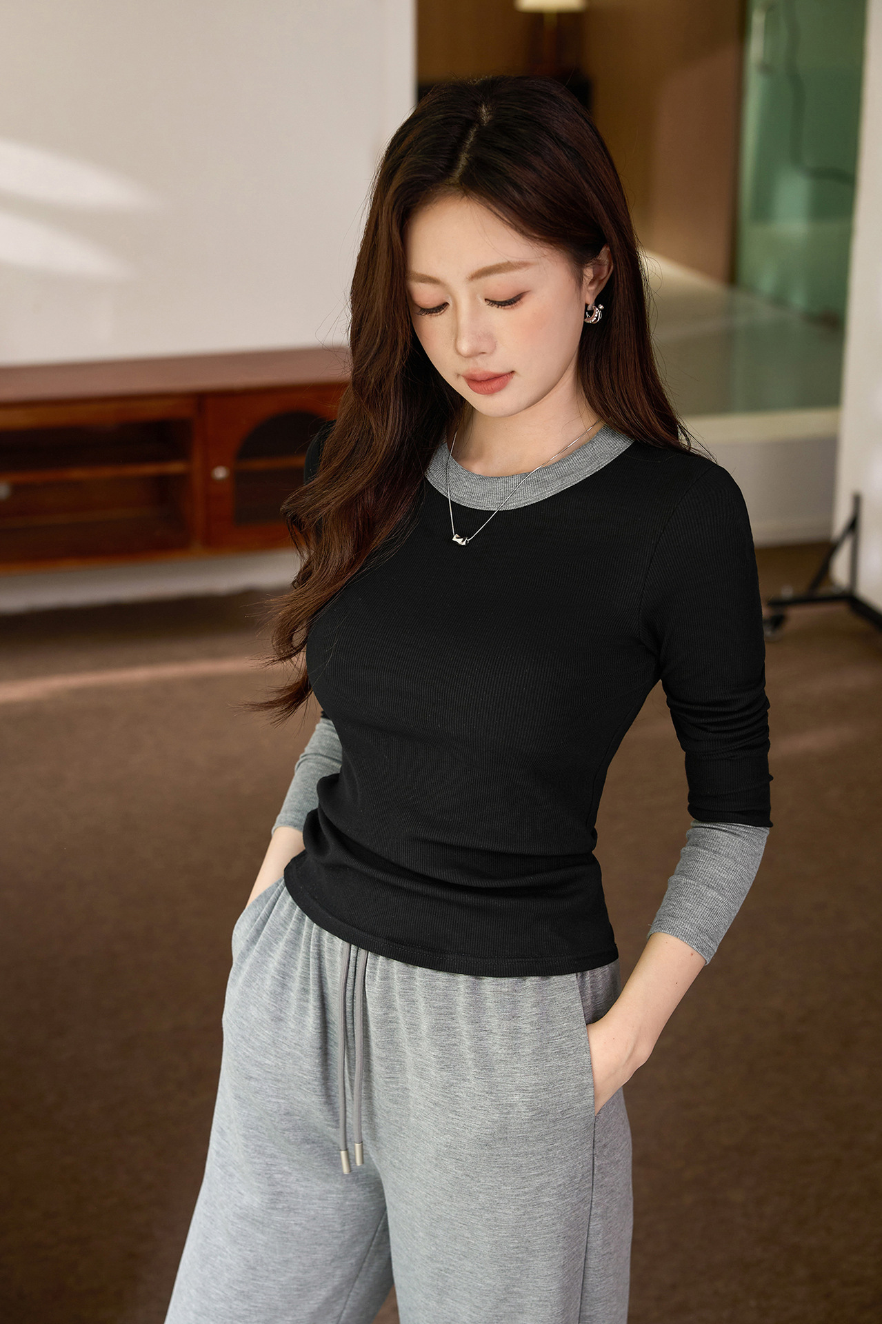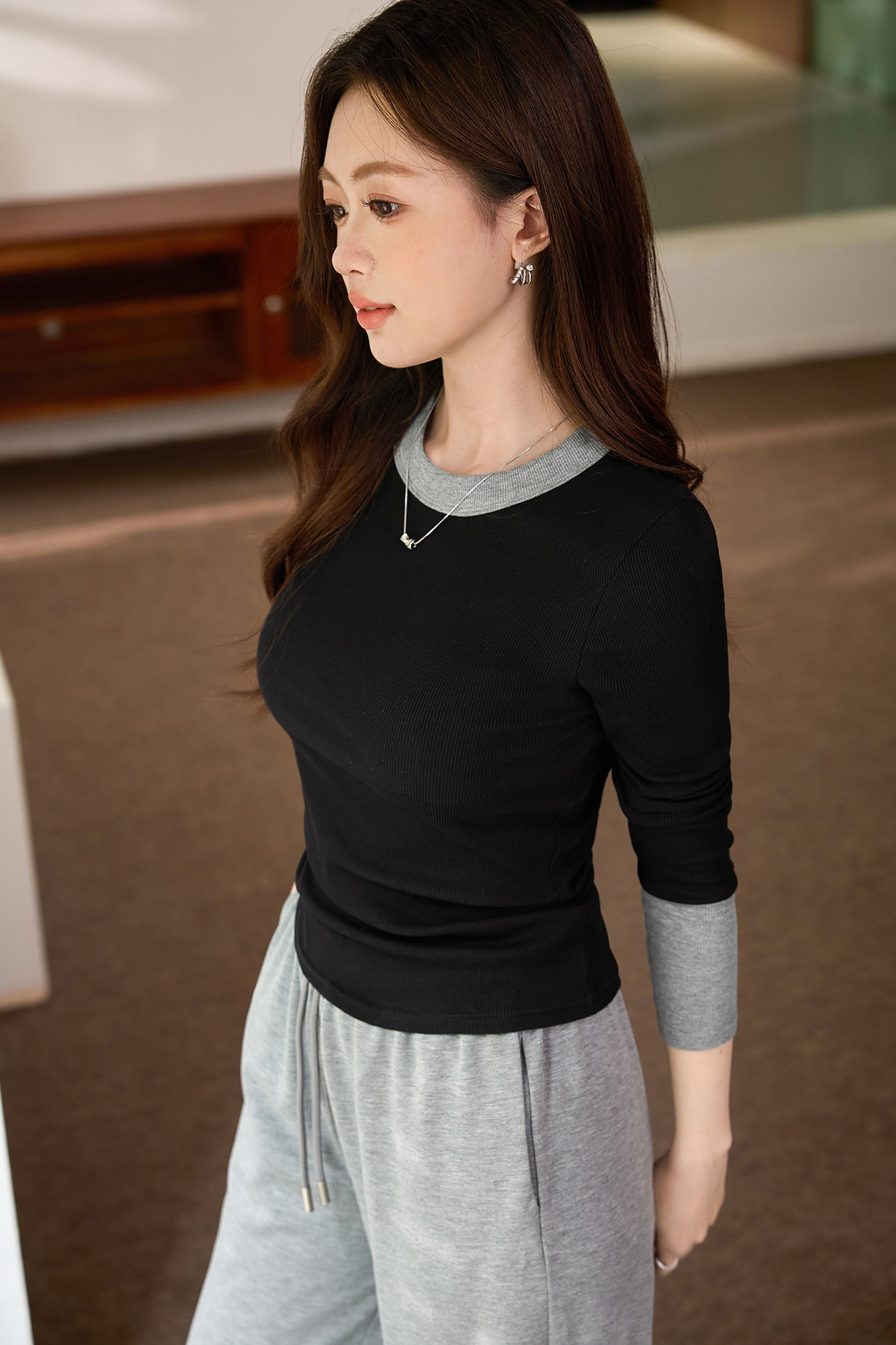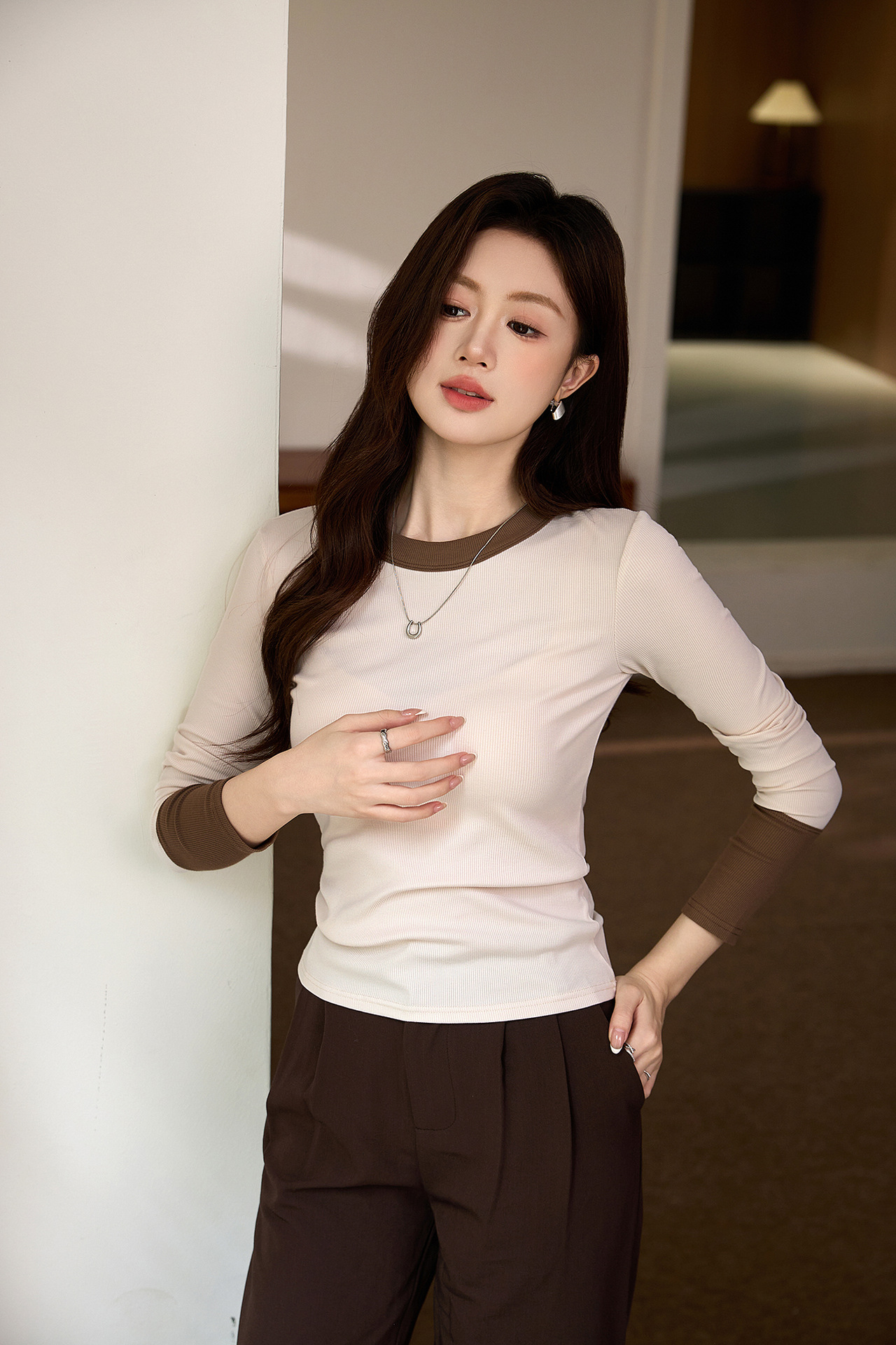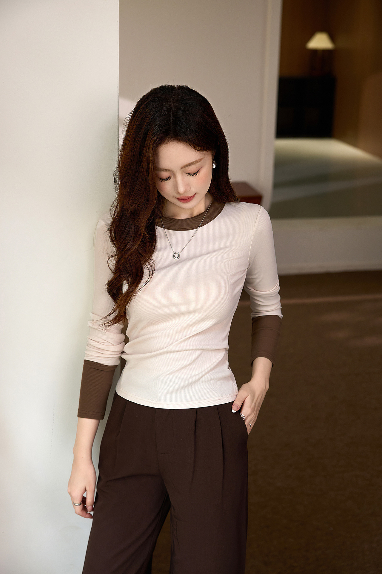 #Superior choice #High-end design foreign-style contrasting T-shirt women's long-sleeved 2026 autumn new pure cotton bottoming shirt