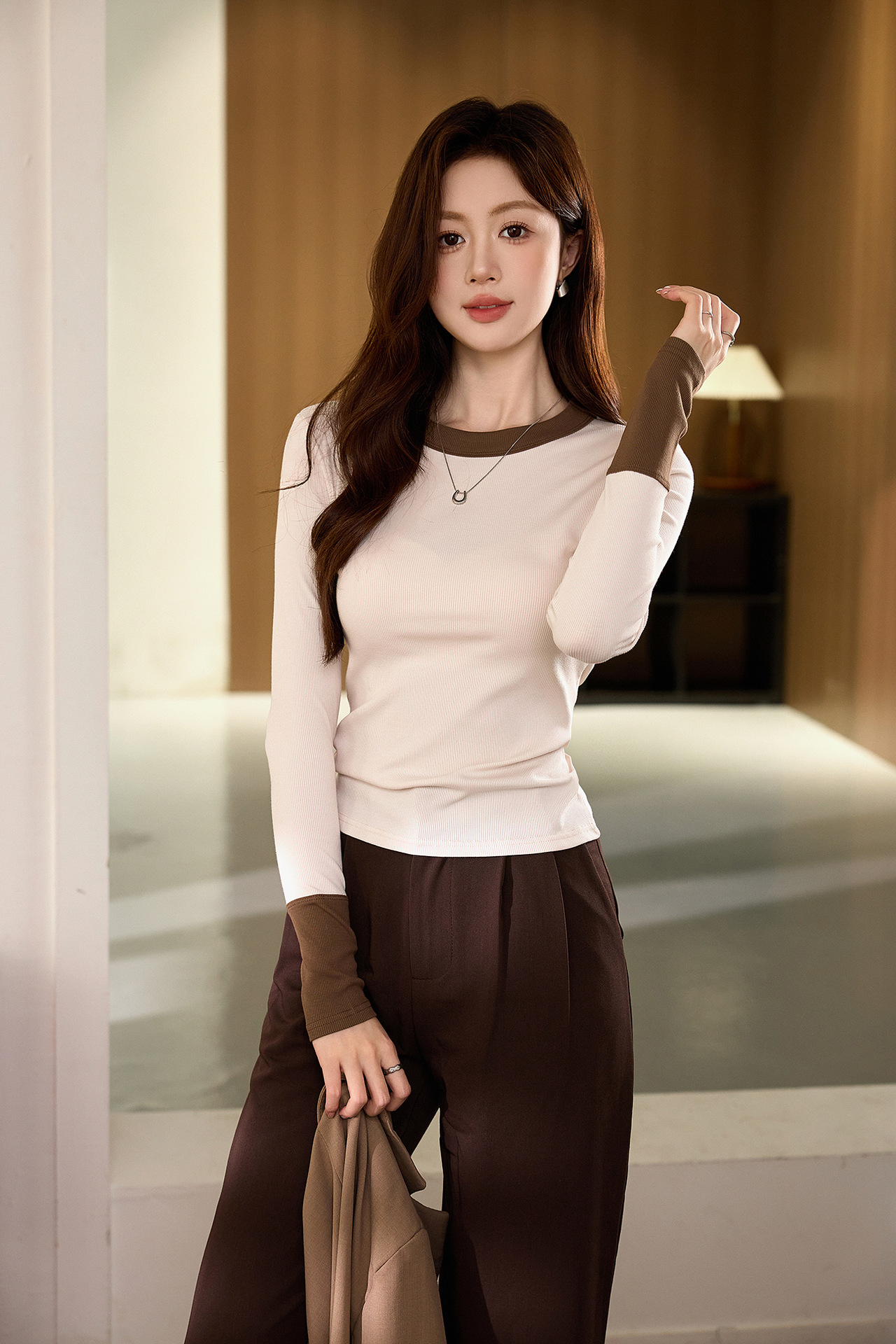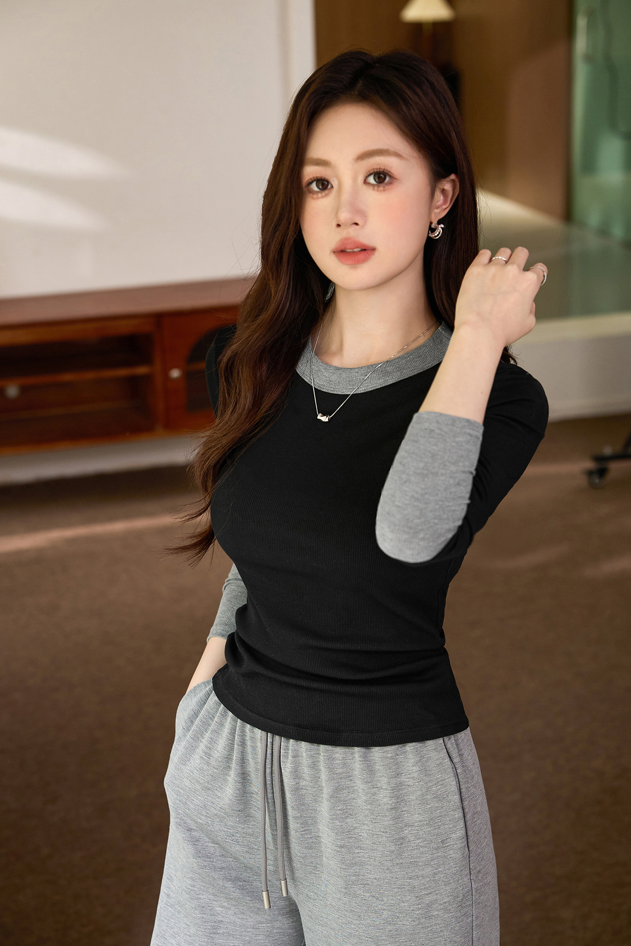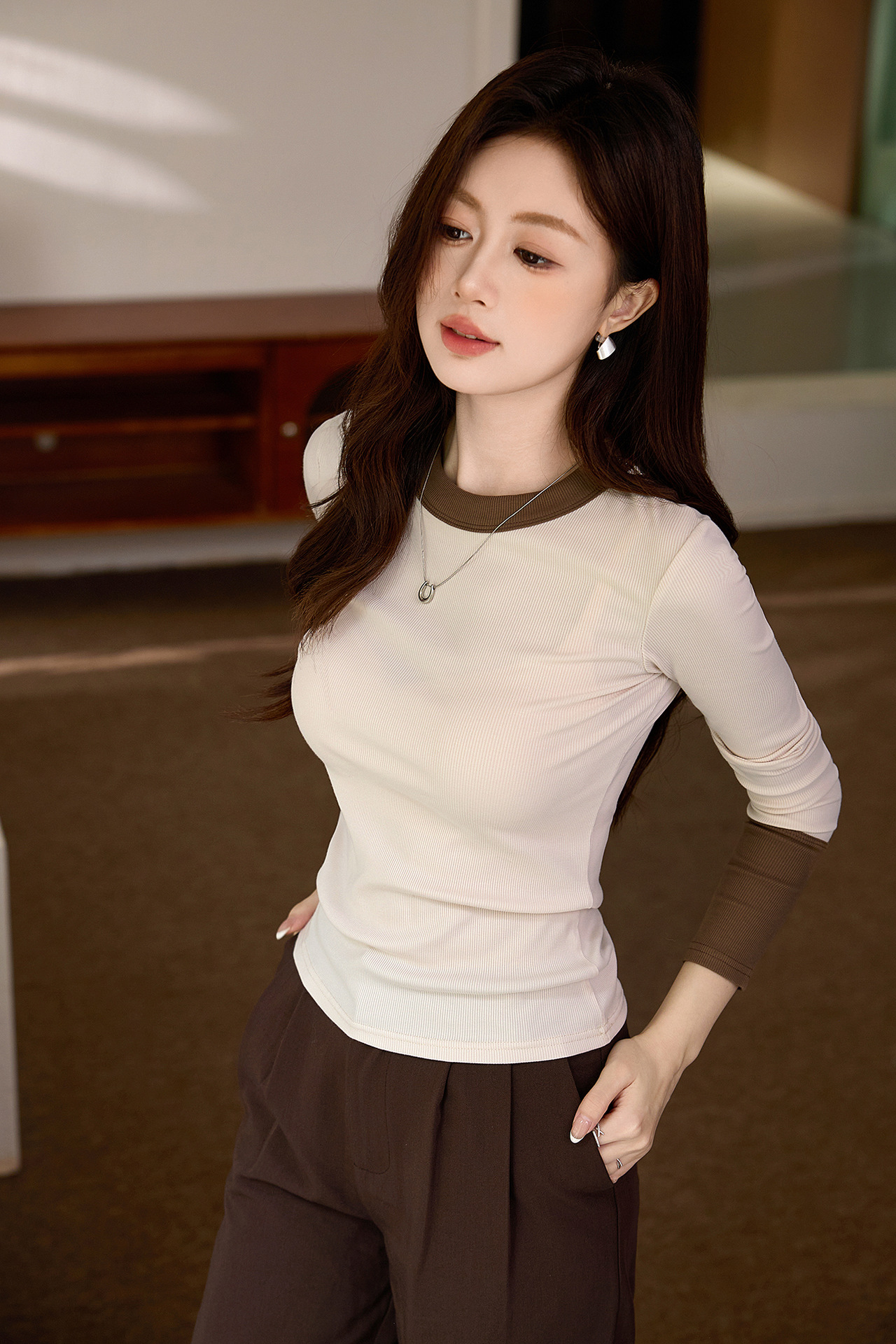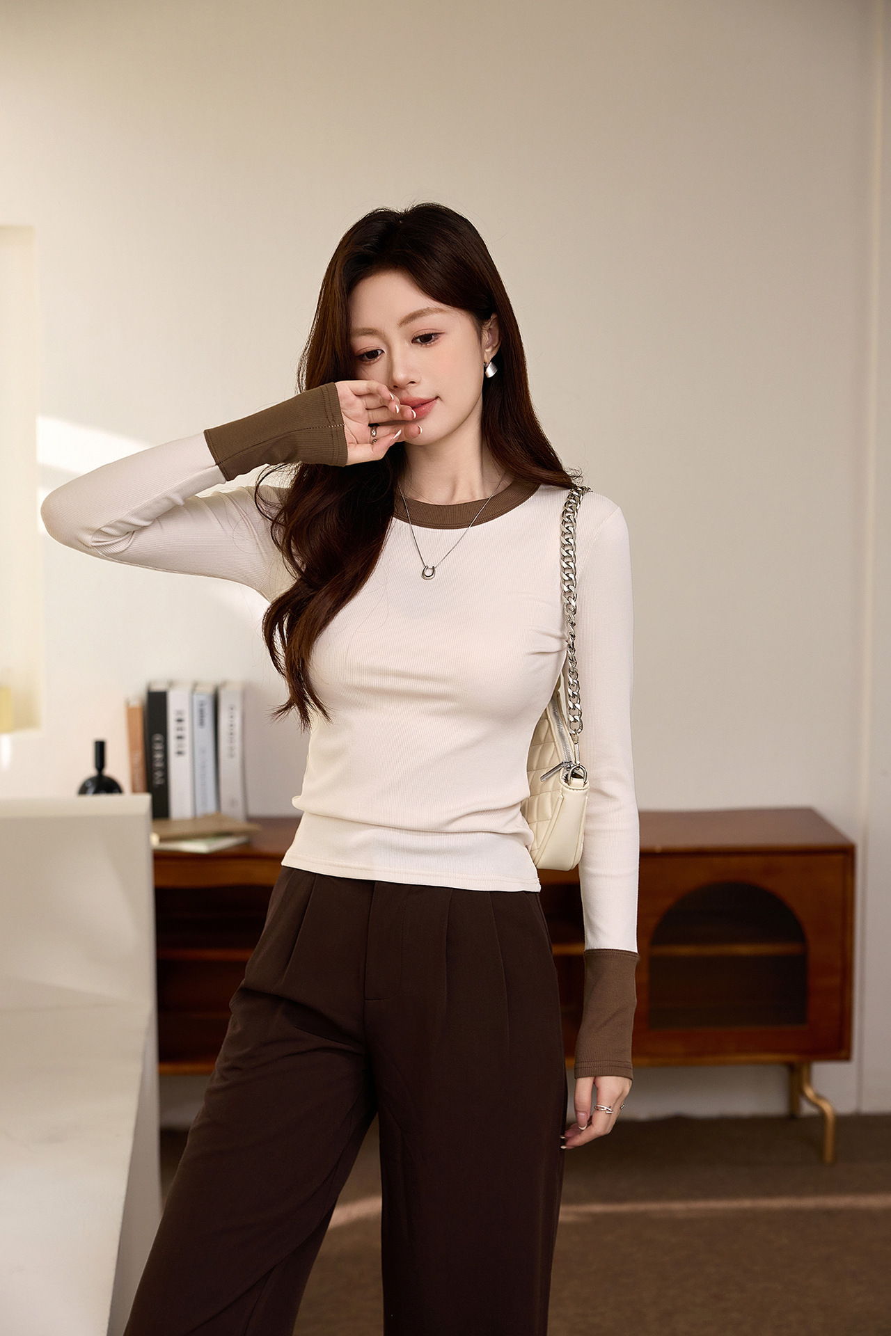 #Superior choice #High-end design foreign-style contrasting T-shirt women's long-sleeved 2026 autumn new pure cotton bottoming shirt