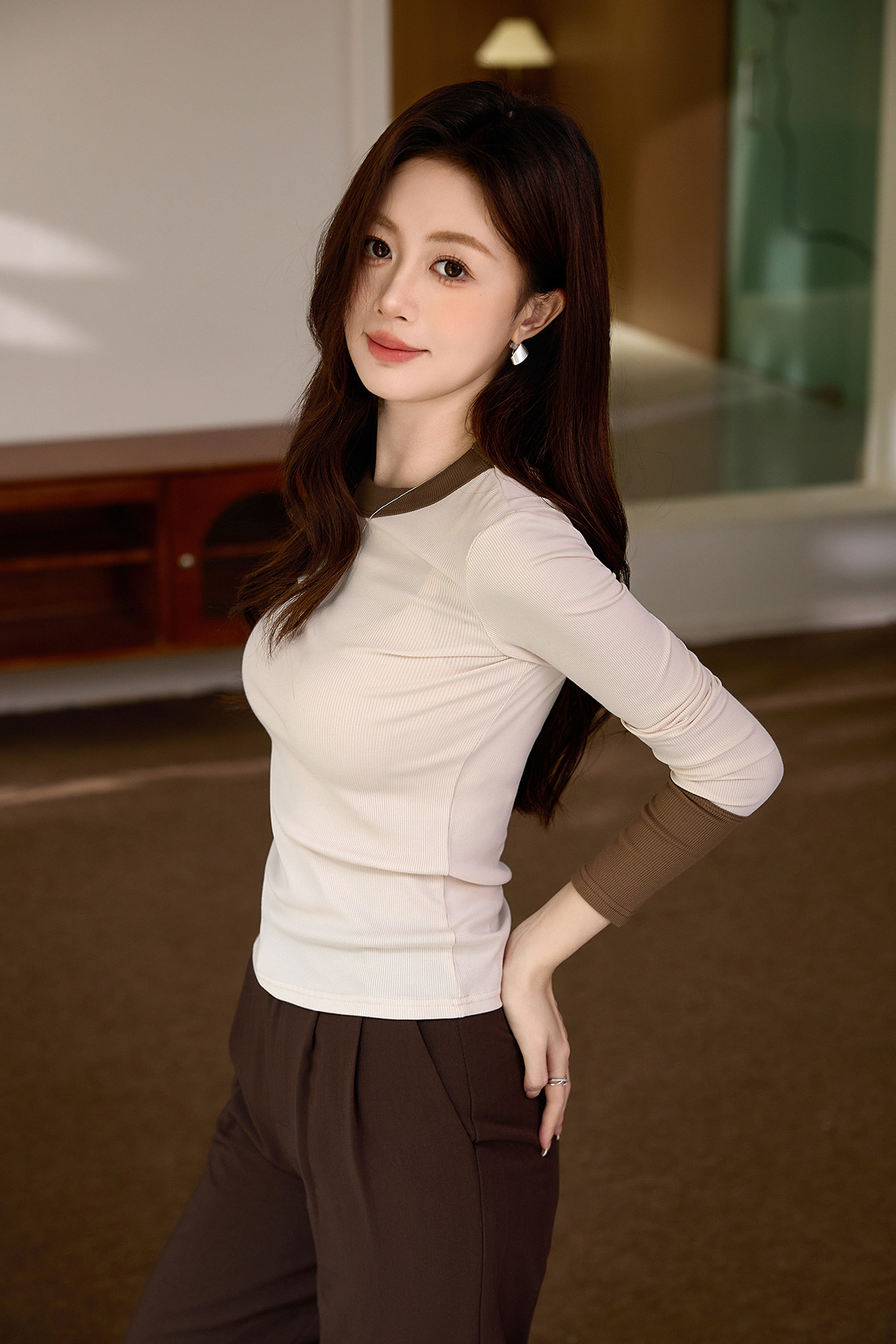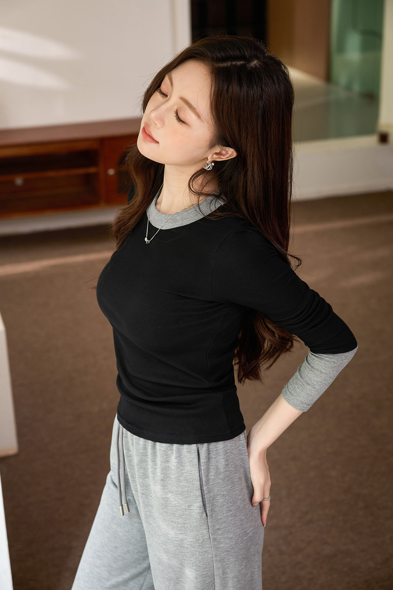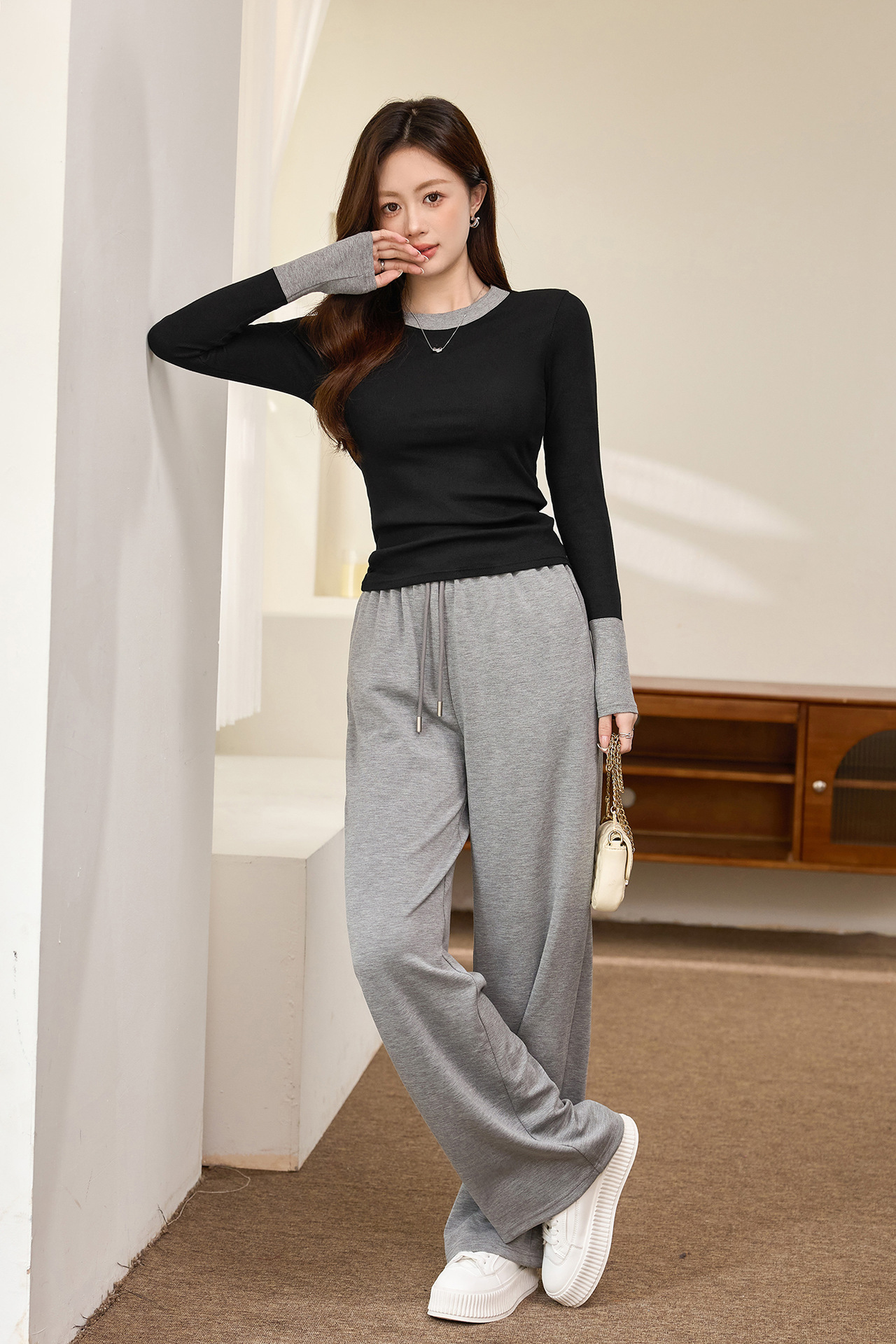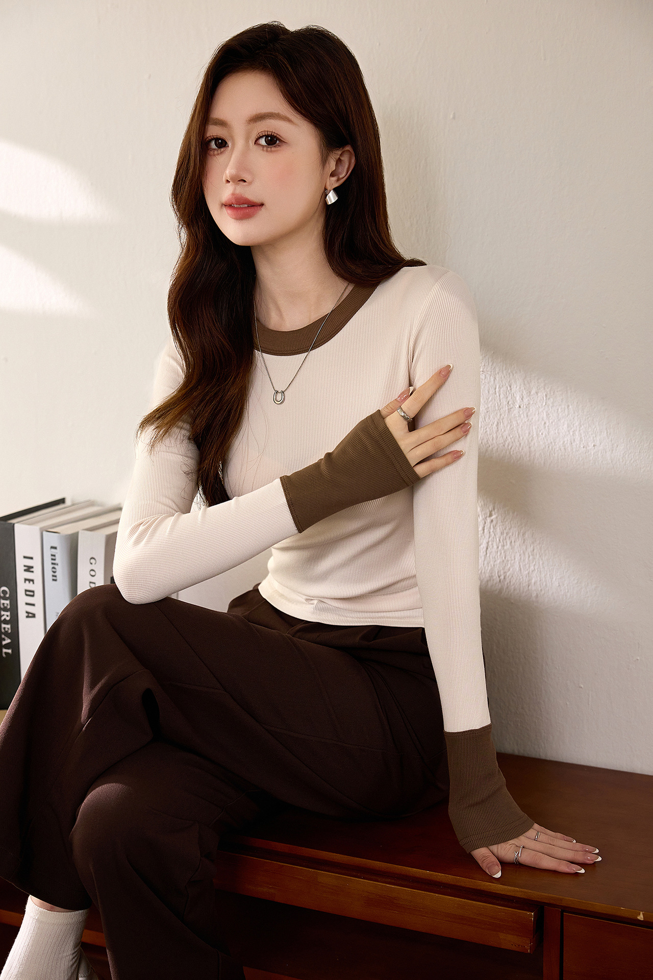 #Superior choice #High-end design foreign-style contrasting T-shirt women's long-sleeved 2026 autumn new pure cotton bottoming shirt