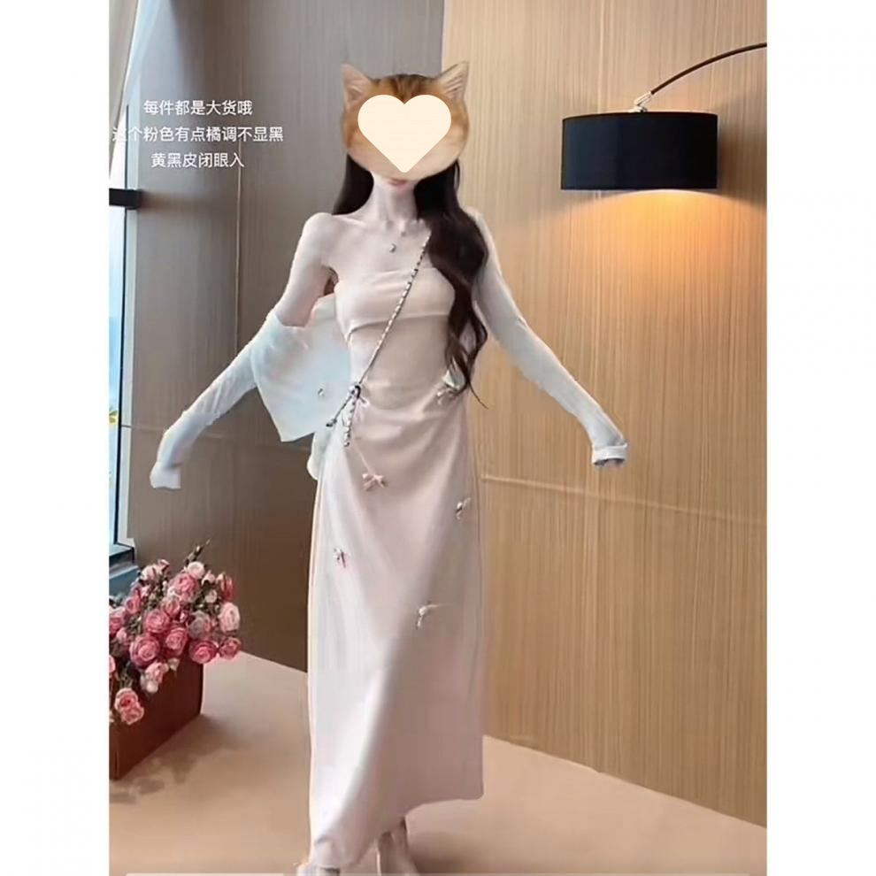 Sweet and cool pink three-dimensional bow suspender tube top dress women's spring and summer spice girls close waist and look thin skirt tide