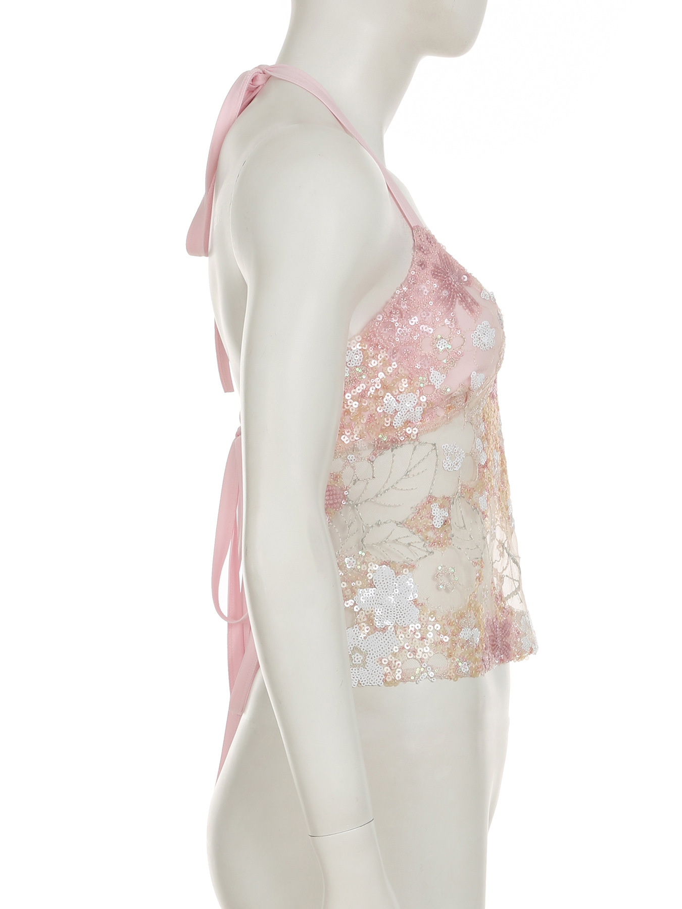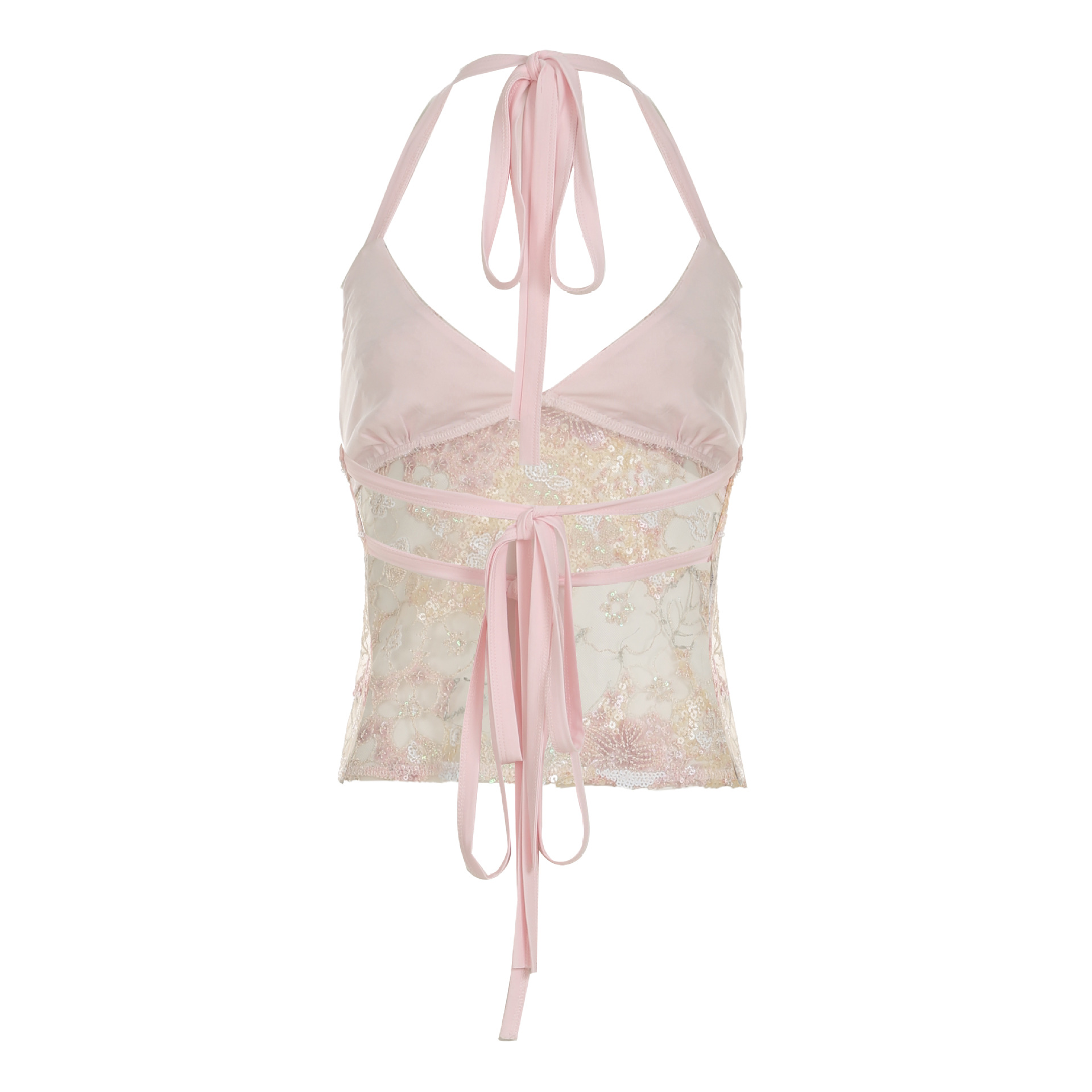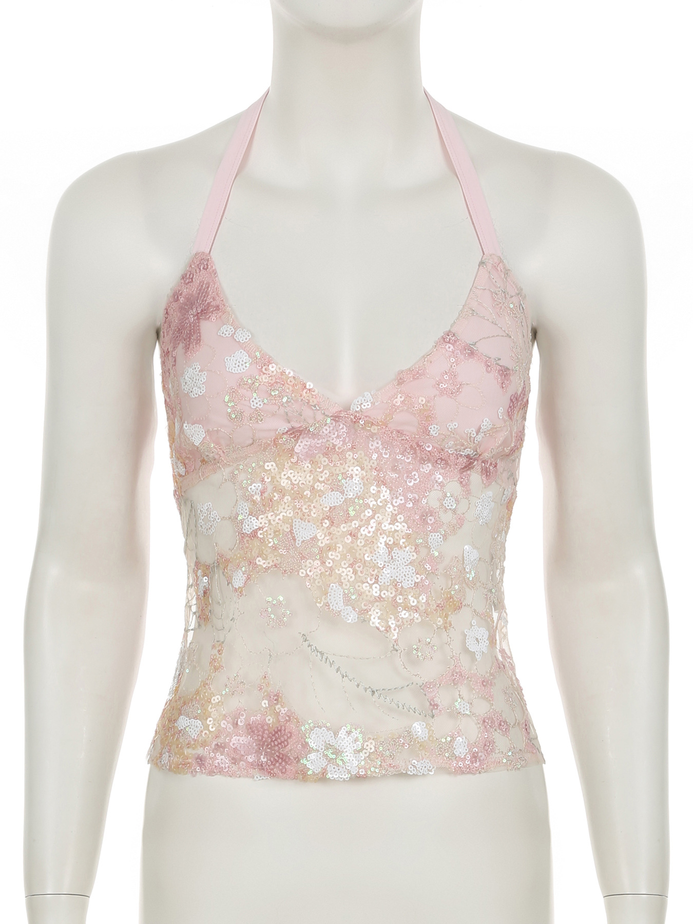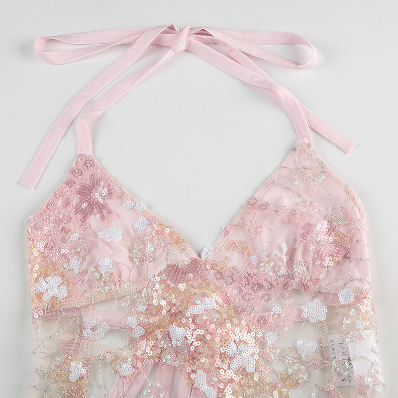 Sweet and spicy design, reflective sequined mesh vest, sexy perspective, one-piece halter strap, neck sling.