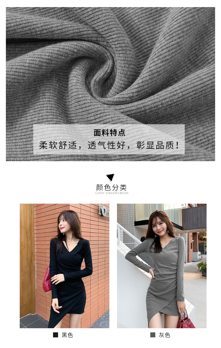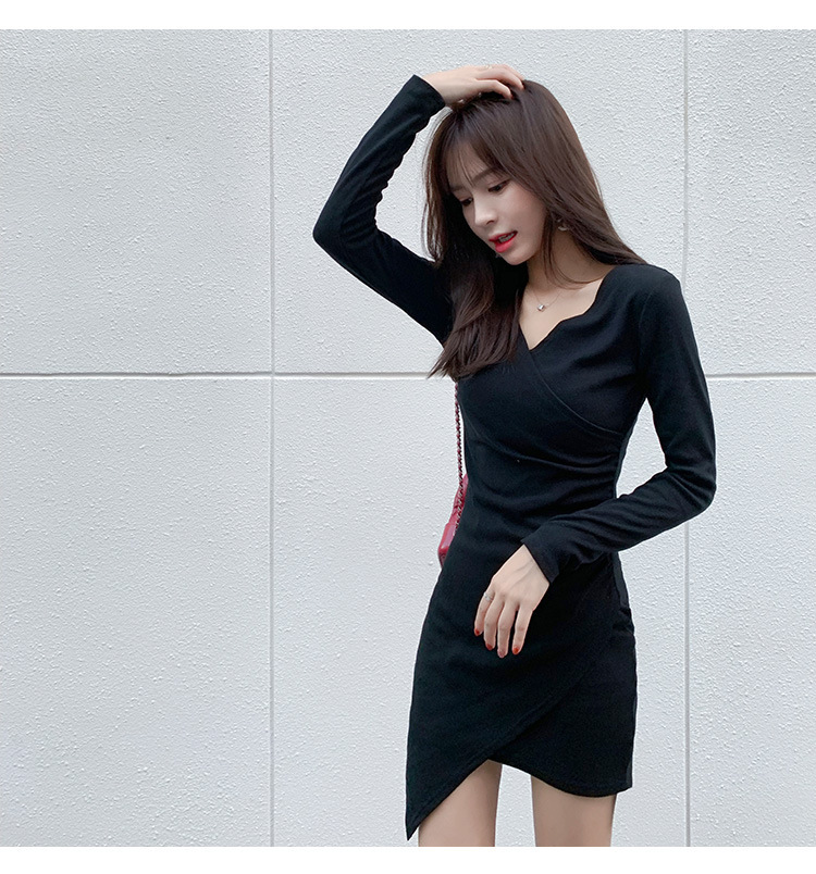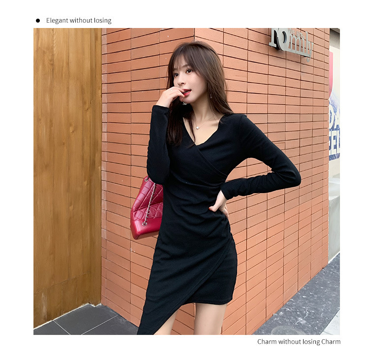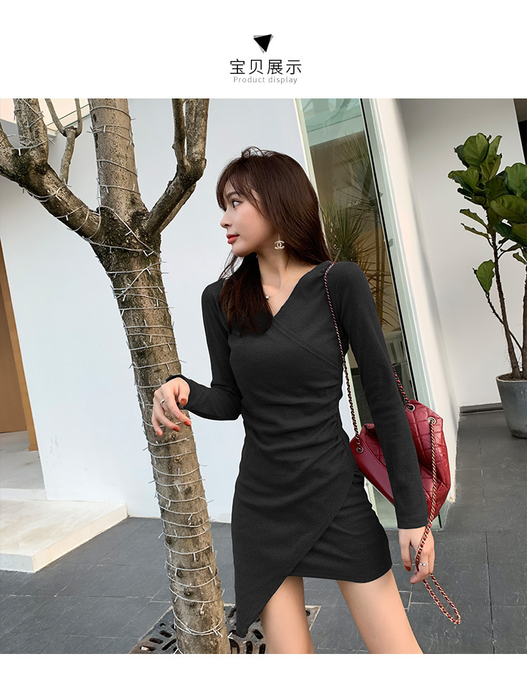 Temperament shows irregular figure dress women's waist 2026 autumn new V-neck slim fit black pure desire skirt
