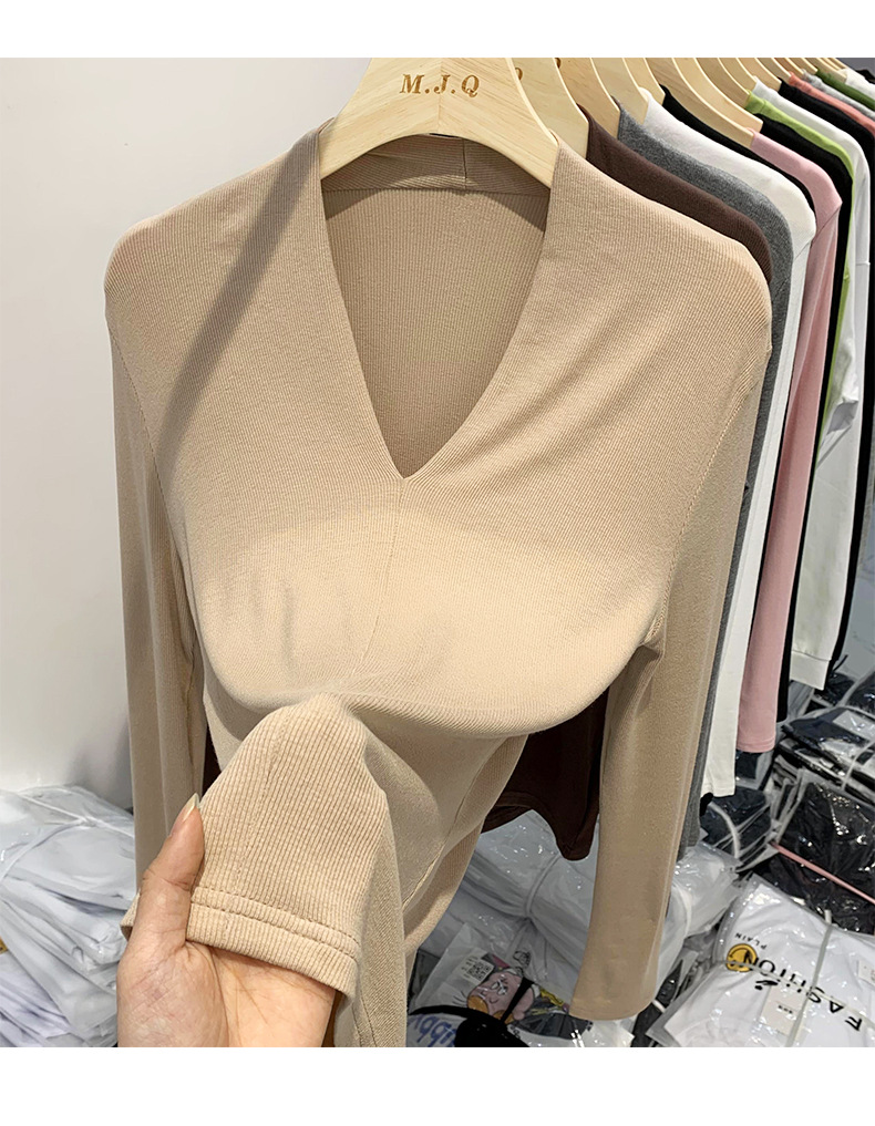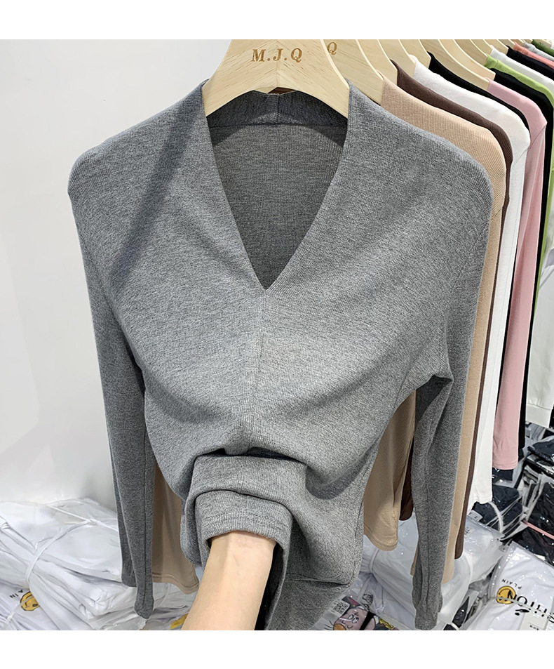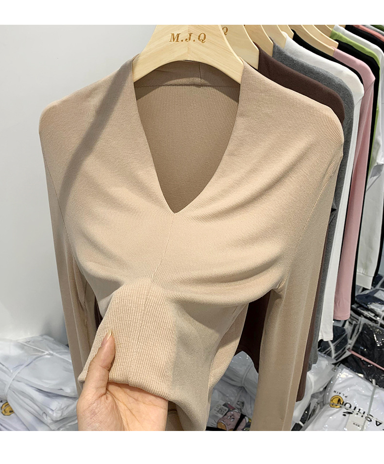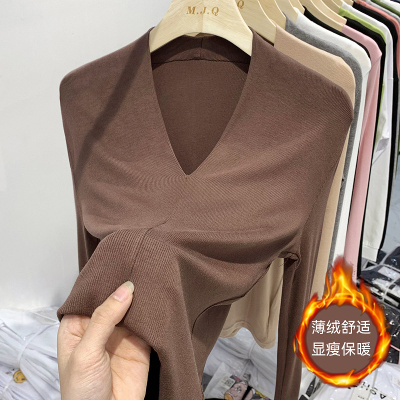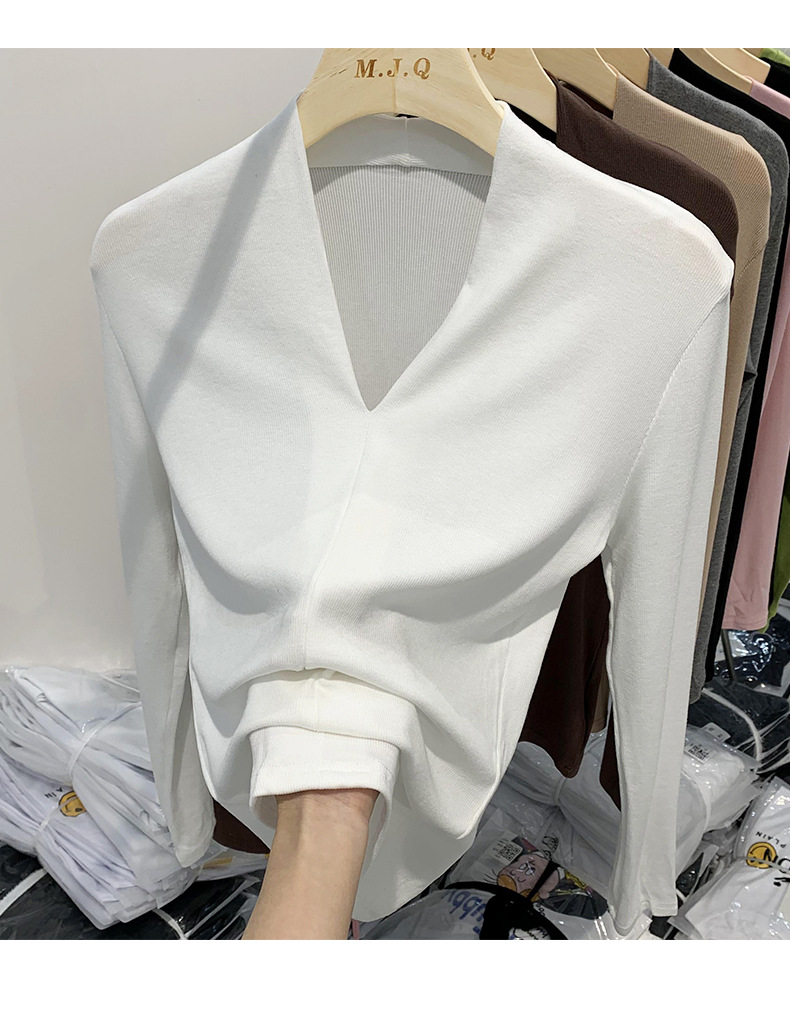 Temperament V-neck long-sleeved T-shirt women's 2026 spring clothing new high-end pure desire sexy slim-fitting thin velvet thin bottoming shirt