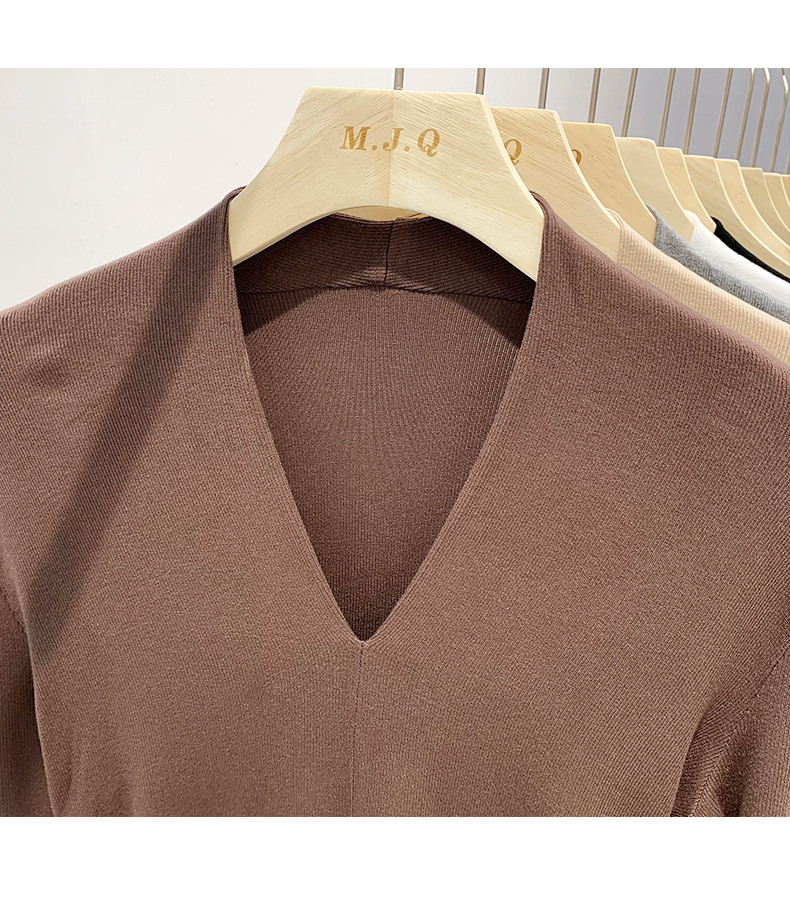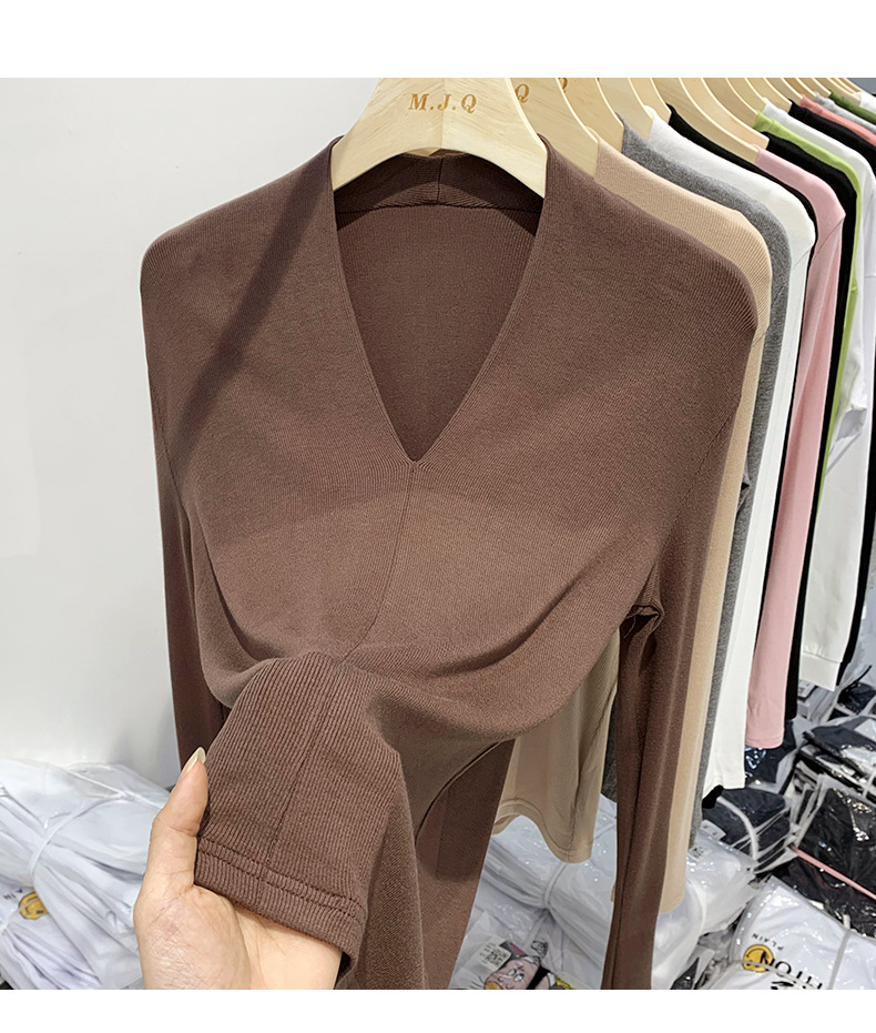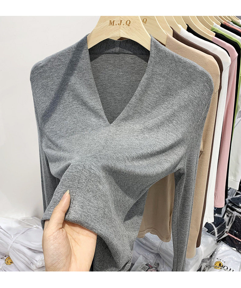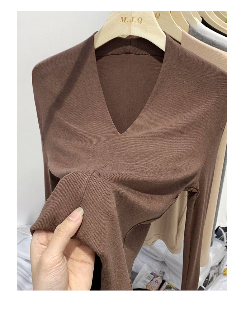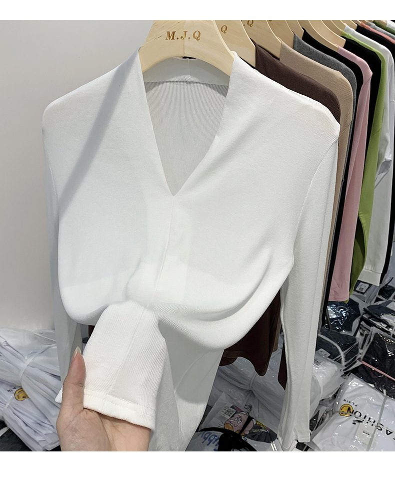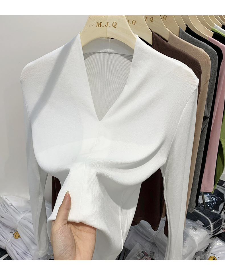 Temperament V-neck long-sleeved T-shirt women's 2026 spring clothing new high-end pure desire sexy slim-fitting thin velvet thin bottoming shirt
