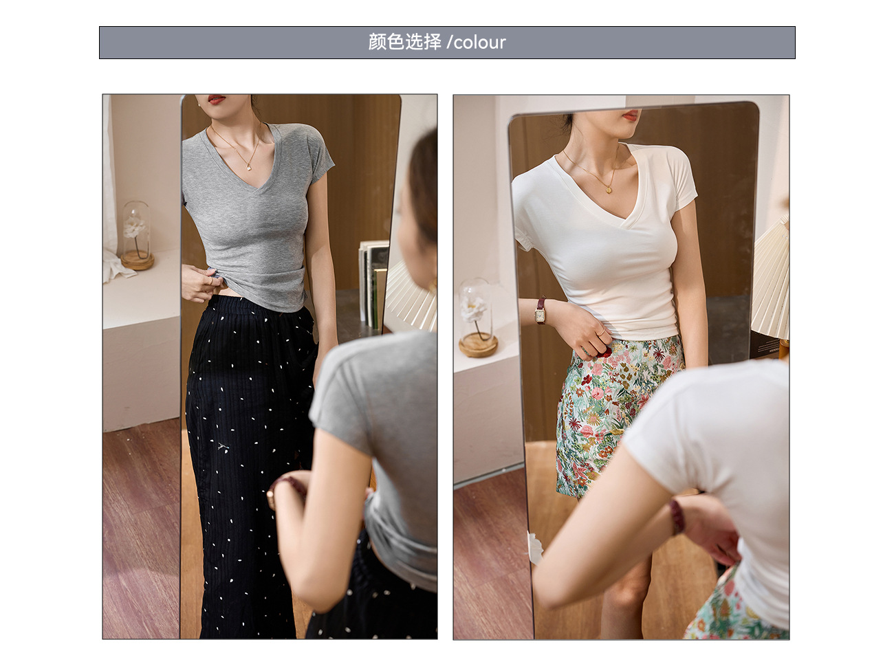 #Tencel Lyocell cotton, Zhen quality #high waist pleated waist T-shirt women's summer thin breathable short-sleeved V-neck top