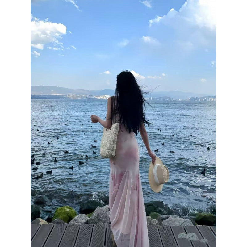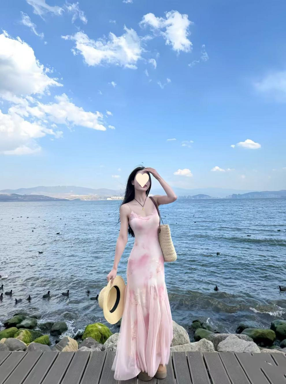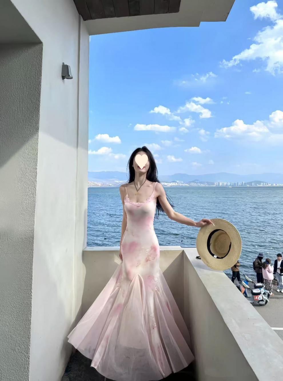 Thai dopamine island resort atmosphere, pure desire, sweet and spicy, super fairy girl, floral mesh hip wrap, slip dress