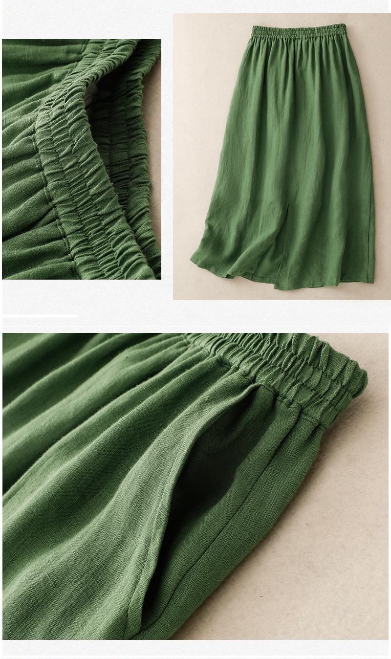The real shot is in the summer of 2025, the new literary and retro solid color cotton and linen medium and long side split and thin skirt women