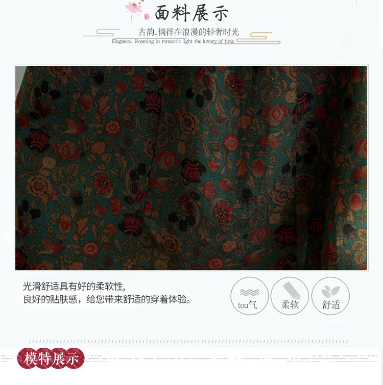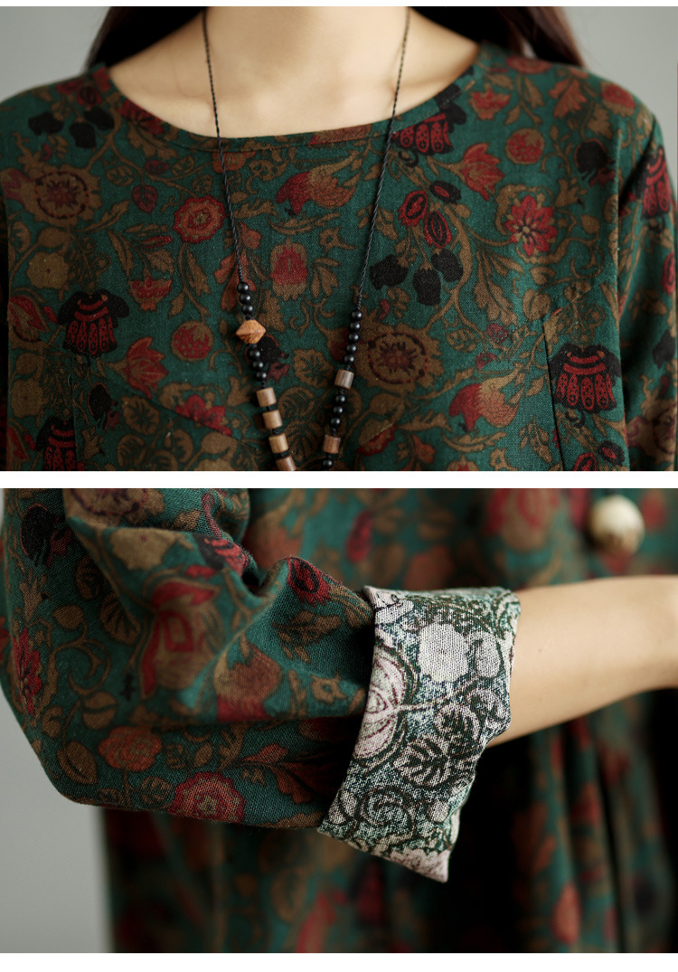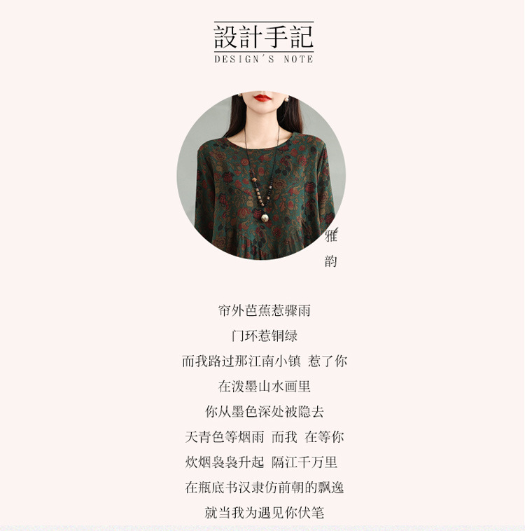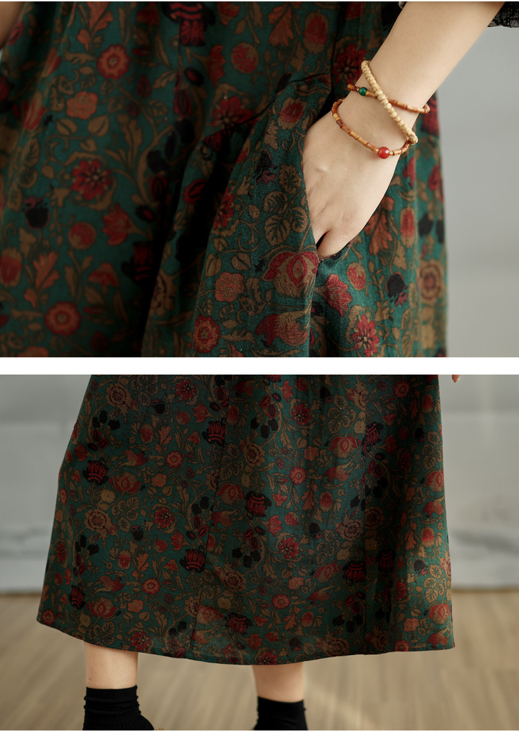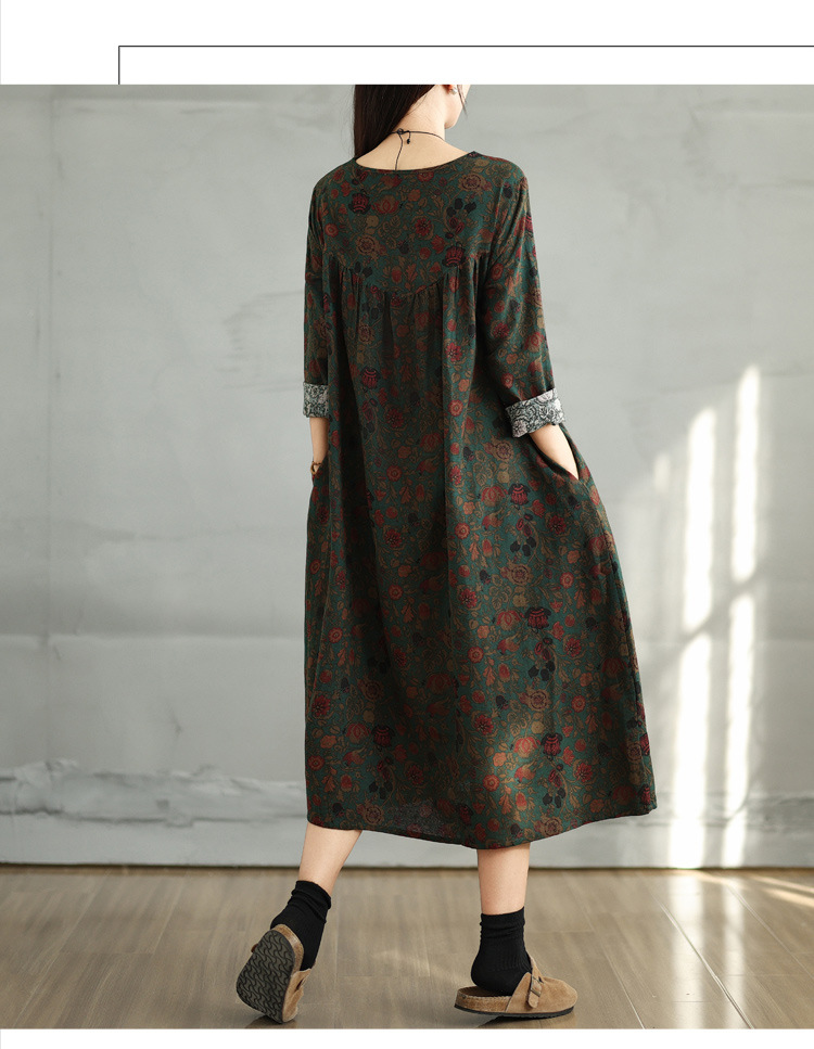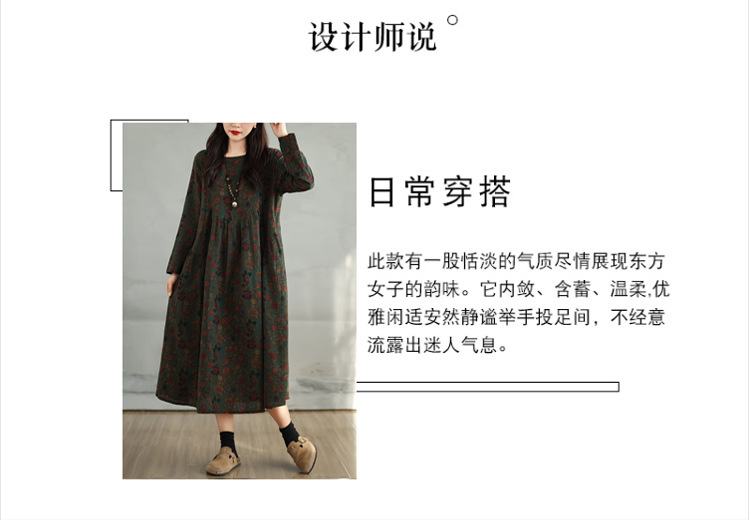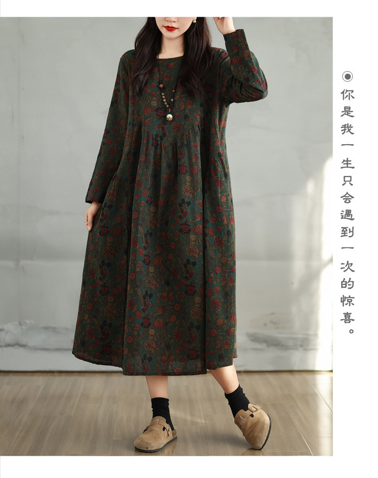 The real shot is the new cotton and linen printed long-sleeved dress in the spring of 2025. Women's loose large-size thin splicing A-shaped skirt
