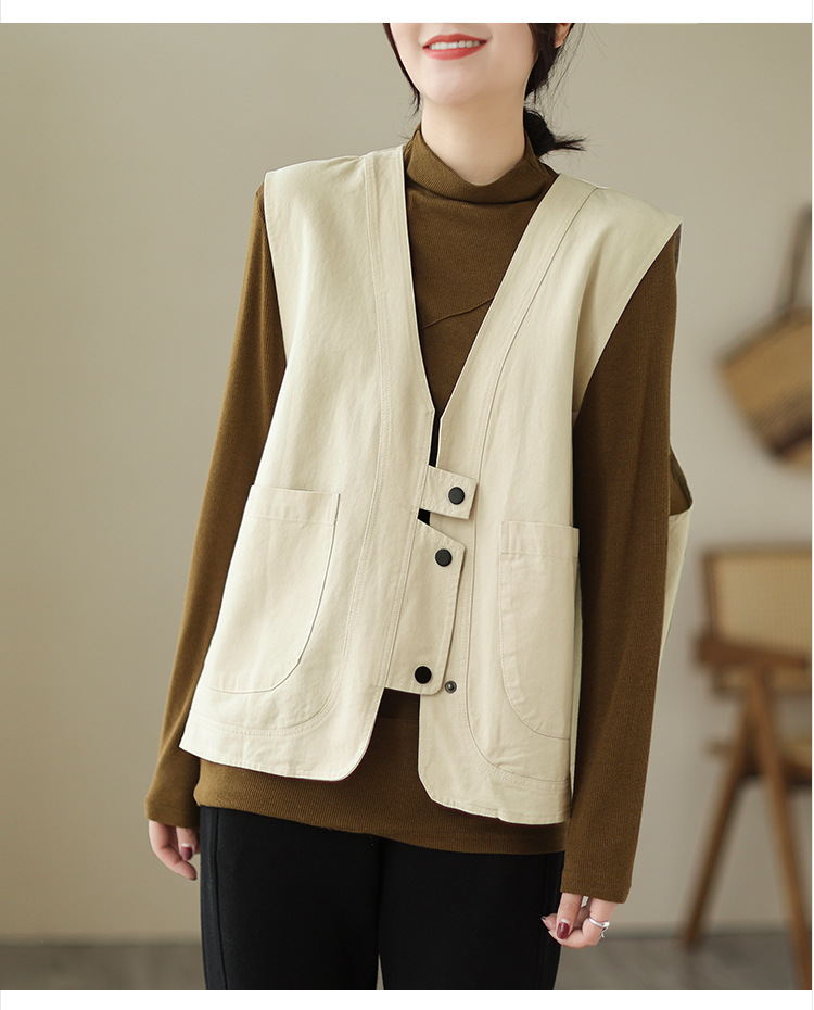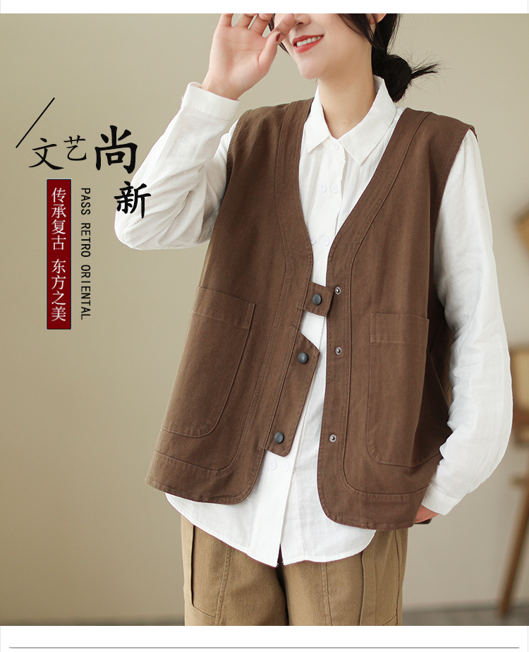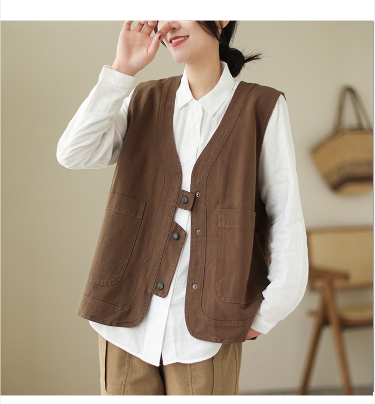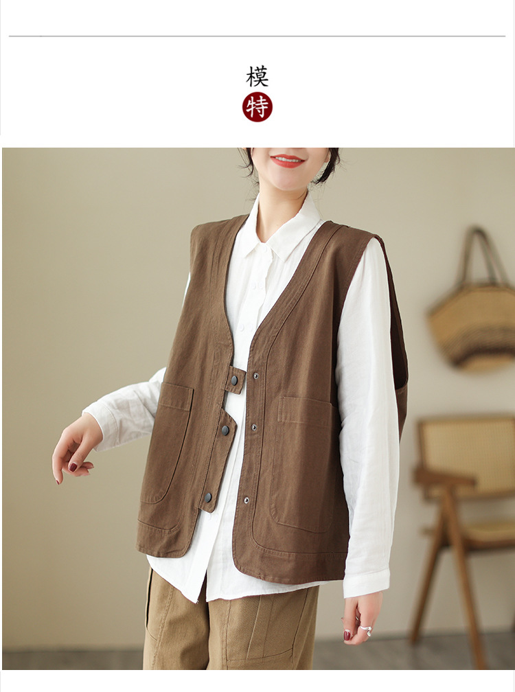 The real shot is the new retro short tooling vest jacket in the autumn of 2025, with a thin vest and a V-neck vest for women.