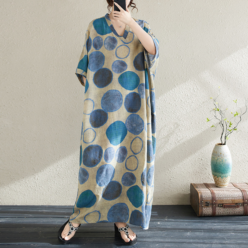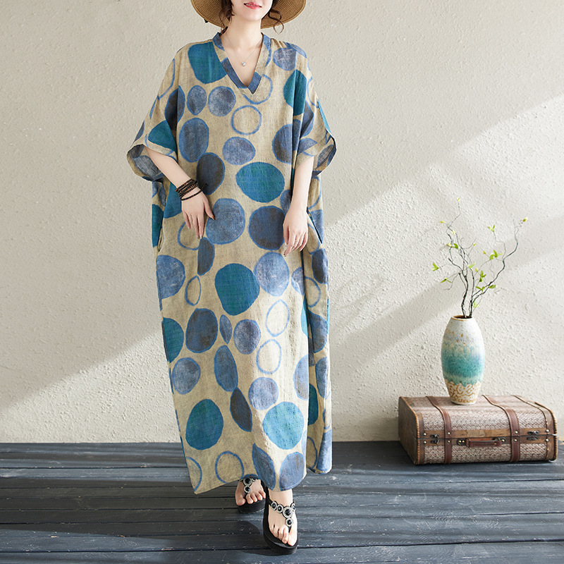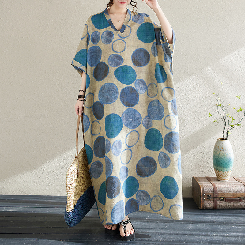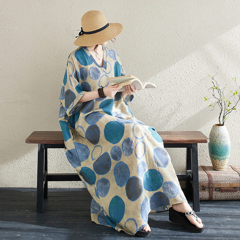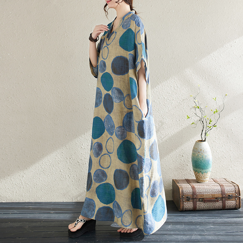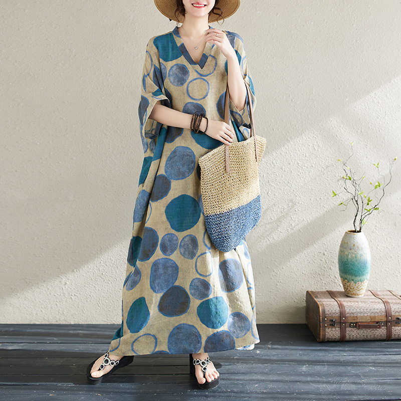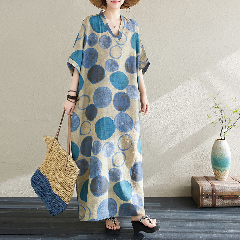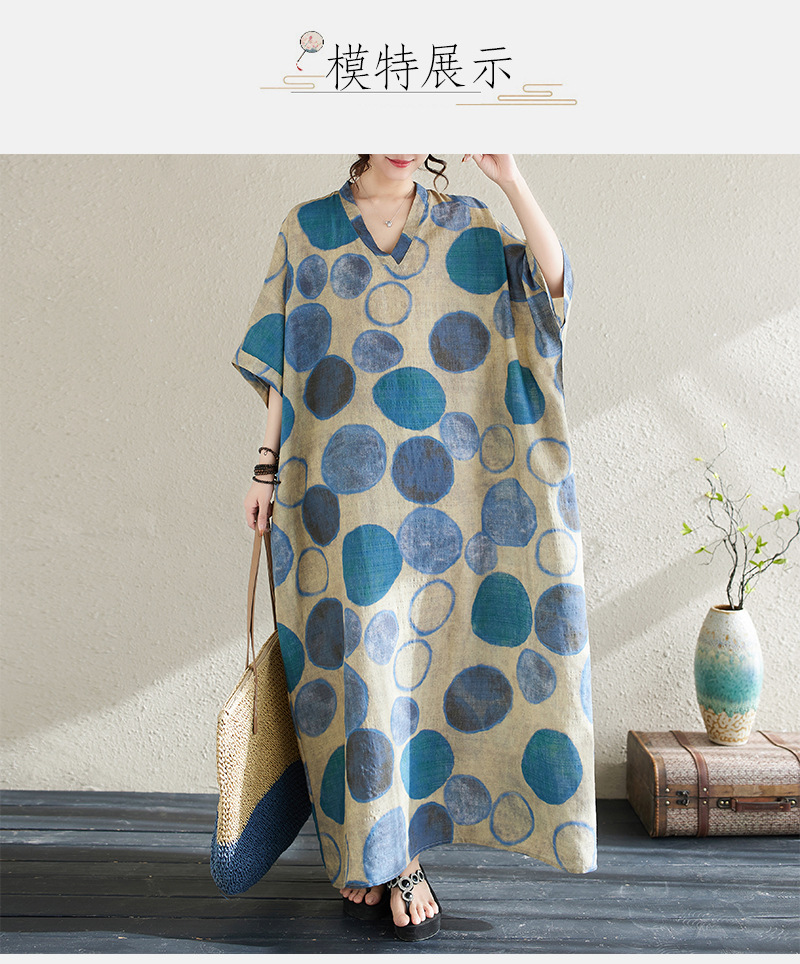 The real shot of the new summer of 2024 is a holiday style travel V-neck retro long dress covering the meat cotton and linen dress for women