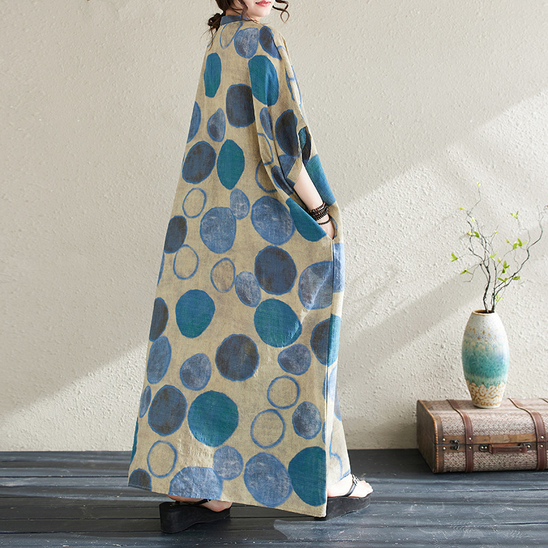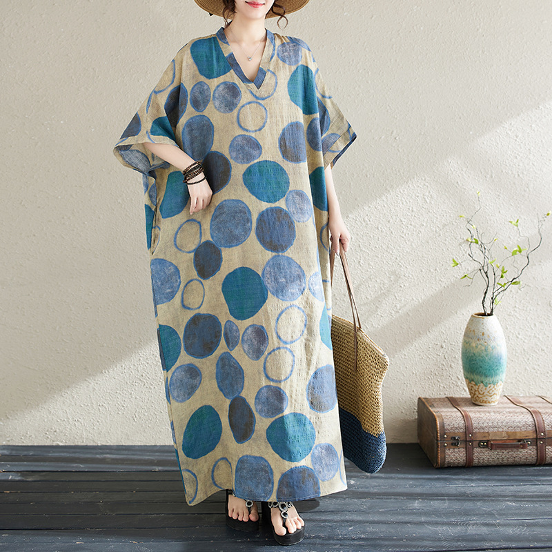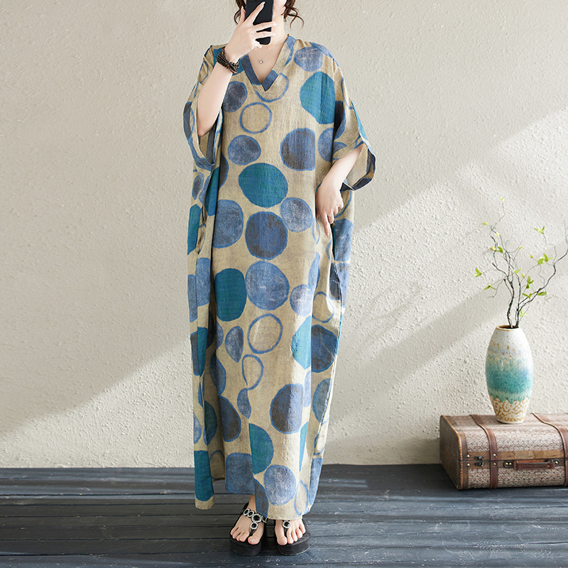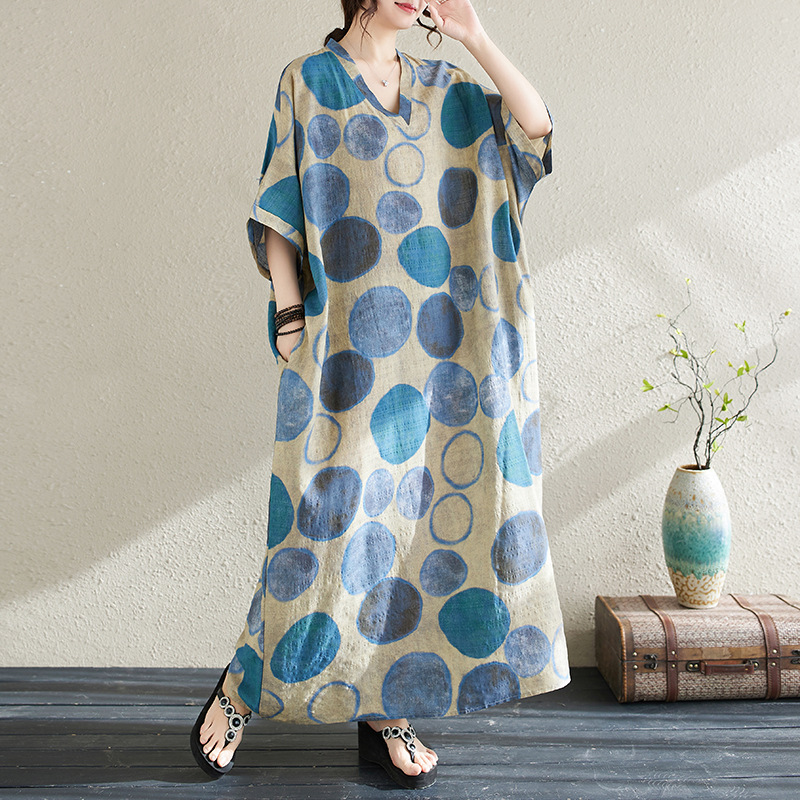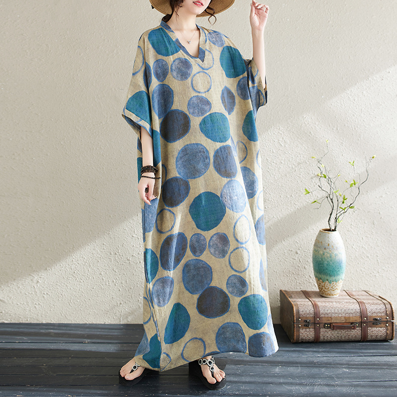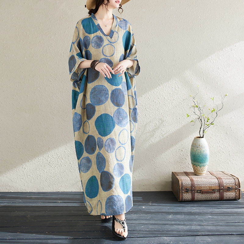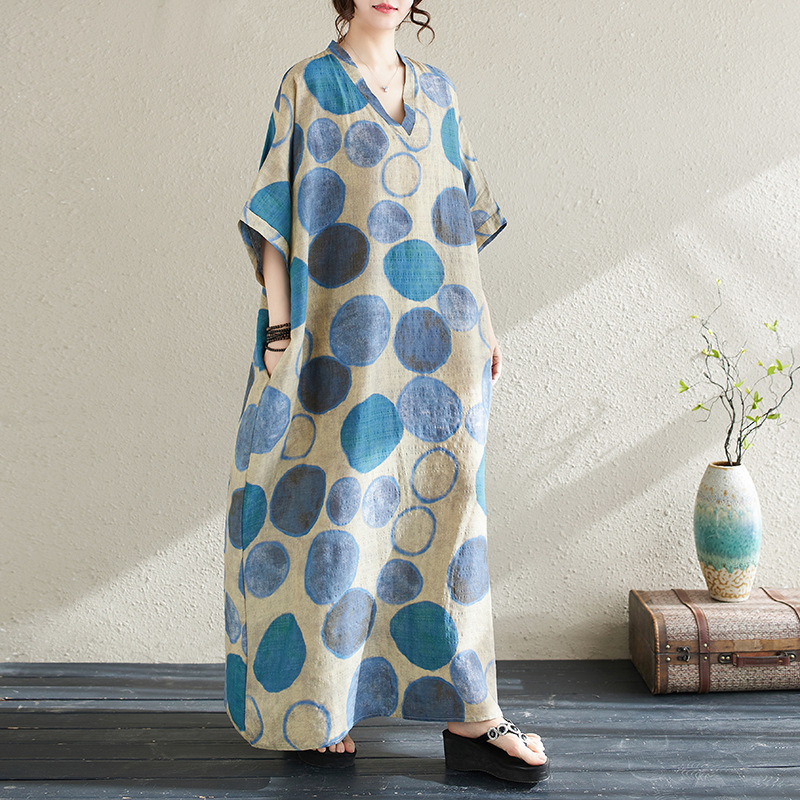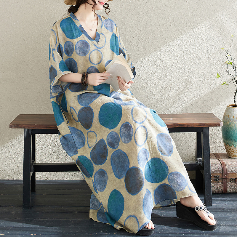 The real shot of the new summer of 2024 is a holiday style travel V-neck retro long dress covering the meat cotton and linen dress for women