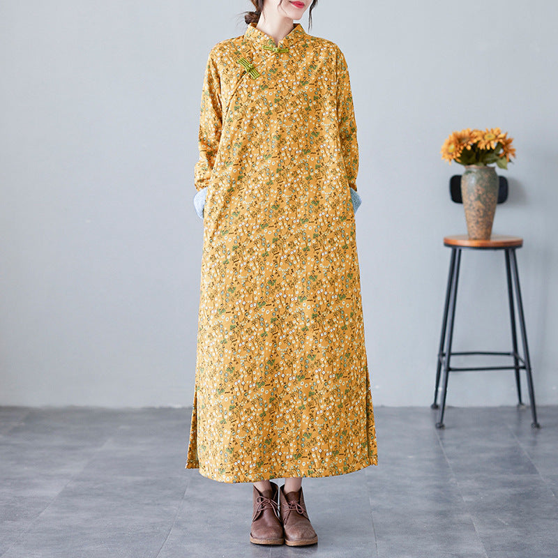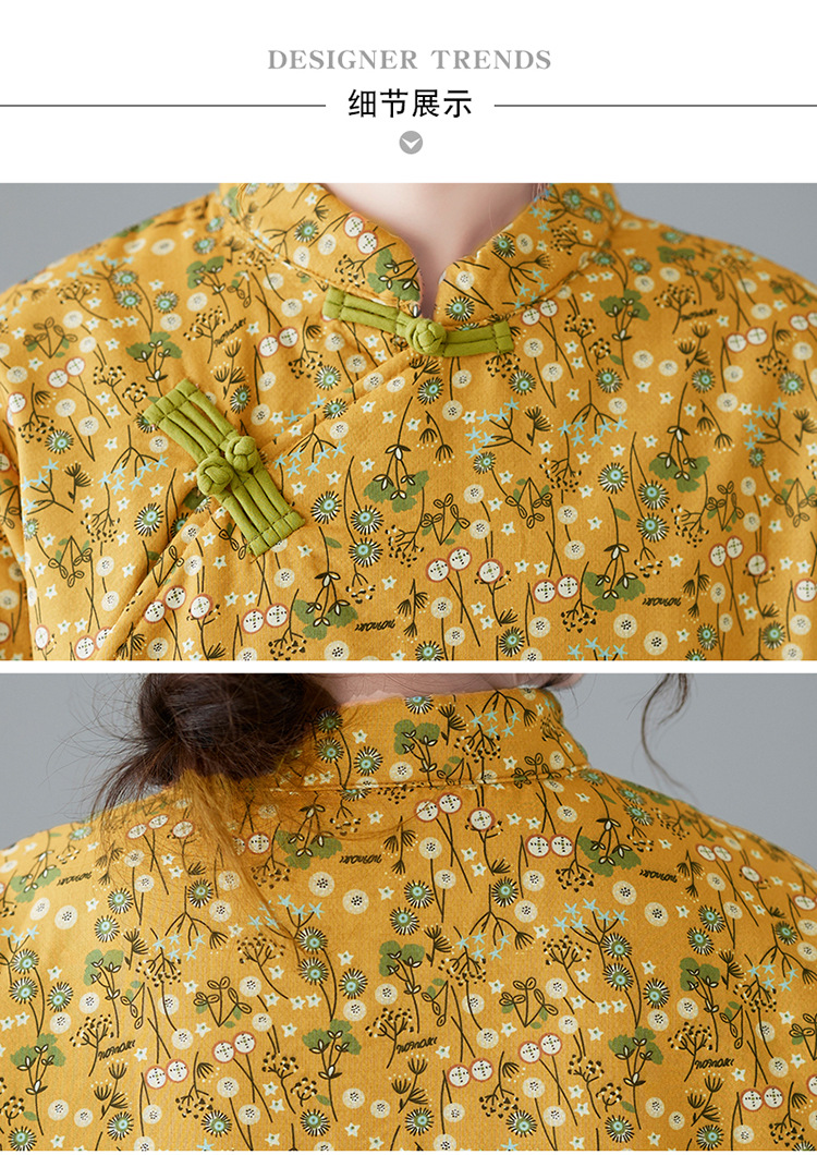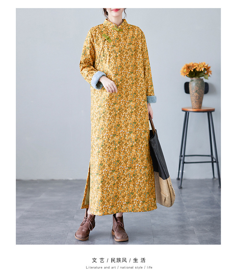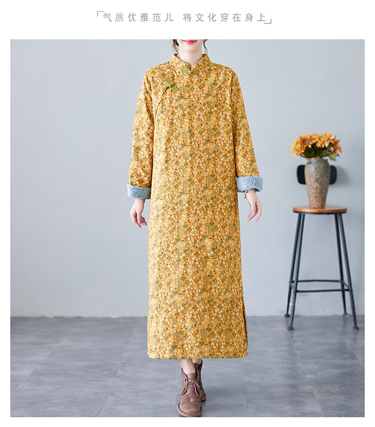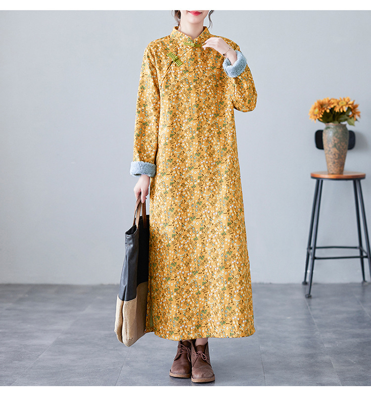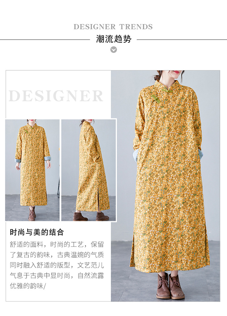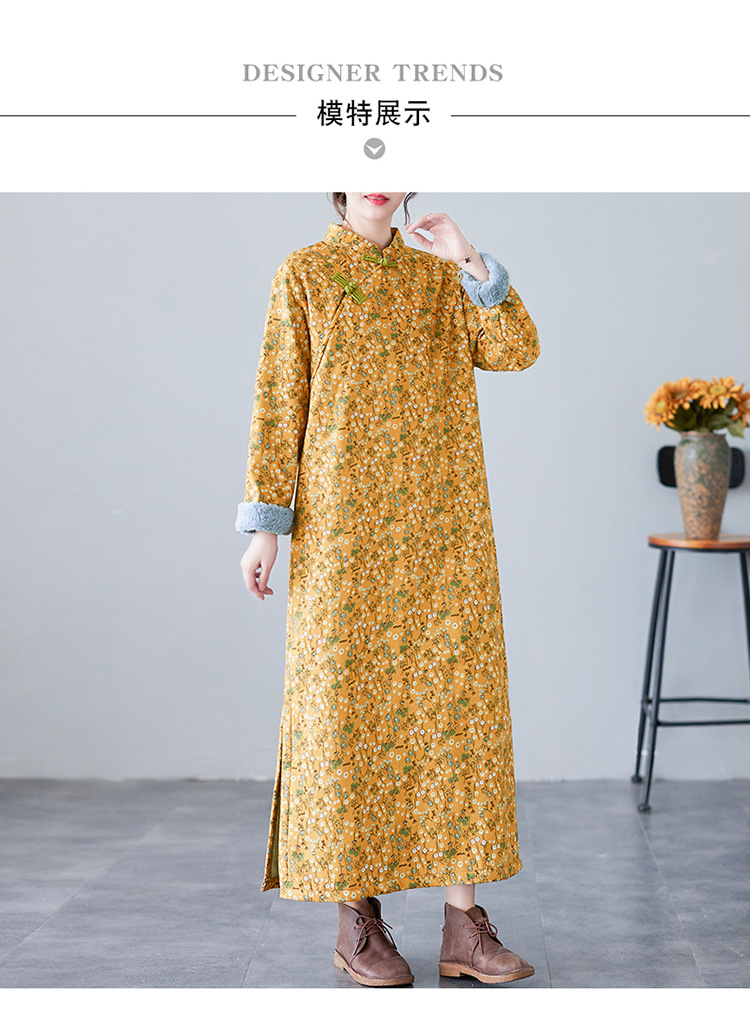 The real shot will be in the winter of 2025. The new retro literary disc buckle is piled and thickened. The improved cheongsam plus size long-sleeved dress.