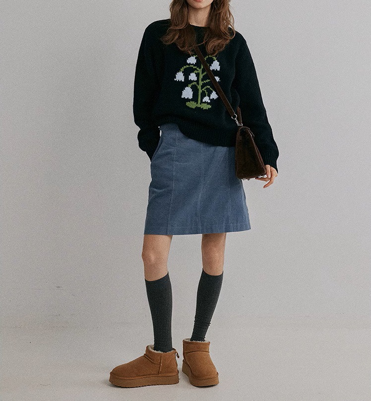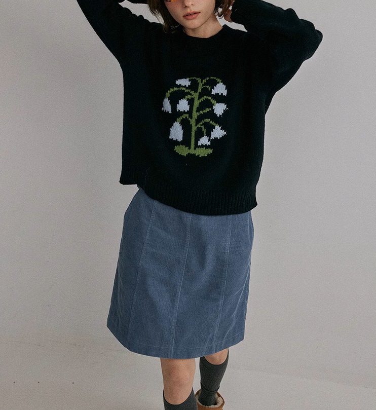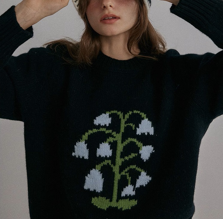Thick needle round neck lily of the valley jacquard knitted sweater women's autumn and winter new fashion versatile casual top