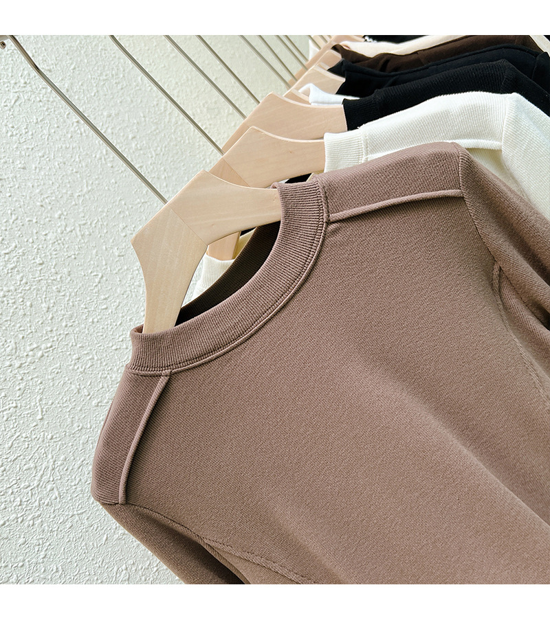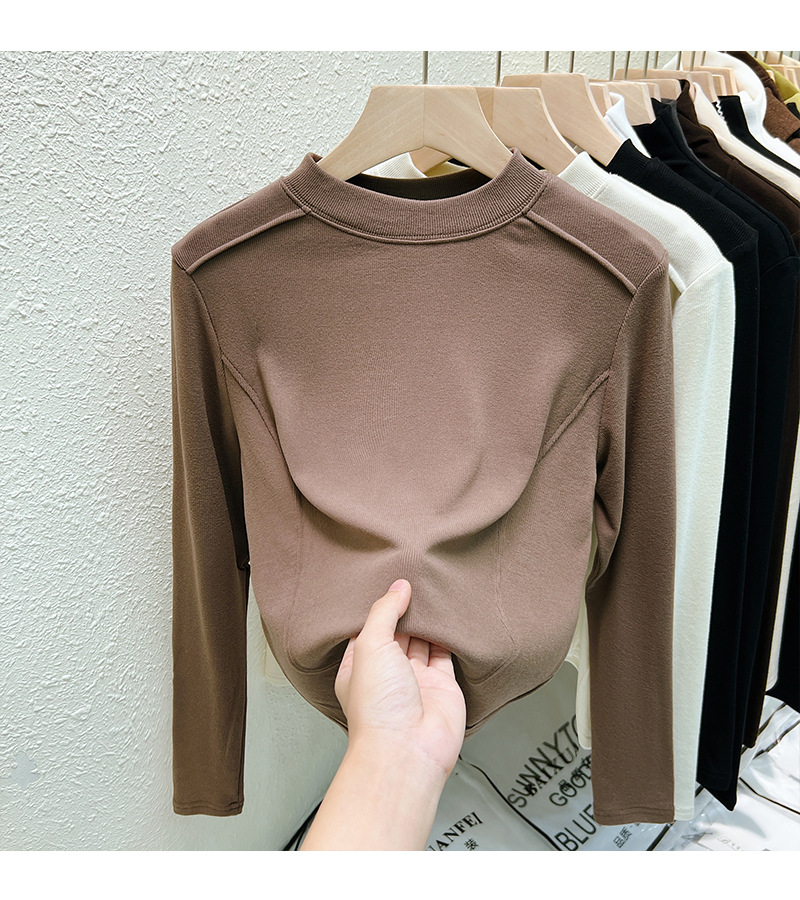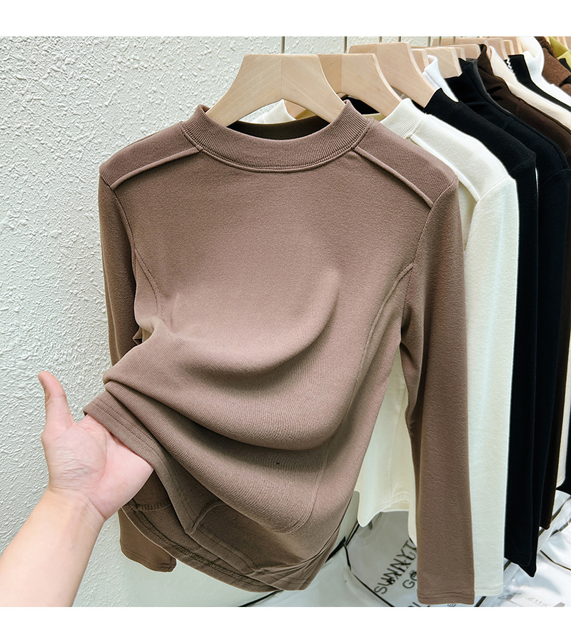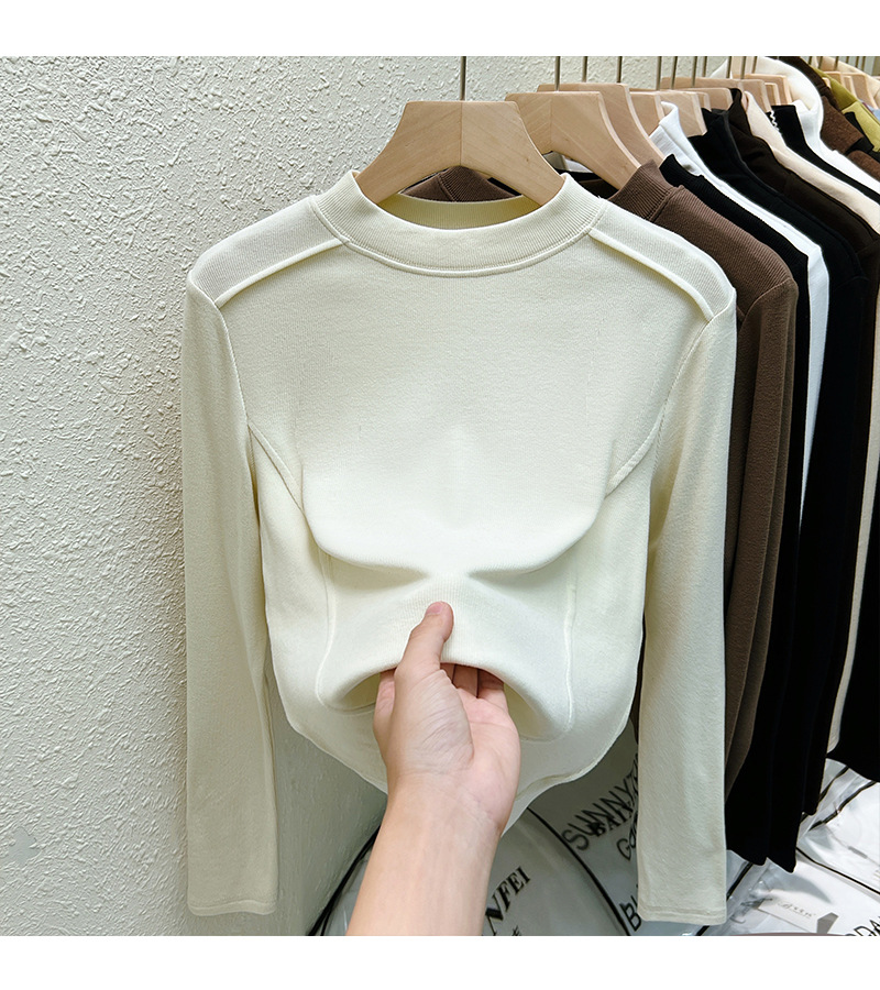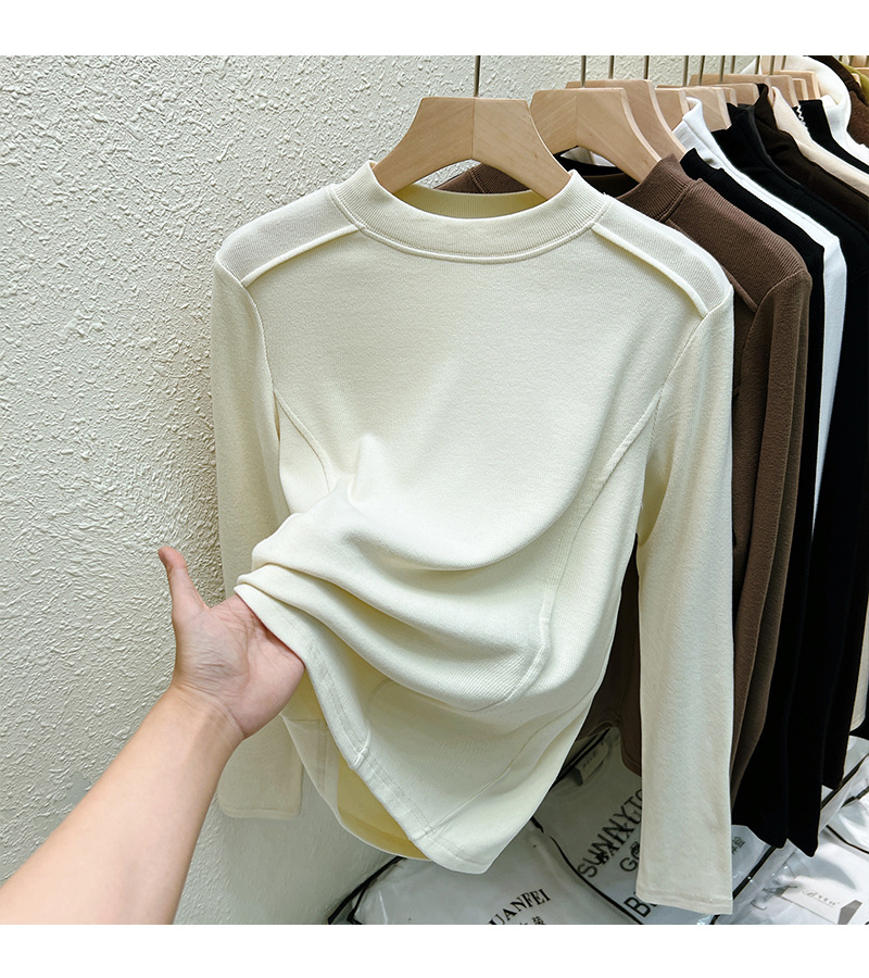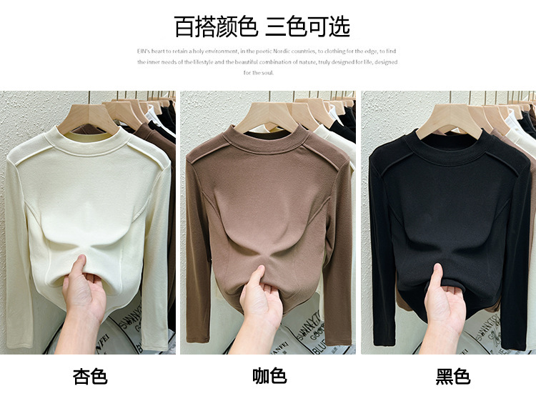 Three-dimensional line polished thin velvet T-shirt bottoming shirt women's autumn and winter new thin threaded cotton long-sleeved top T-shirt