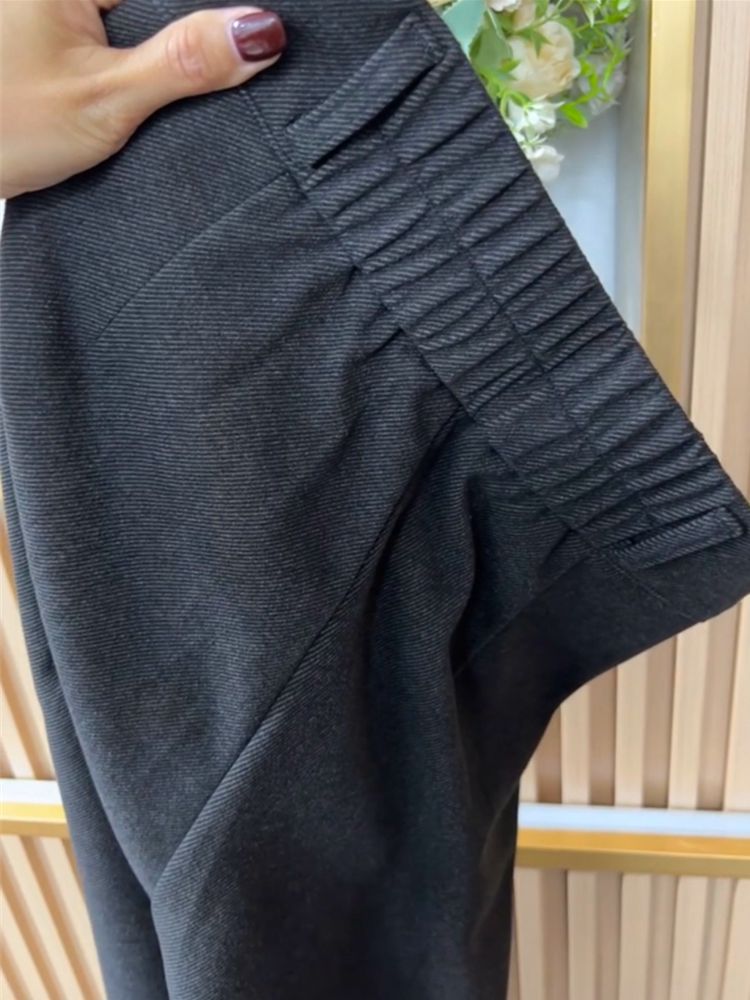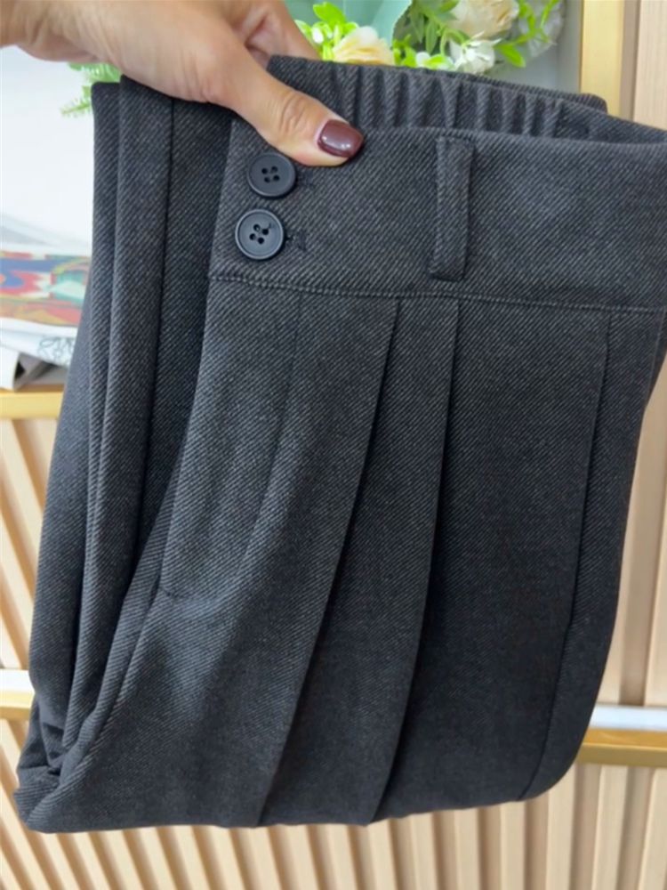 Today's dress recommendation! European loose straight woolen casual trousers autumn and winter gray woolen wide-leg trousers women